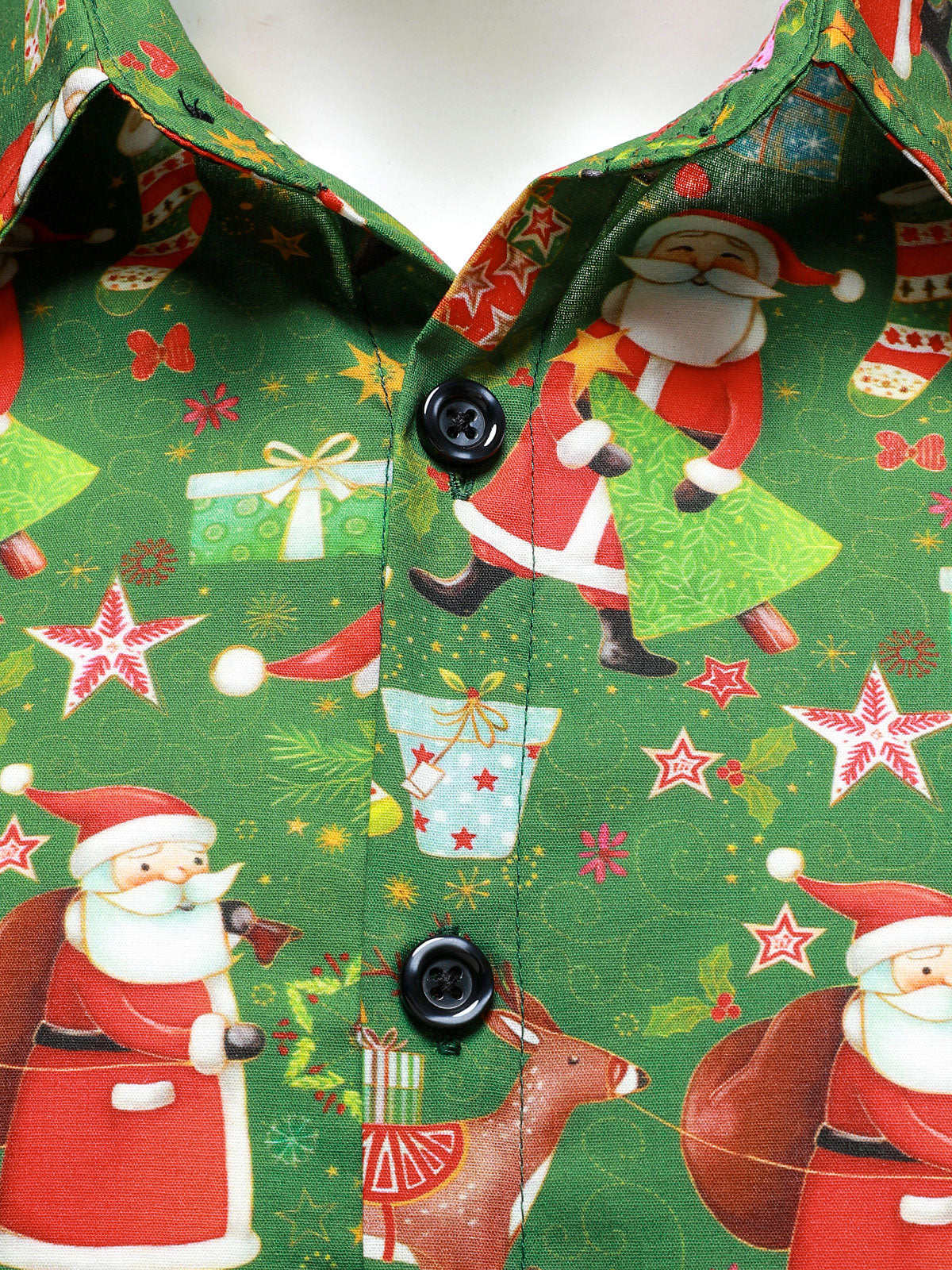 Chemise à manches longues boutonnée verte à motif de Noël pour homme