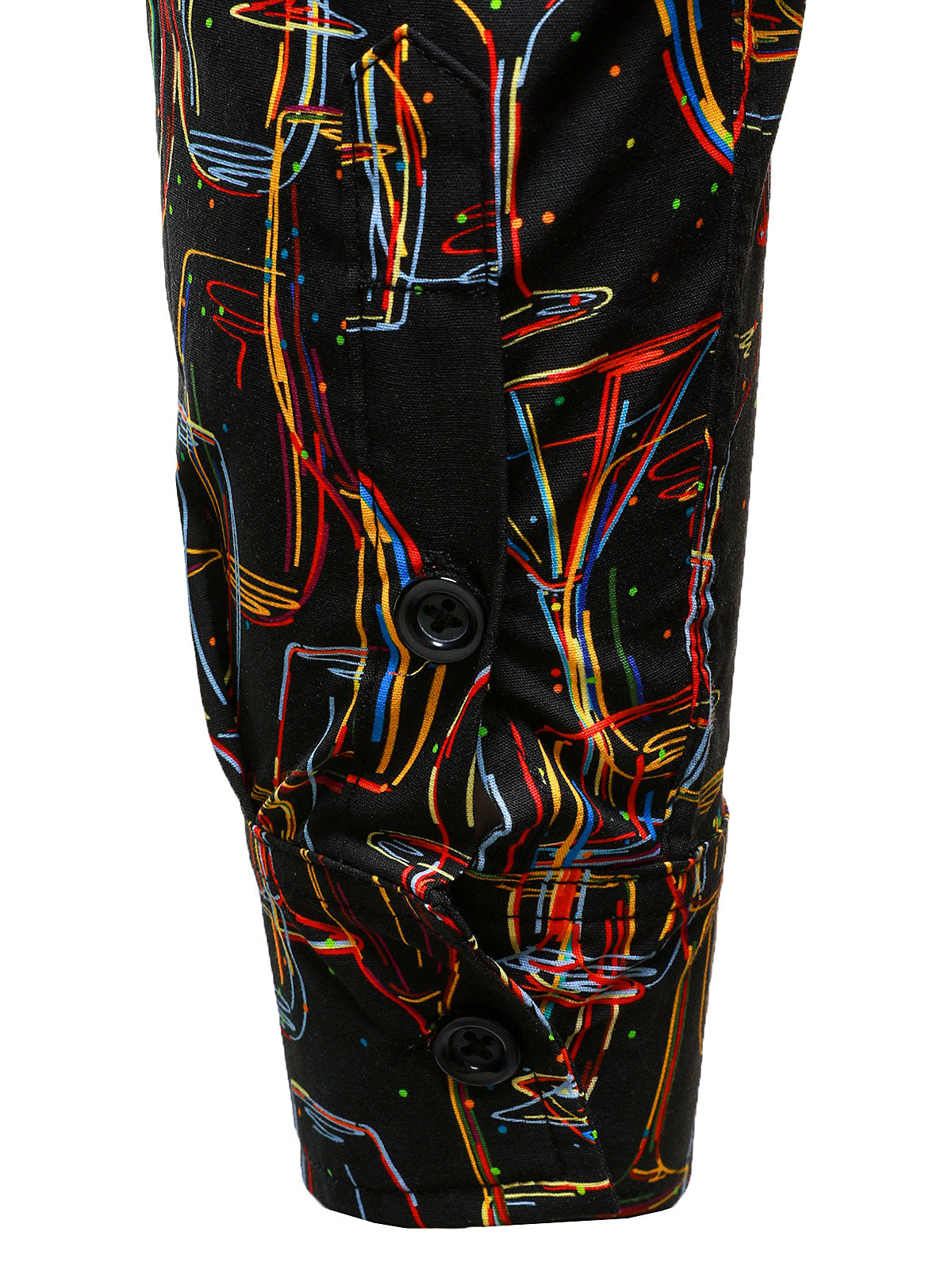 Chemise de soirée décontractée pour homme, imprimée verre à vin, manches longues, en coton, motif verre à vin