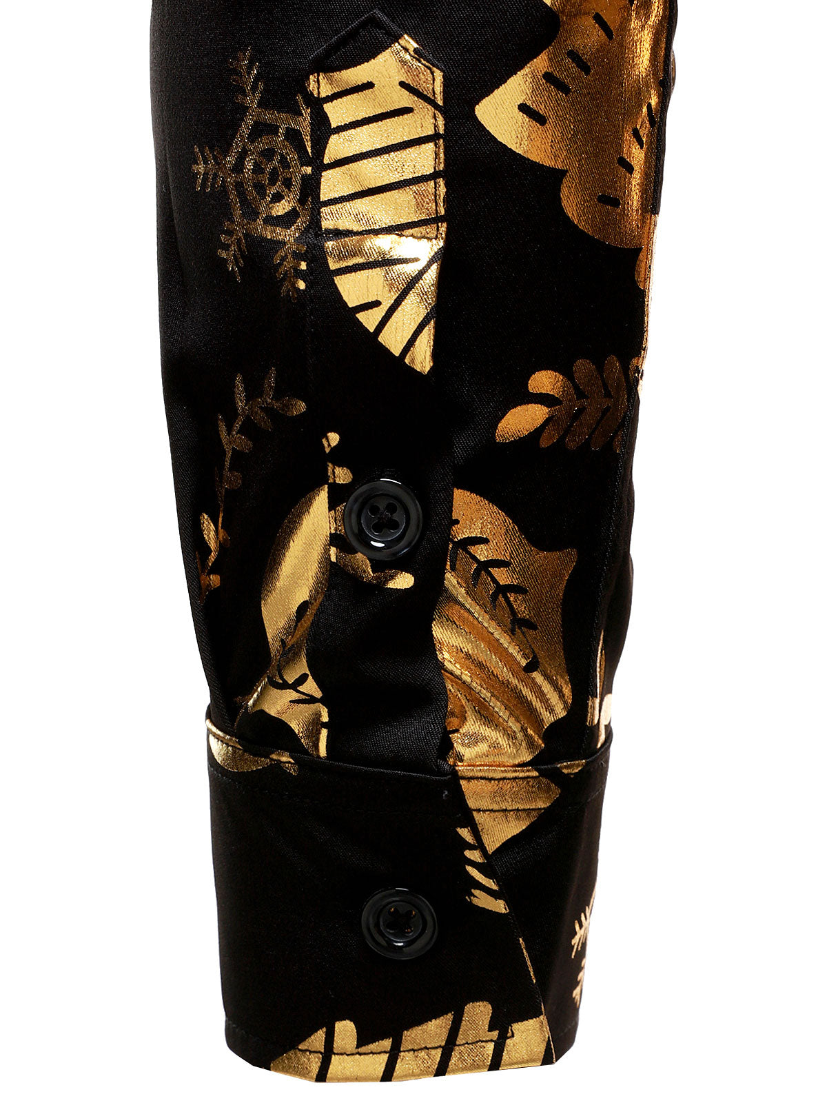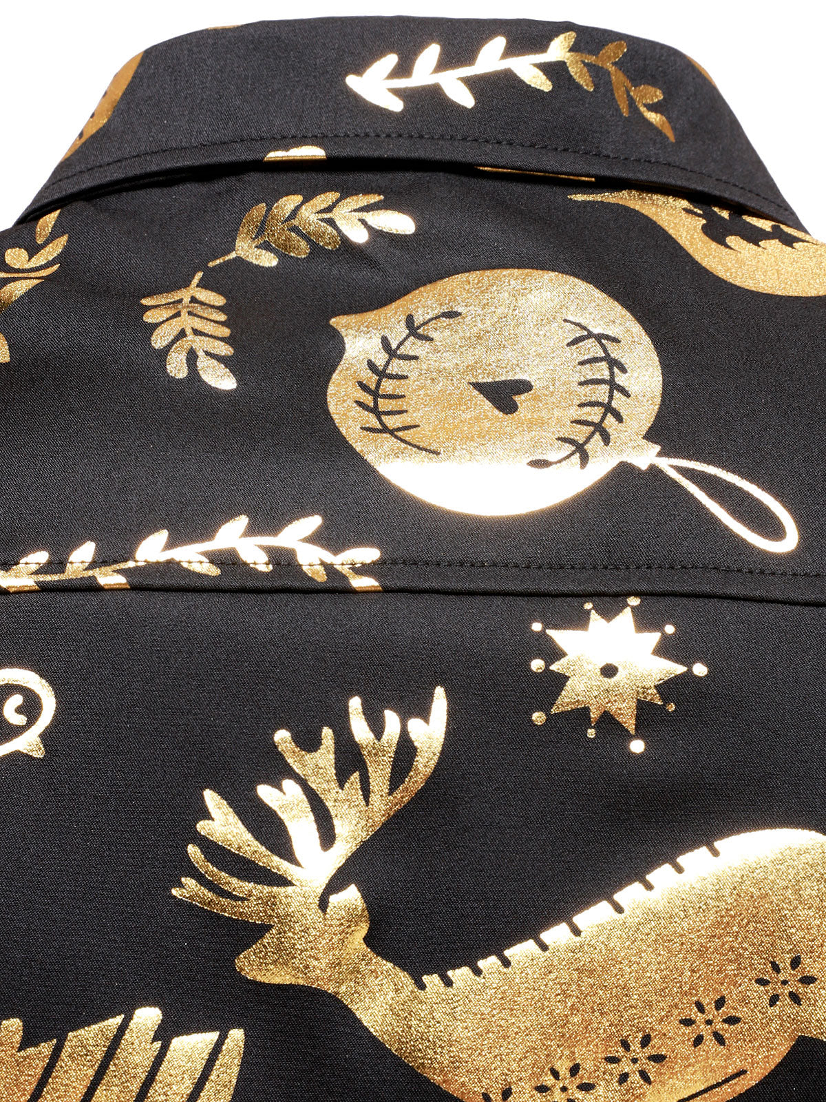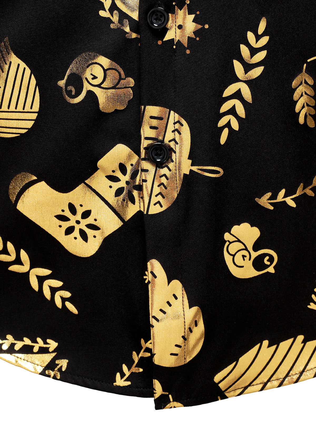 Chemise noire à manches longues pour homme, imprimé de Noël doré, coupe classique