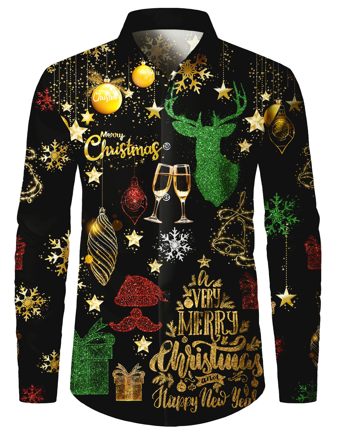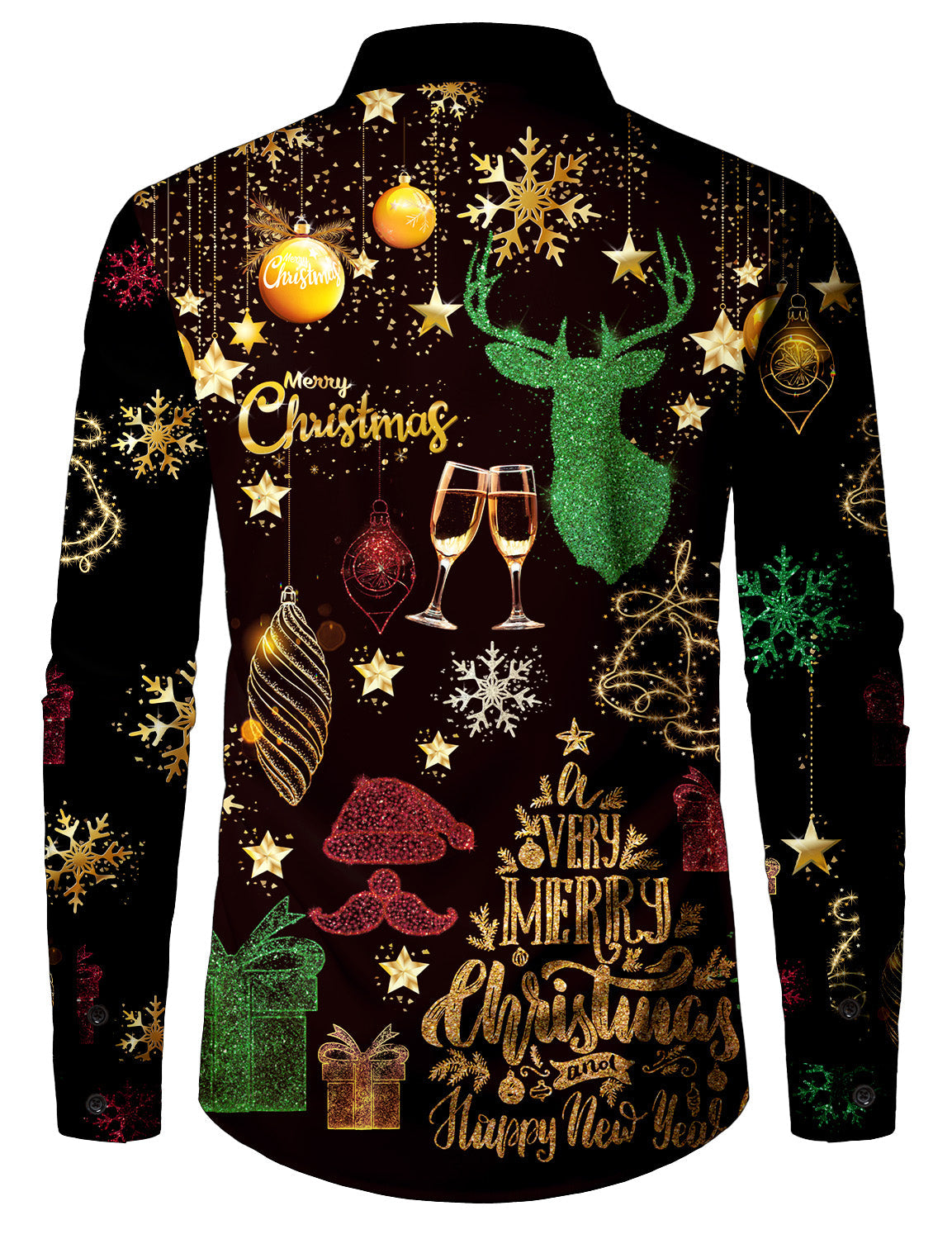 Chemise à manches longues pour homme avec imprimé champagne et joyeux Noël doré
