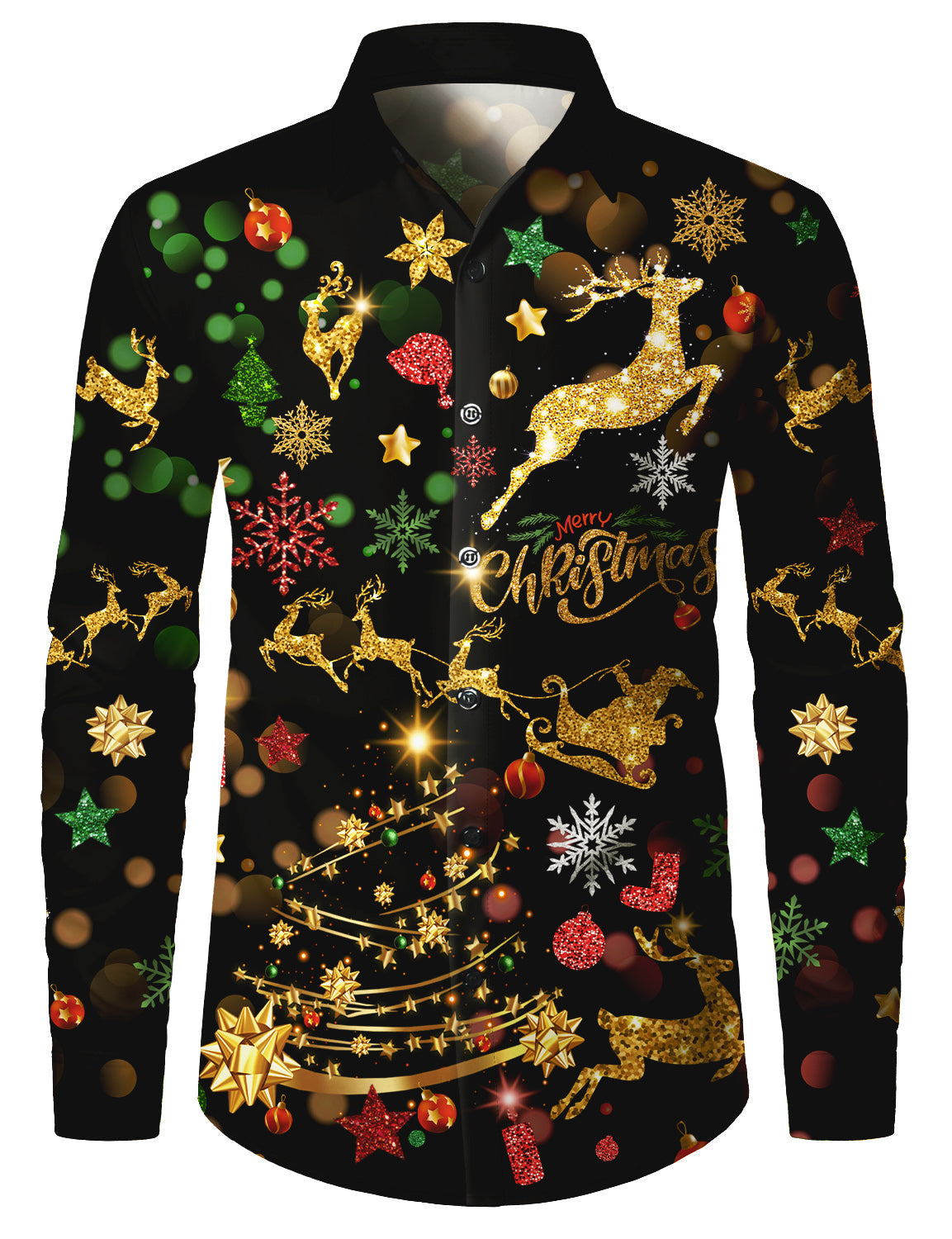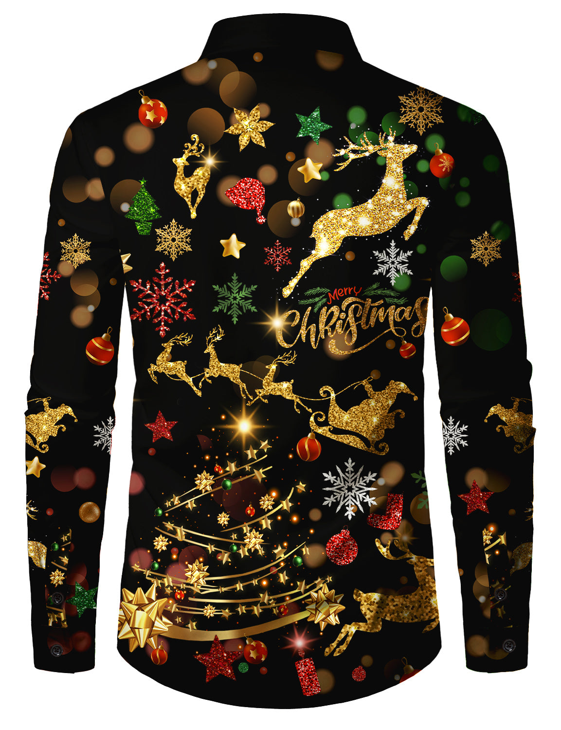 Chemise de Noël pour homme à manches longues motif renne doré festif
