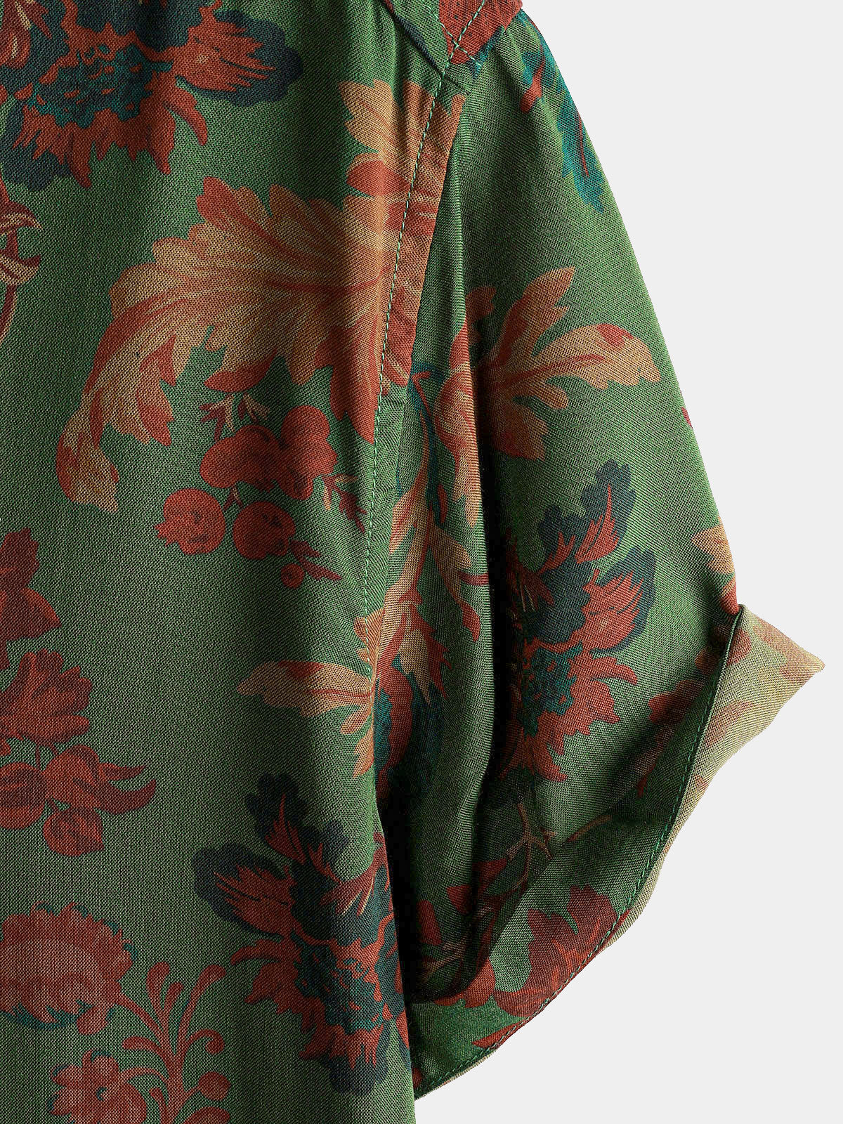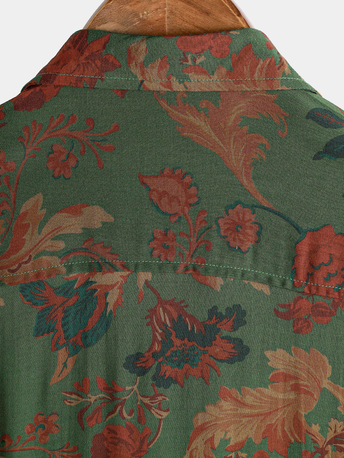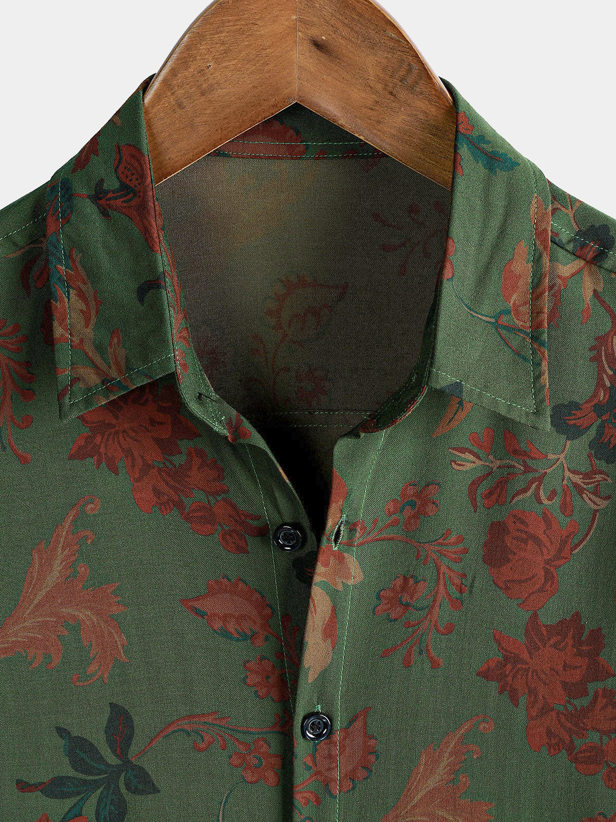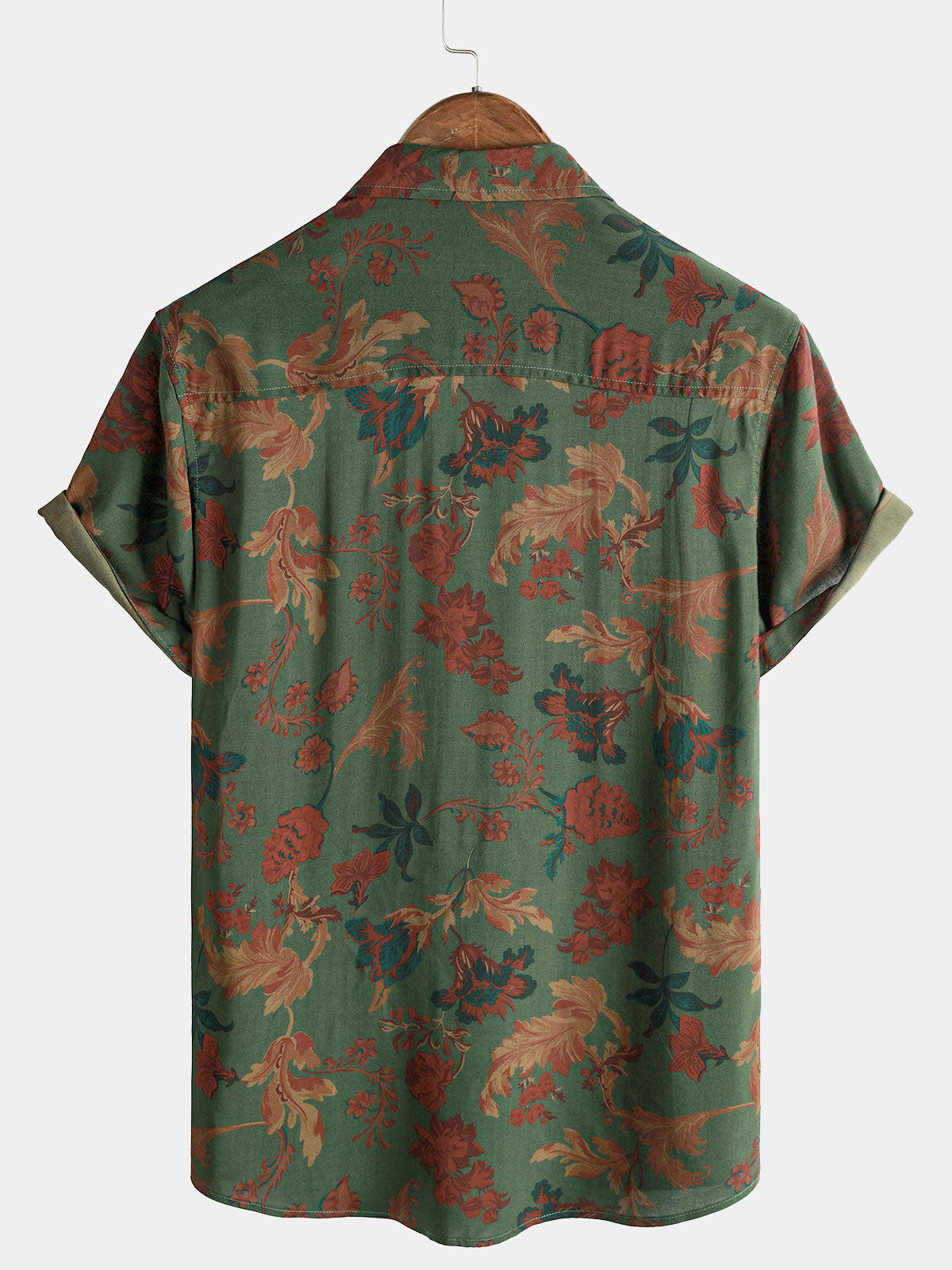 Chemise Homme Décontractée Vintage à Manches Courtes en Rayonne avec Imprimé Roses