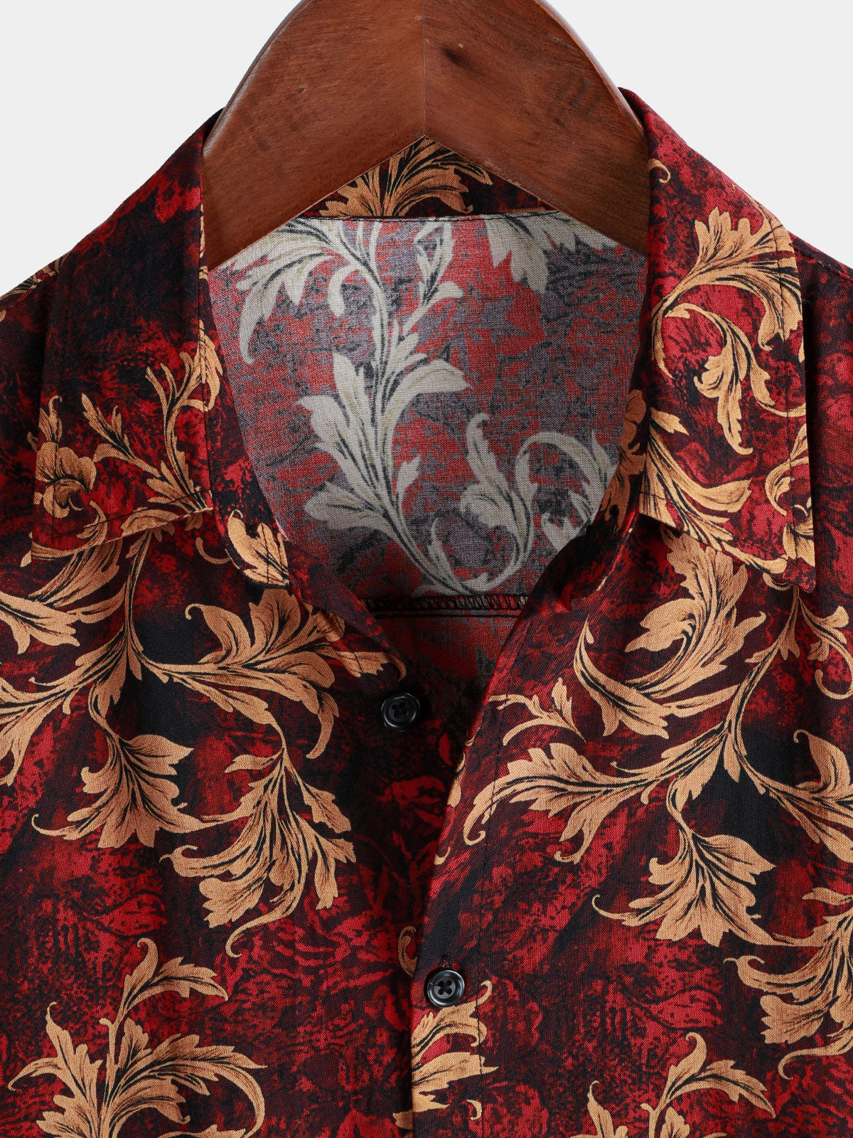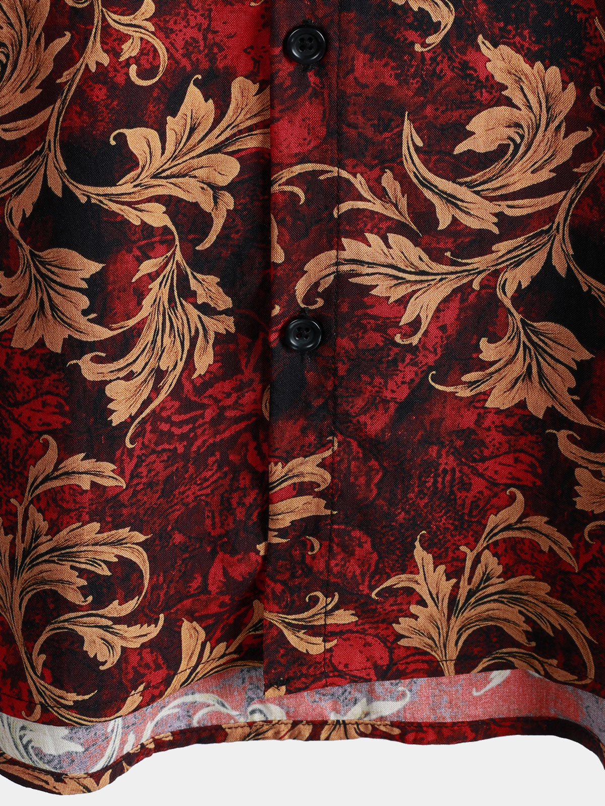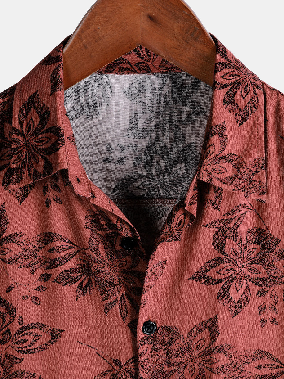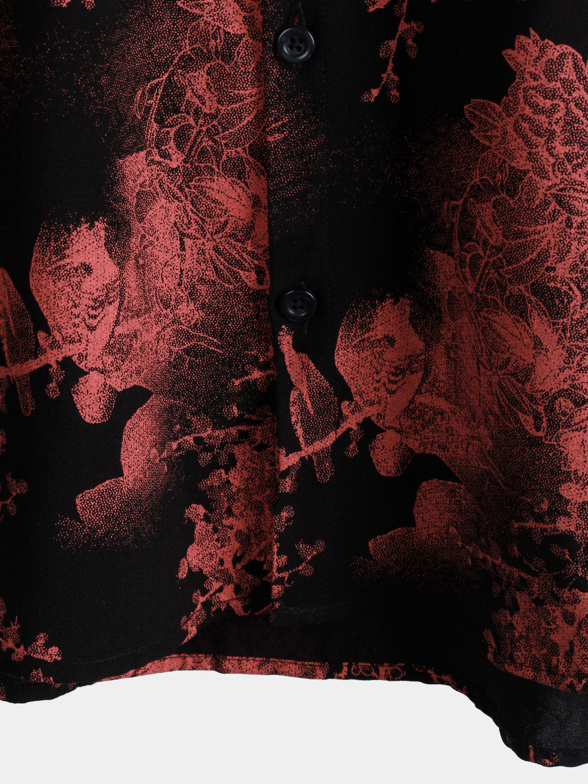 Chemise Homme Rouge Noir Fleurie Rétro Boutonnée Plage