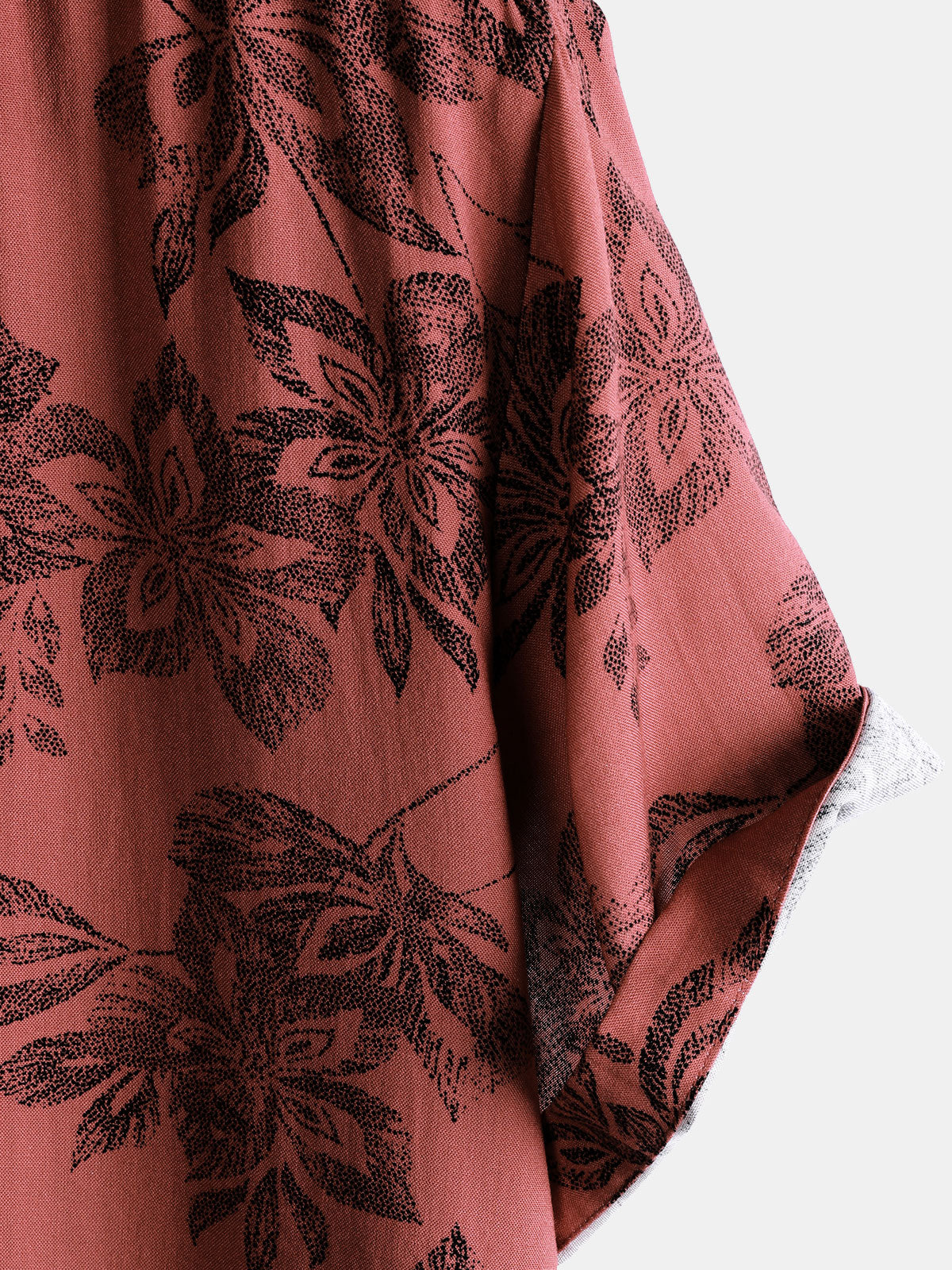 Chemise homme rouge à imprimé floral rétro en 100 % rayonne manches courtes esprit resort