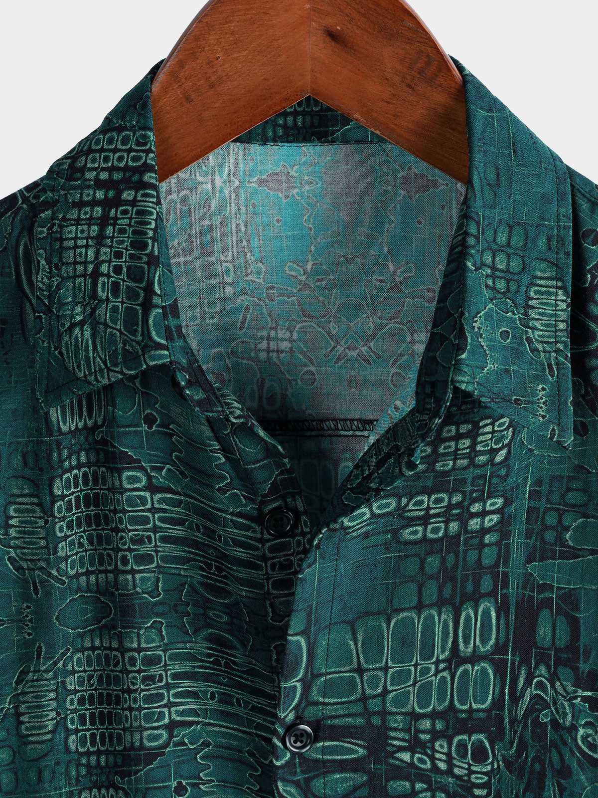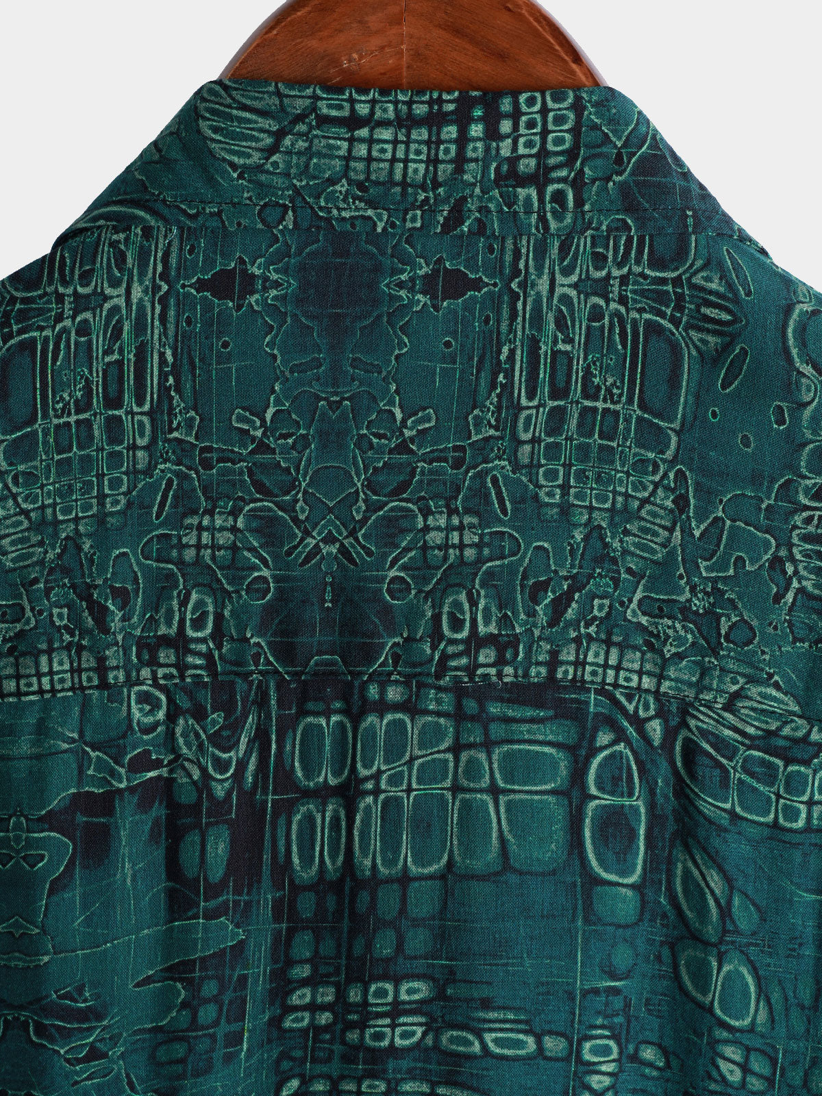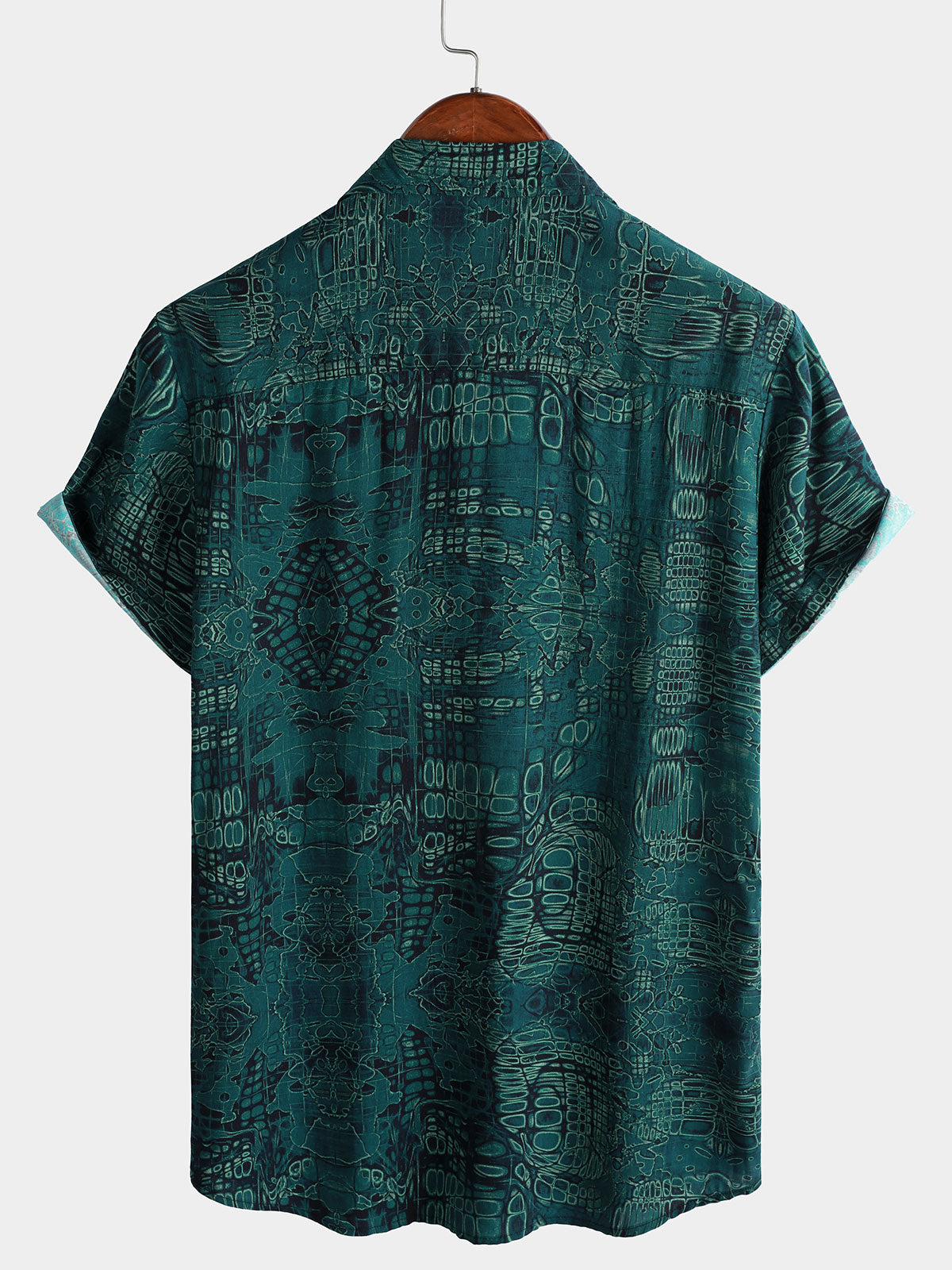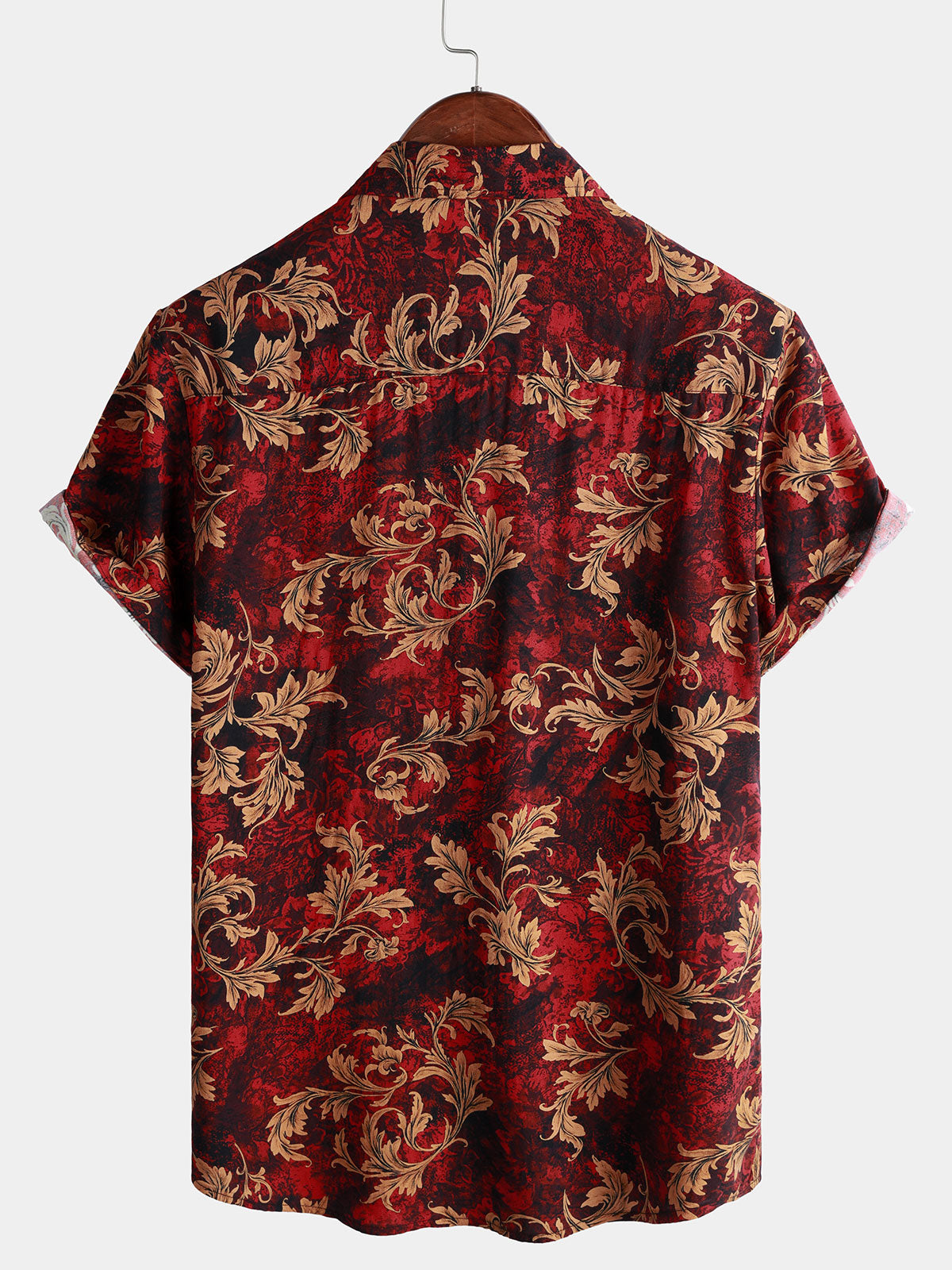 Chemise Homme Style Vintage Décontractée d'Été à Imprimé Manches Courtes