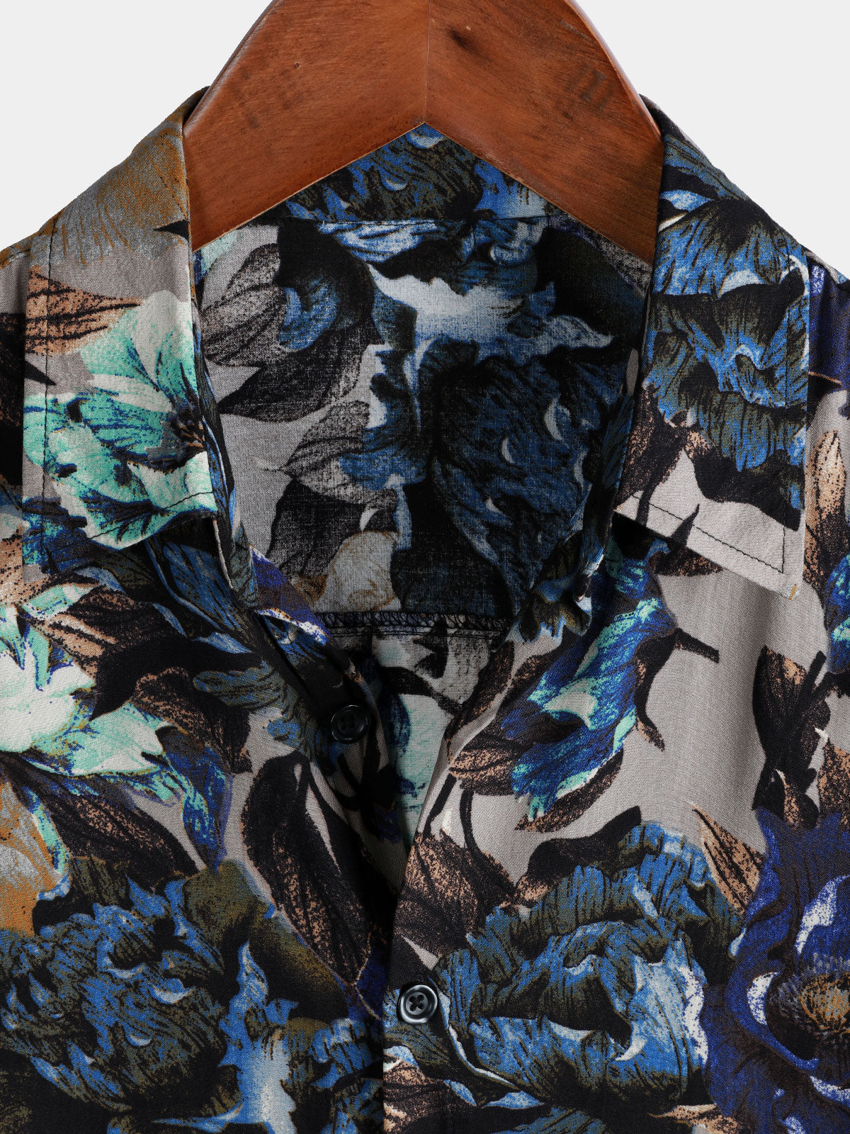 Chemise Homme Fleurie Vintage Manches Courtes Style Hawaïen Été