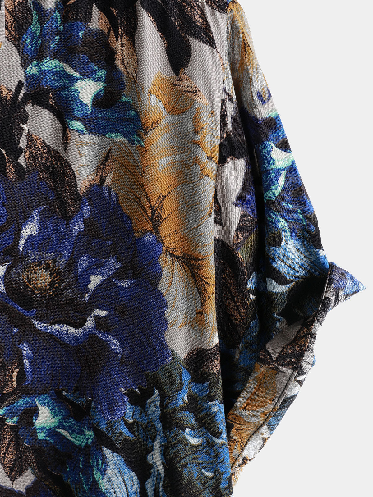 Chemise homme en rayonne à imprimé floral bleu style vintage manches courtes
