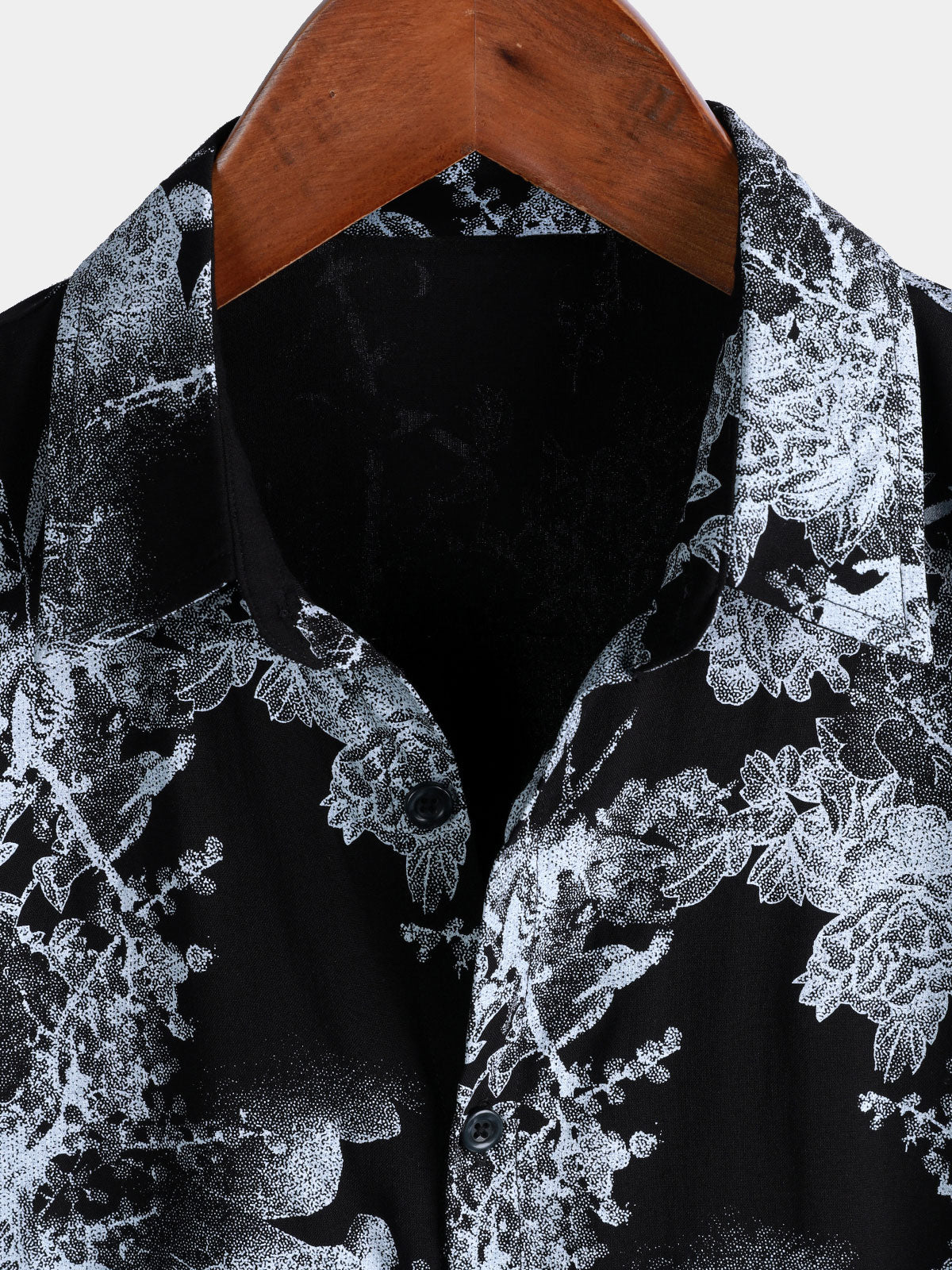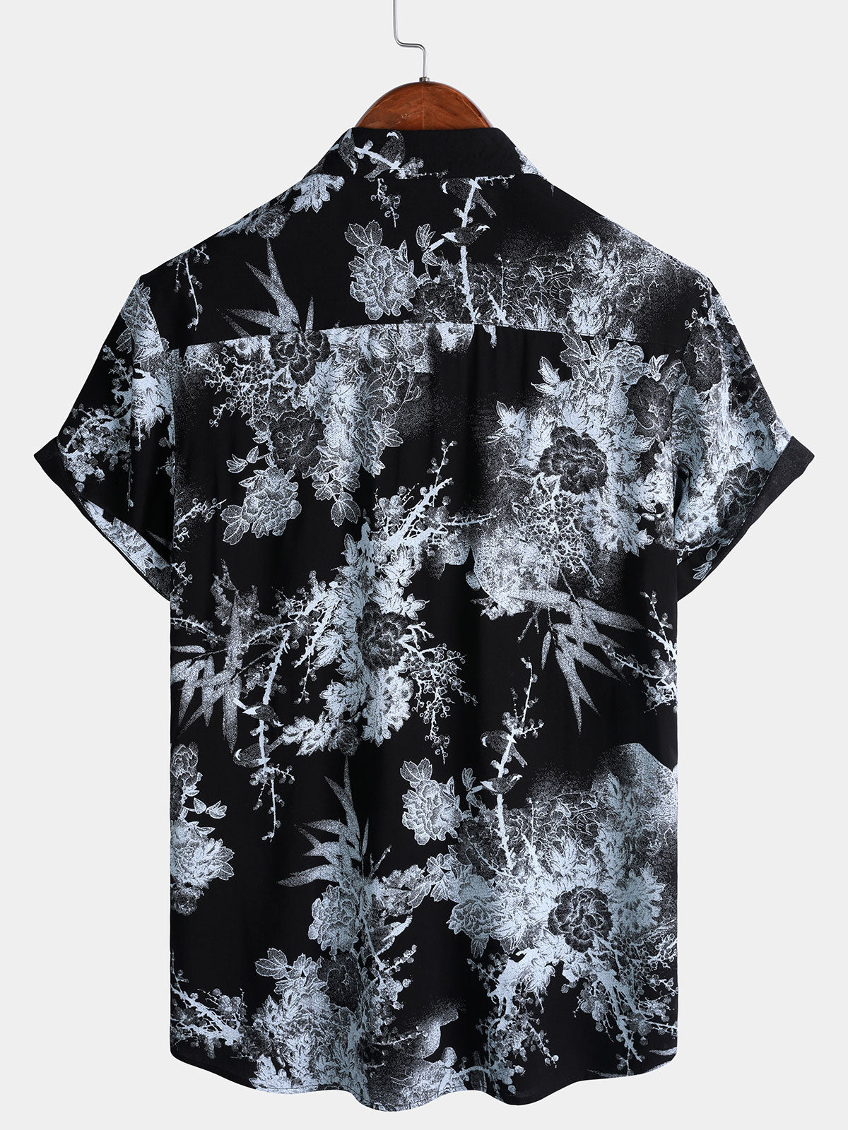 Chemise Homme Fleurie Rétro Vacances Décontractée Manches Courtes Boutonnée