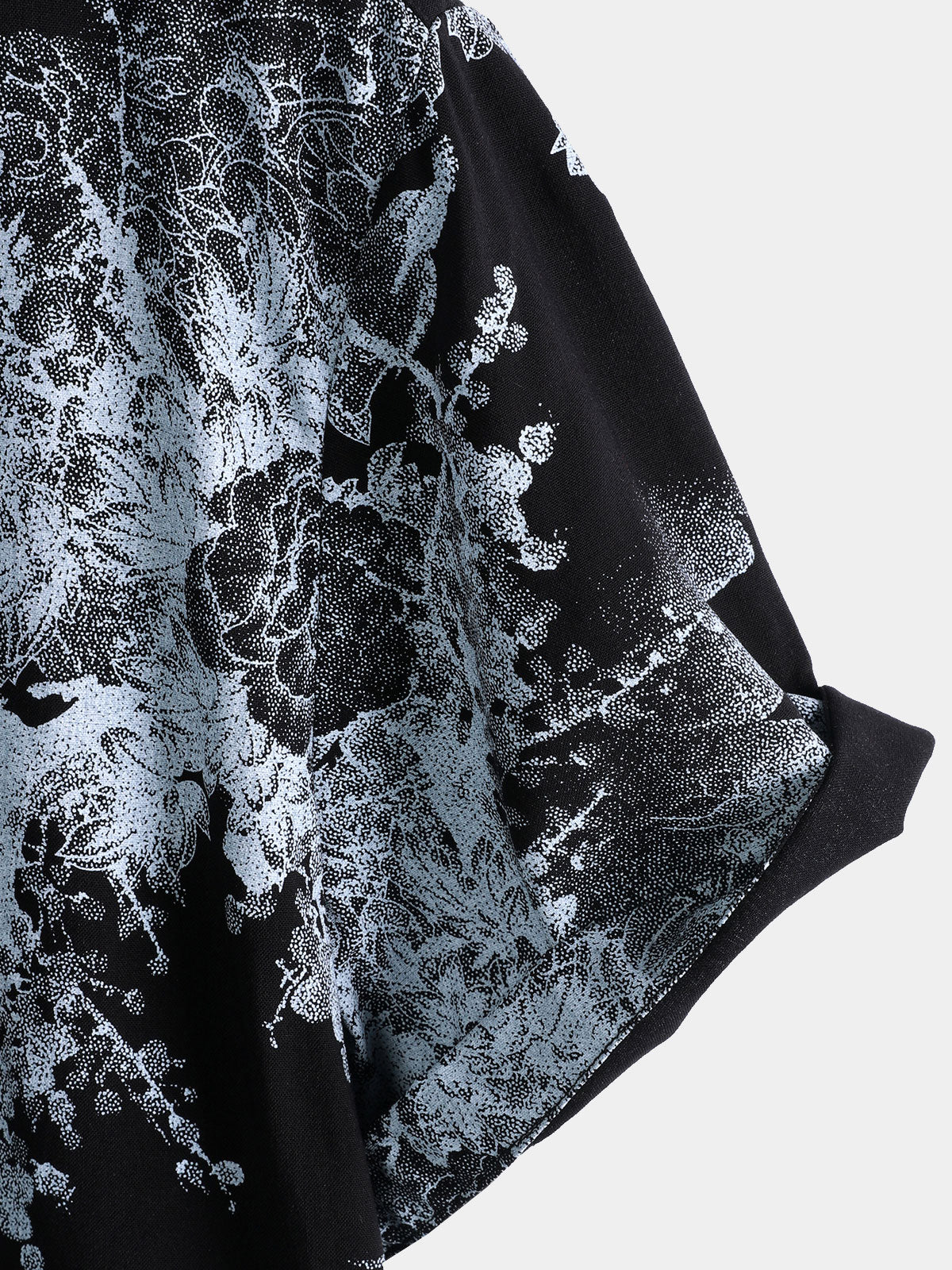 Chemise Homme Rétro à Boutons Manches Courtes à Motif Botanique Abstrait