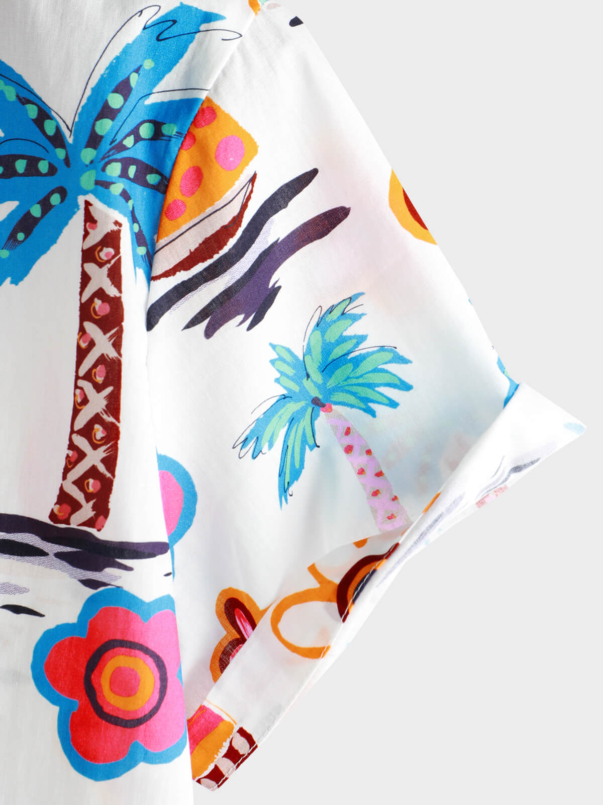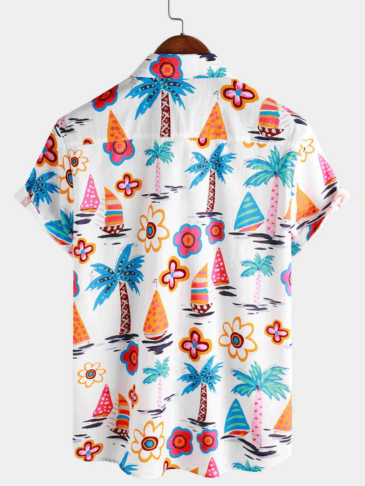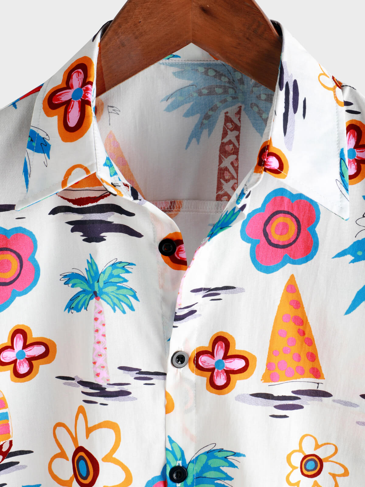 Chemise hawaïenne boutonnée à manches courtes en coton à imprimé tropical pour homme