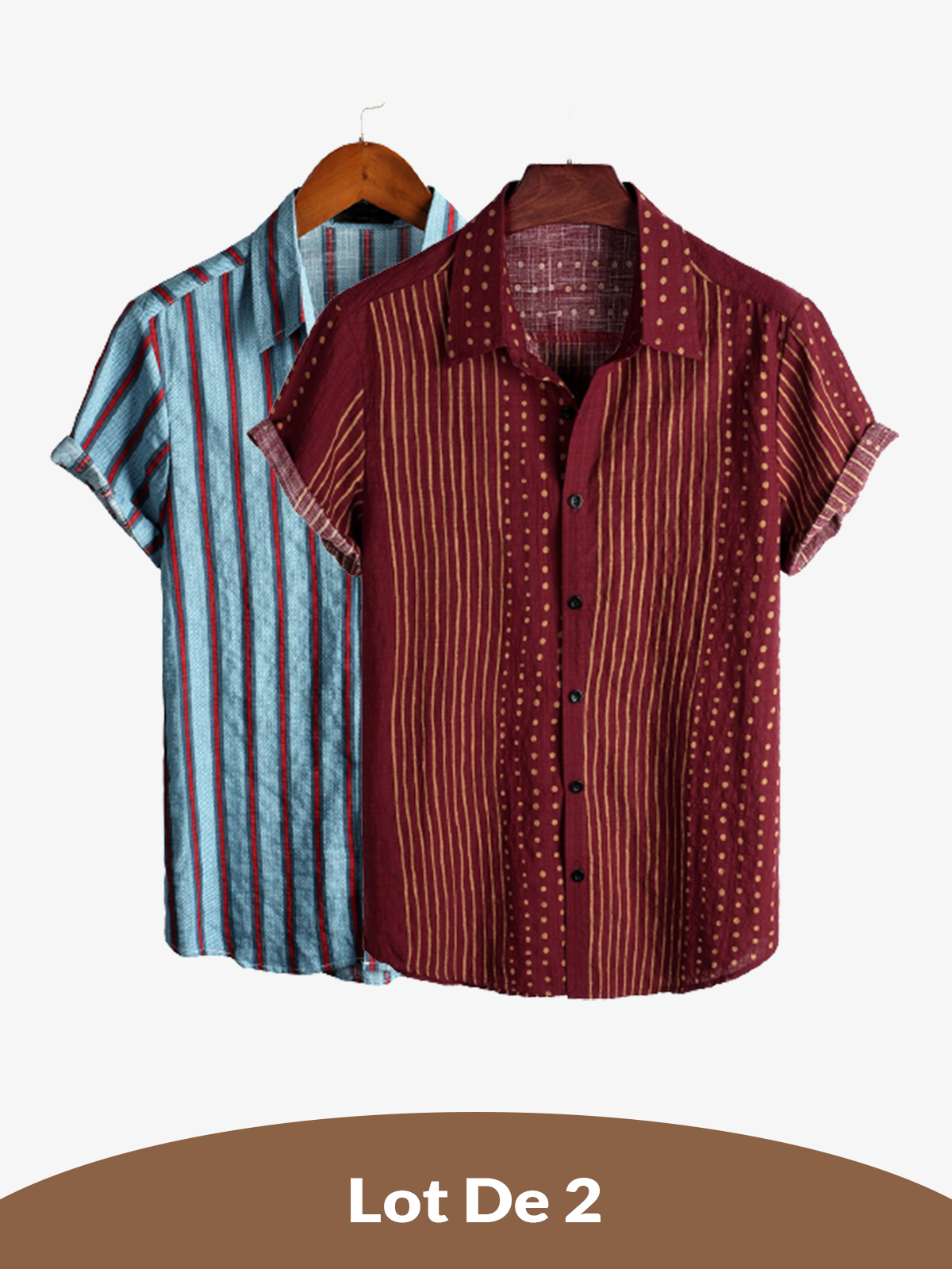 Lot de 2 | Chemises rayées à manches courtes en coton respirant pour hommes