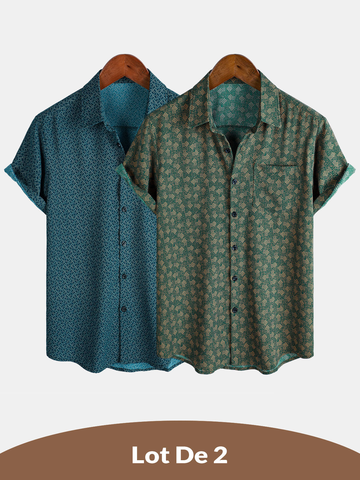 Lot de 2 | Chemises à manches courtes pour homme à imprimé géométrique rétro