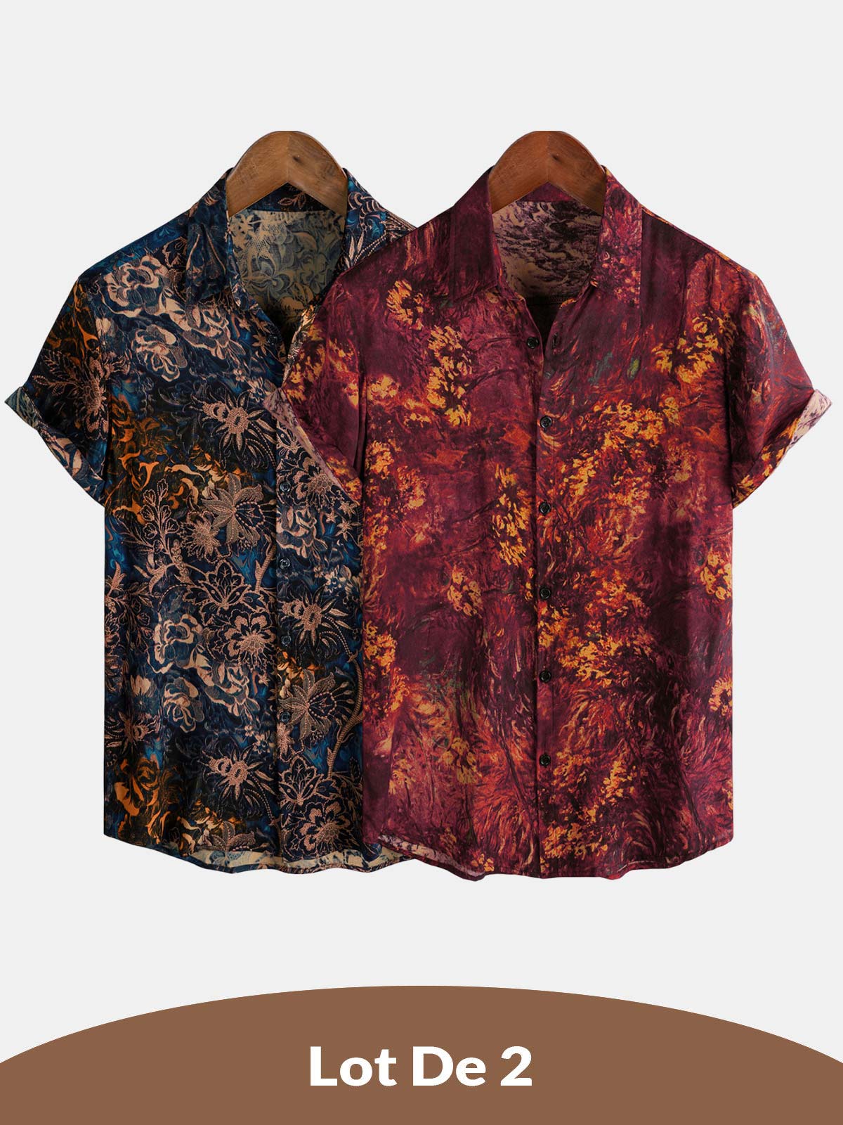 Lot de 2 | Chemises hawaïennes respirantes à manches courtes pour homme, style rétro, style vacances