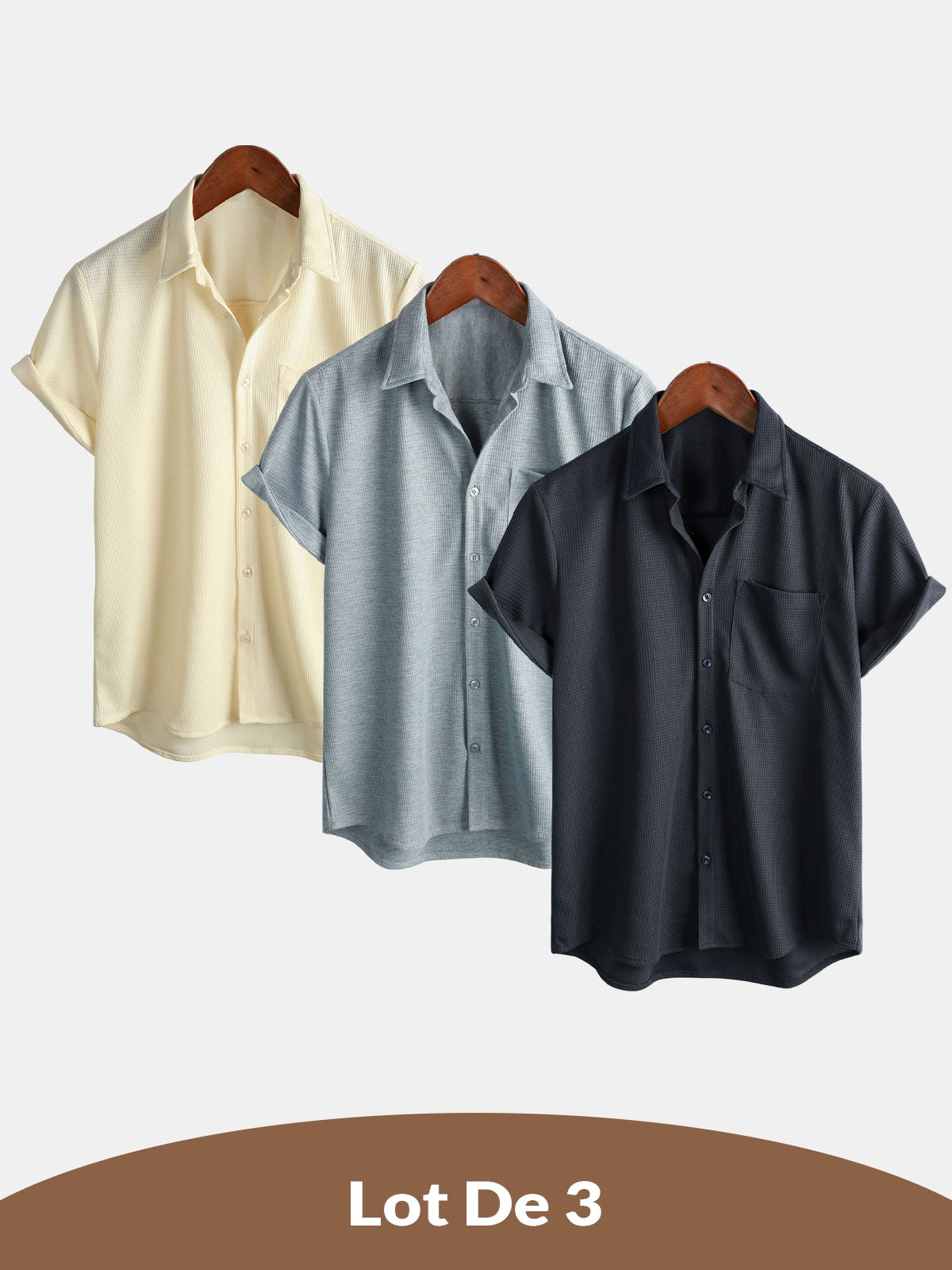 Lot de 3 | Chemises de plage décontractées gaufrées pour homme, coupe ample, été
