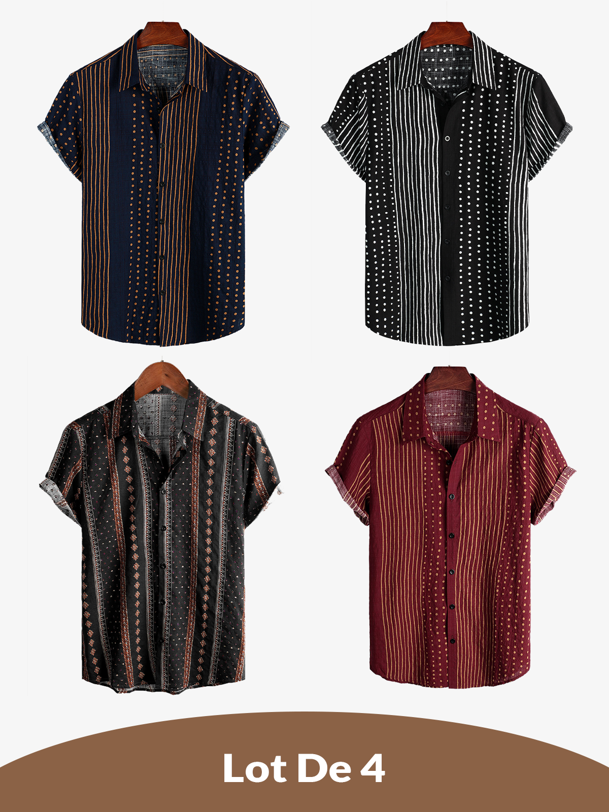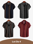 Lot de 4 | Chemises rayées rétro à manches courtes en coton respirant pour hommes