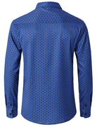 Chemise à manches longues bleue à imprimé géométrique rétro pour homme