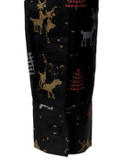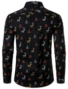 Chemise à manches longues noire respirante à imprimé sapin de Noël et élan pour homme