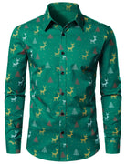 Chemise à manches longues respirante verte à imprimé sapin de Noël et élan pour homme
