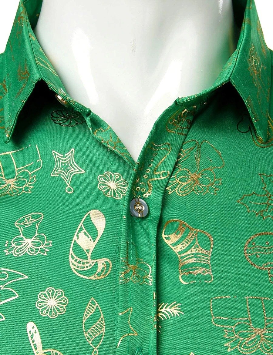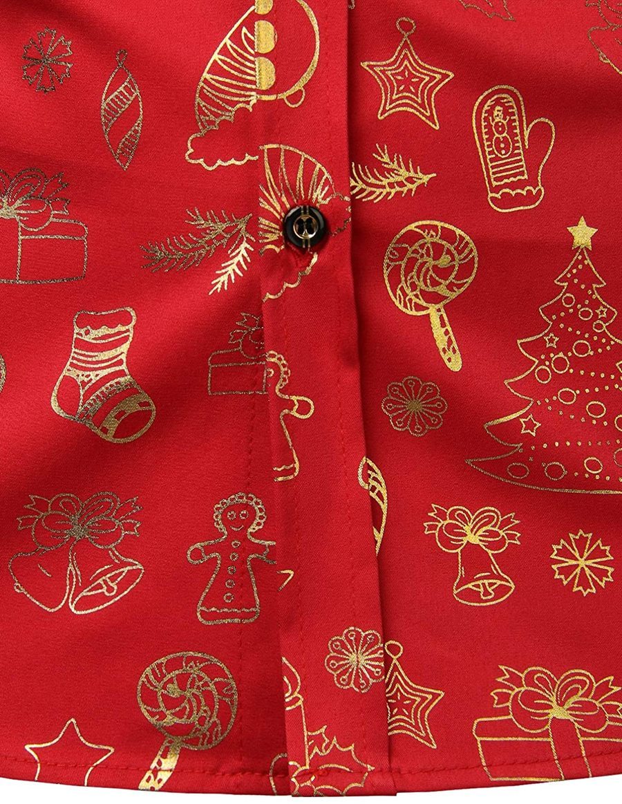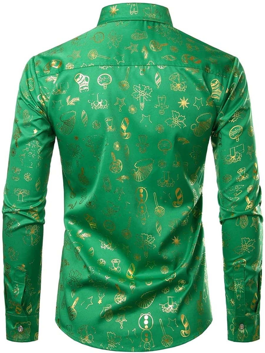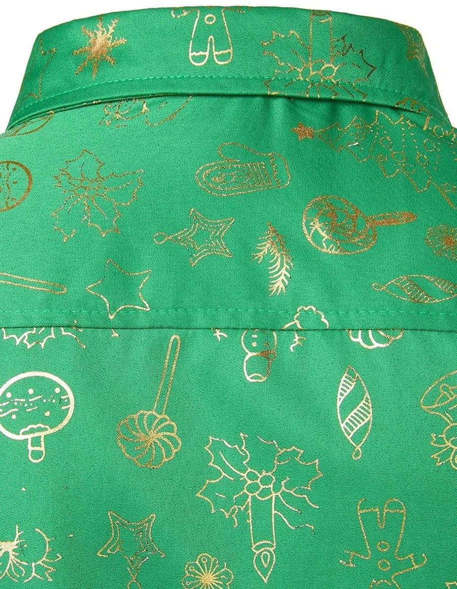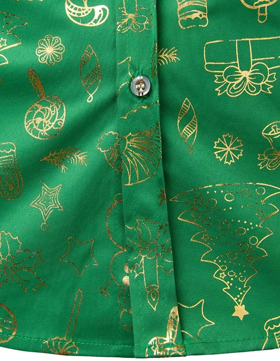 Chemise habillée à manches longues boutonnée pour la fête de Noël à imprimé doré pour hommes