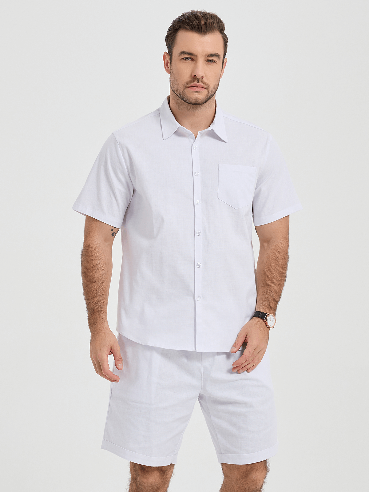 Ensemble chemise et short assortis vintage décontractés boutonnés pour hommes