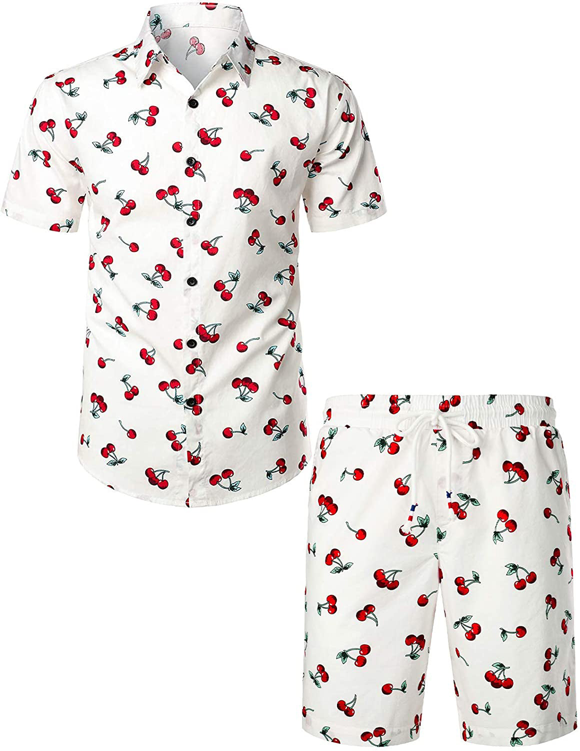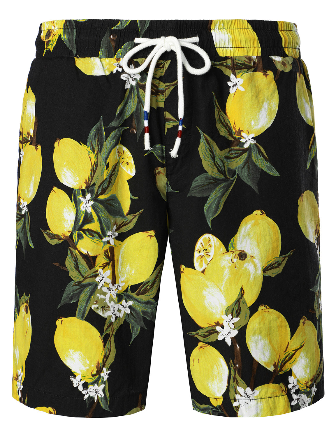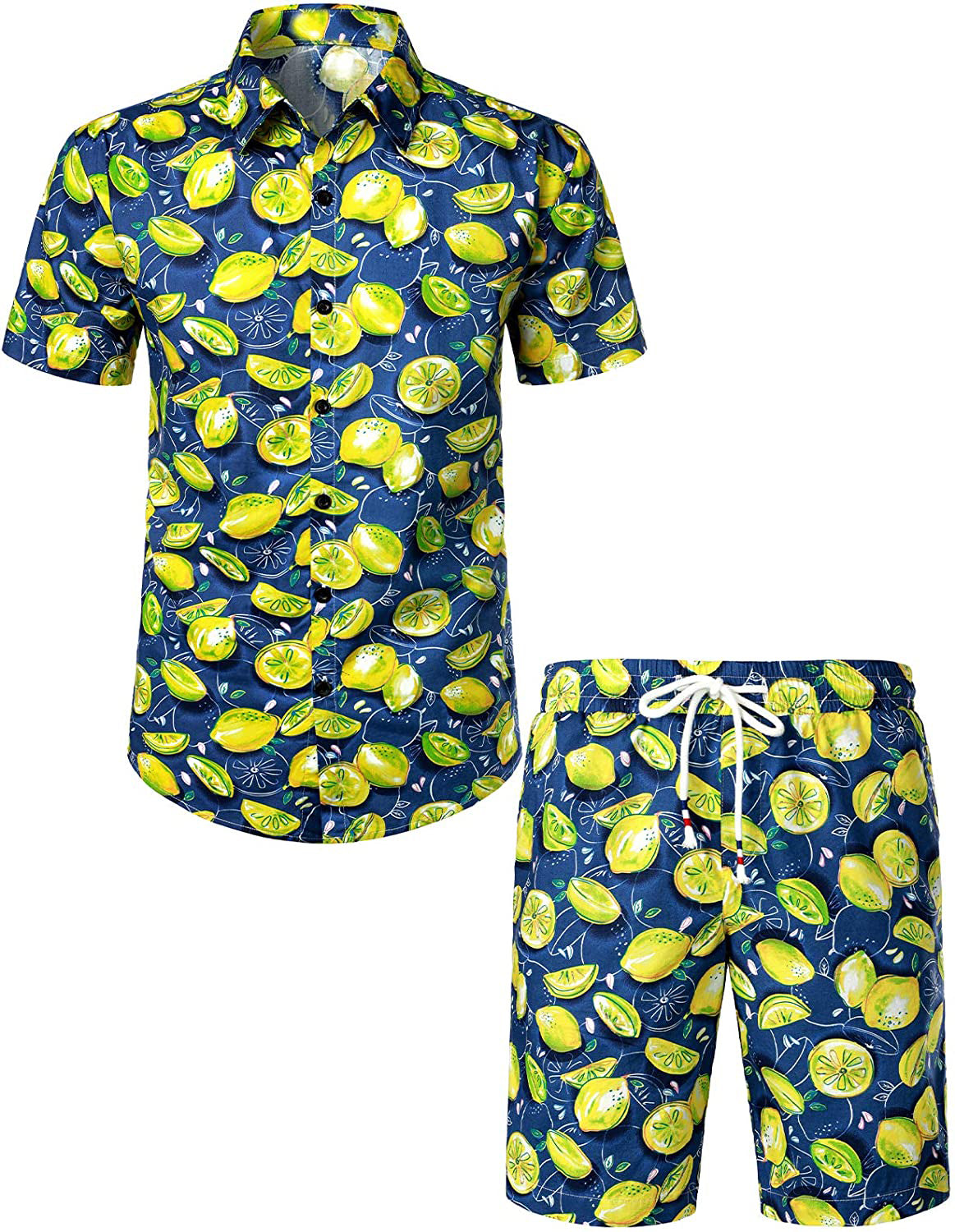 Men's Lemon Print Cotton Hawaiian Shirt and Shorts Set