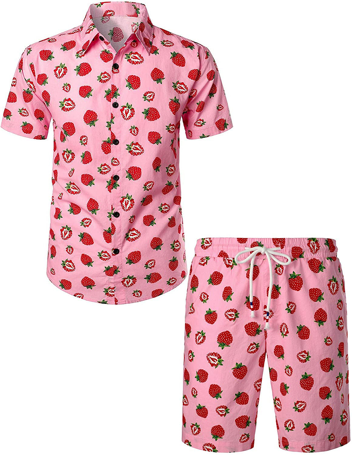 Ensemble chemise et short hawaïen en coton imprimé pastèque pour hommes