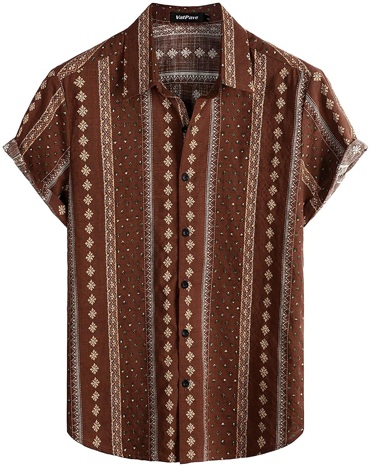 Ensemble chemise et short assortis à manches courtes Boho vintage pour hommes