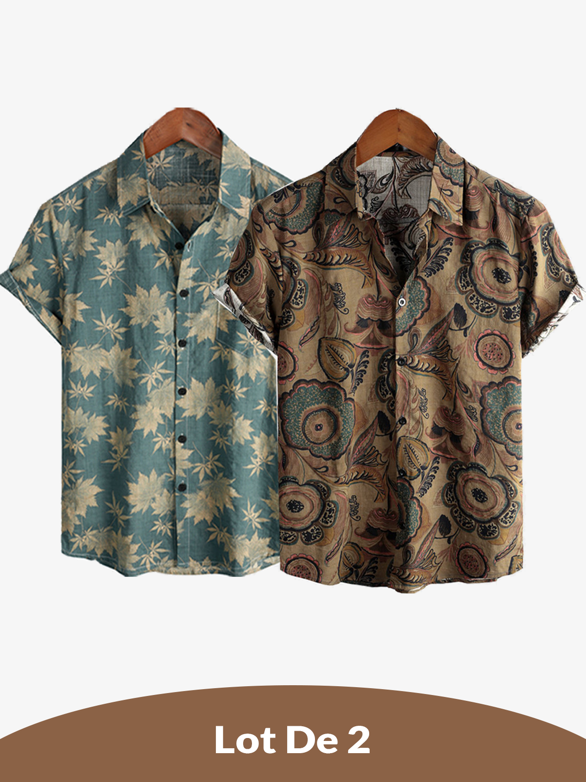 Lot de 2 | Chemises rétro en coton à manches courtes pour hommes