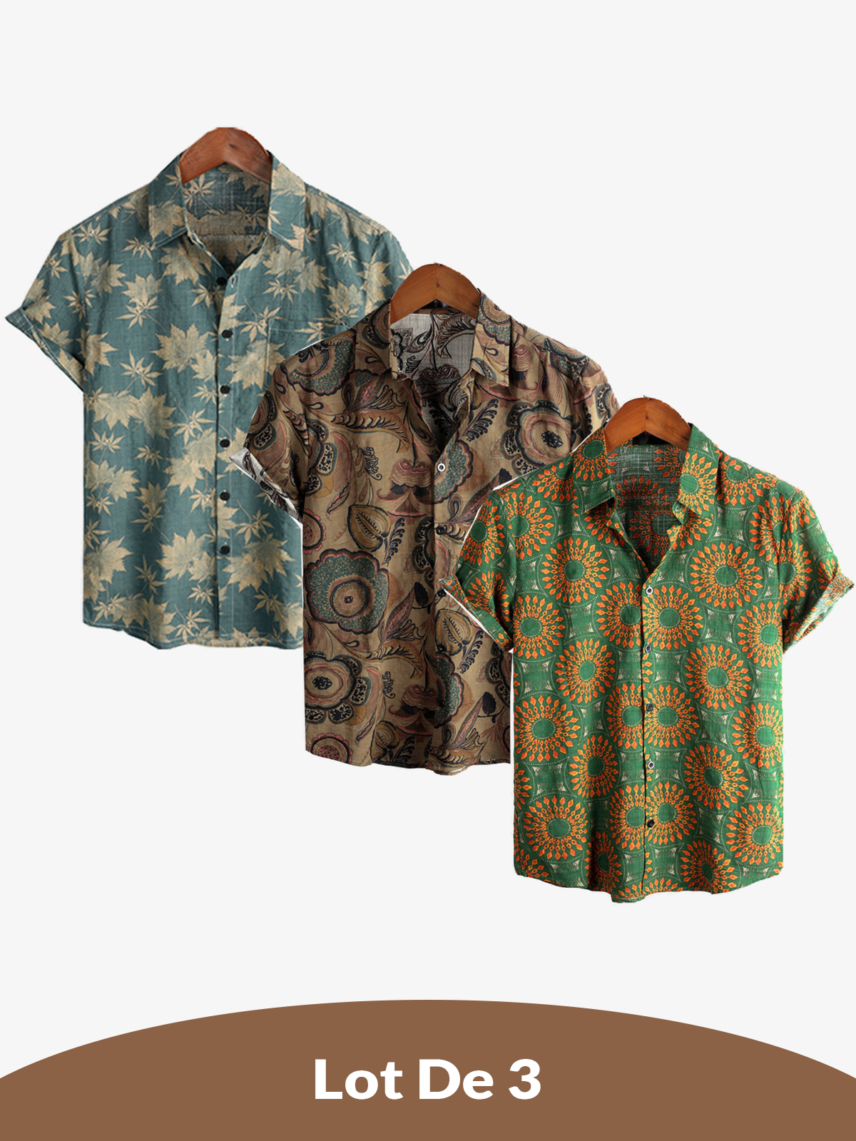 Lot de 3 | Chemises rétro en coton à manches courtes pour hommes