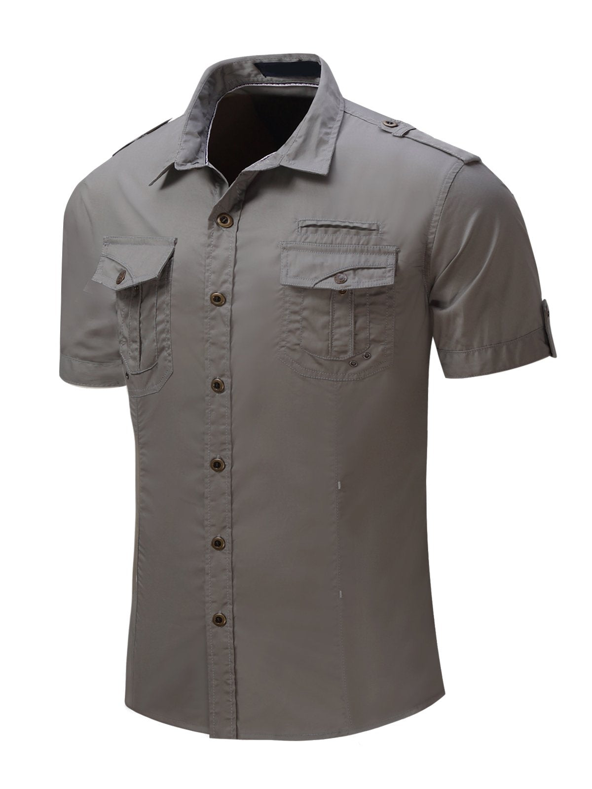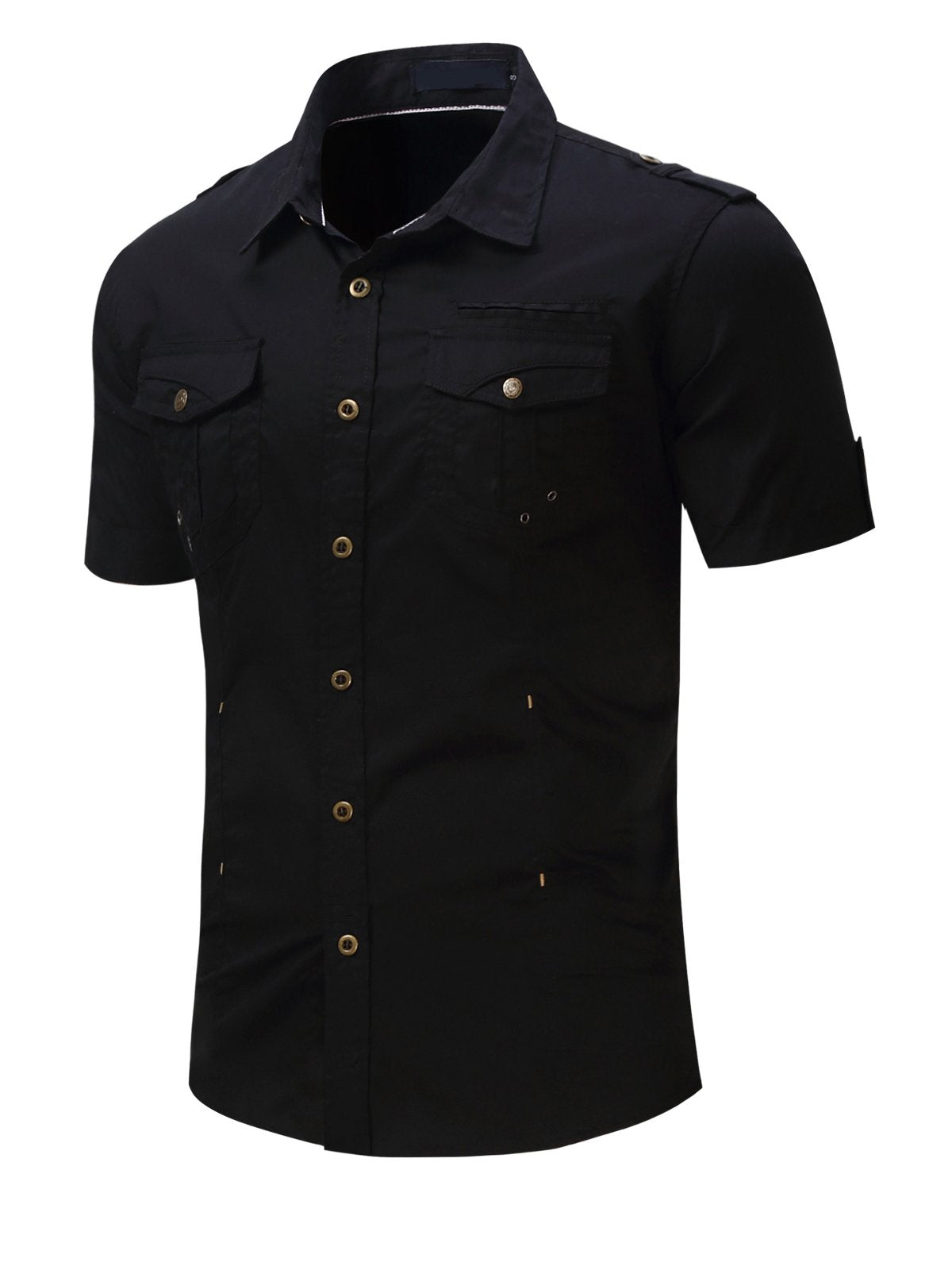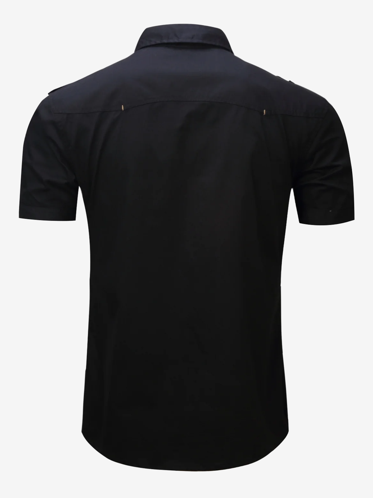 Chemise à manches courtes en coton pour homme avec poche rétro décontractée des années 50