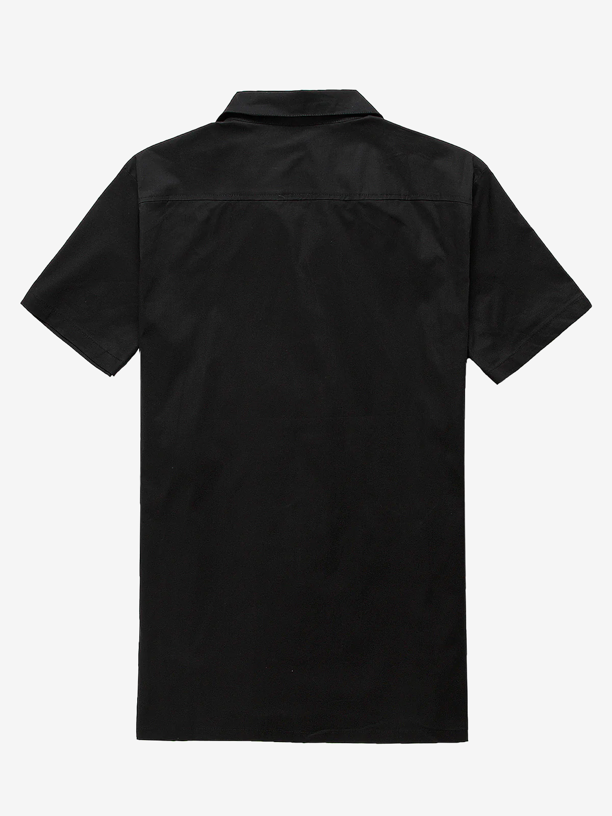Chemise à manches courtes avec drapeau à damier noir et blanc Camp 50's Cotton Pocket Bowling pour homme