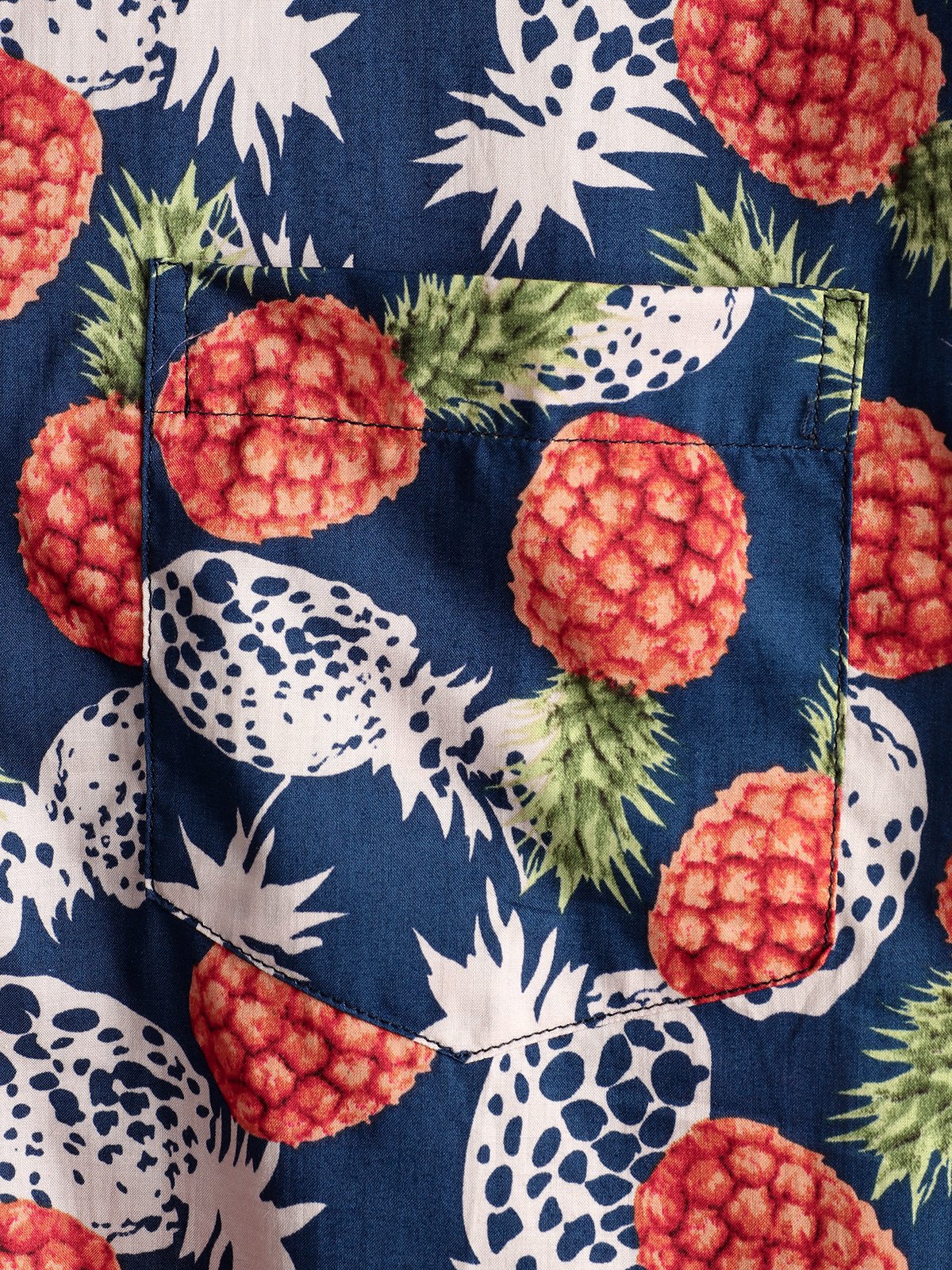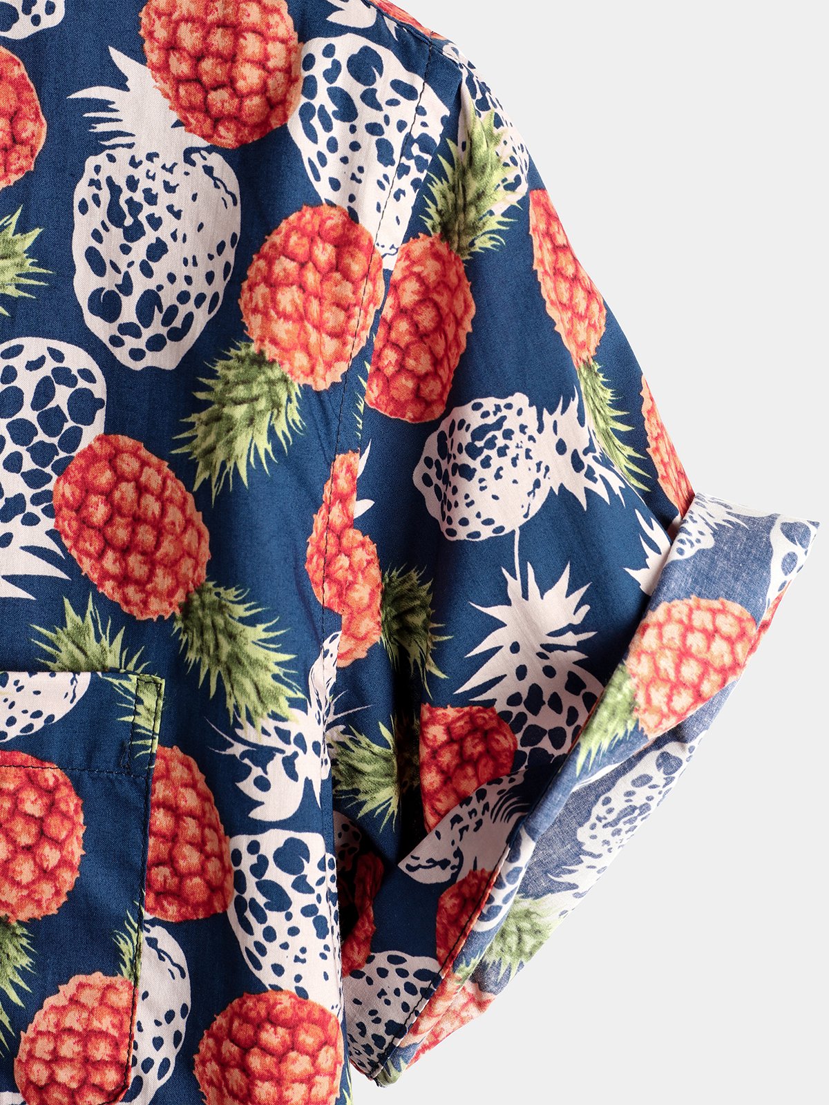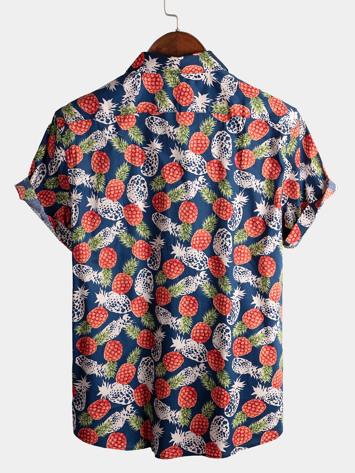 Chemise à manches courtes en coton vintage pour homme avec poche de fruits et ananas
