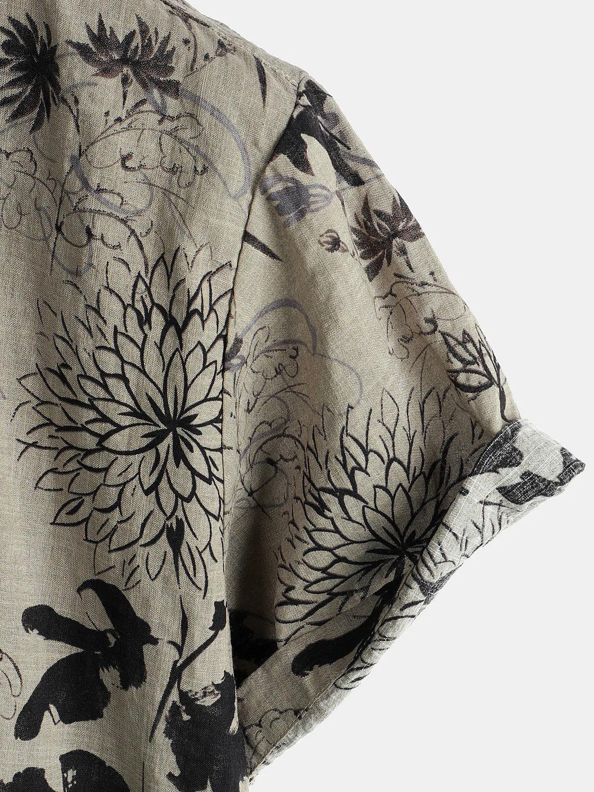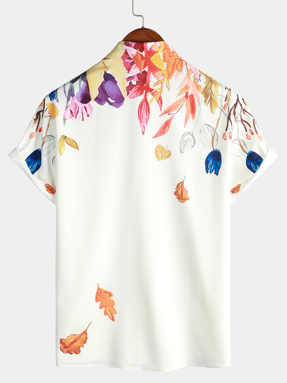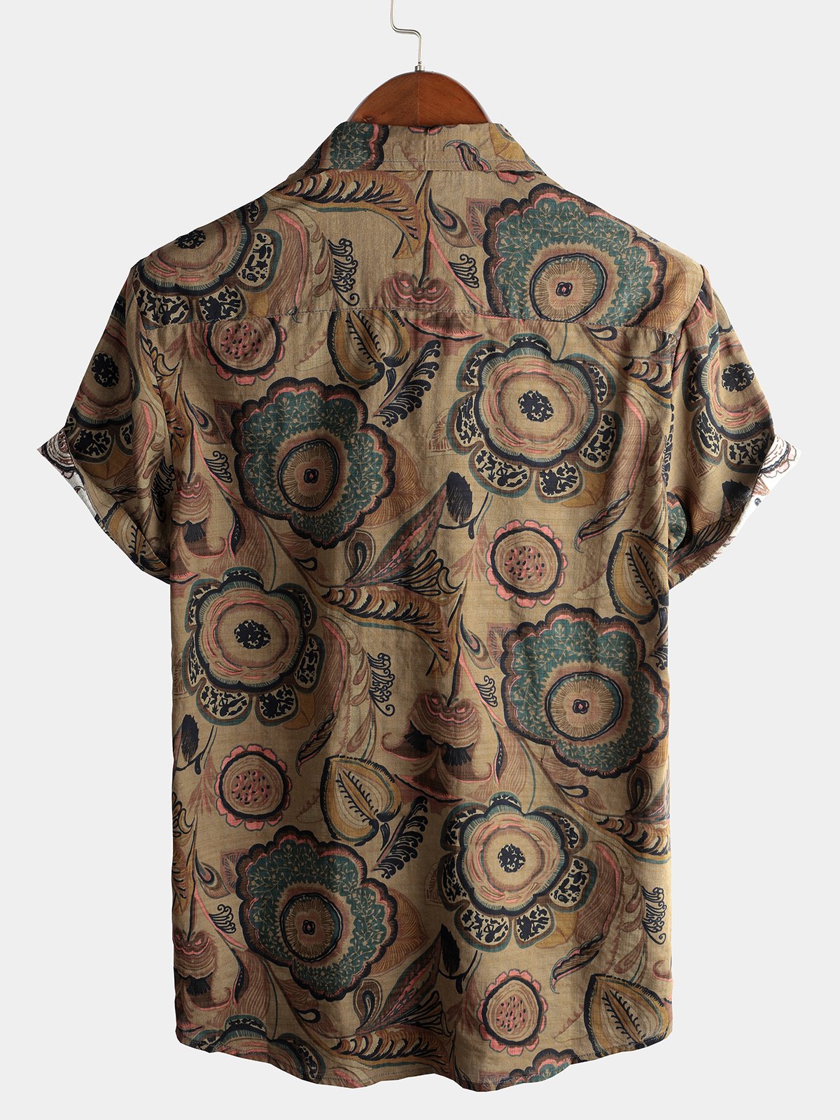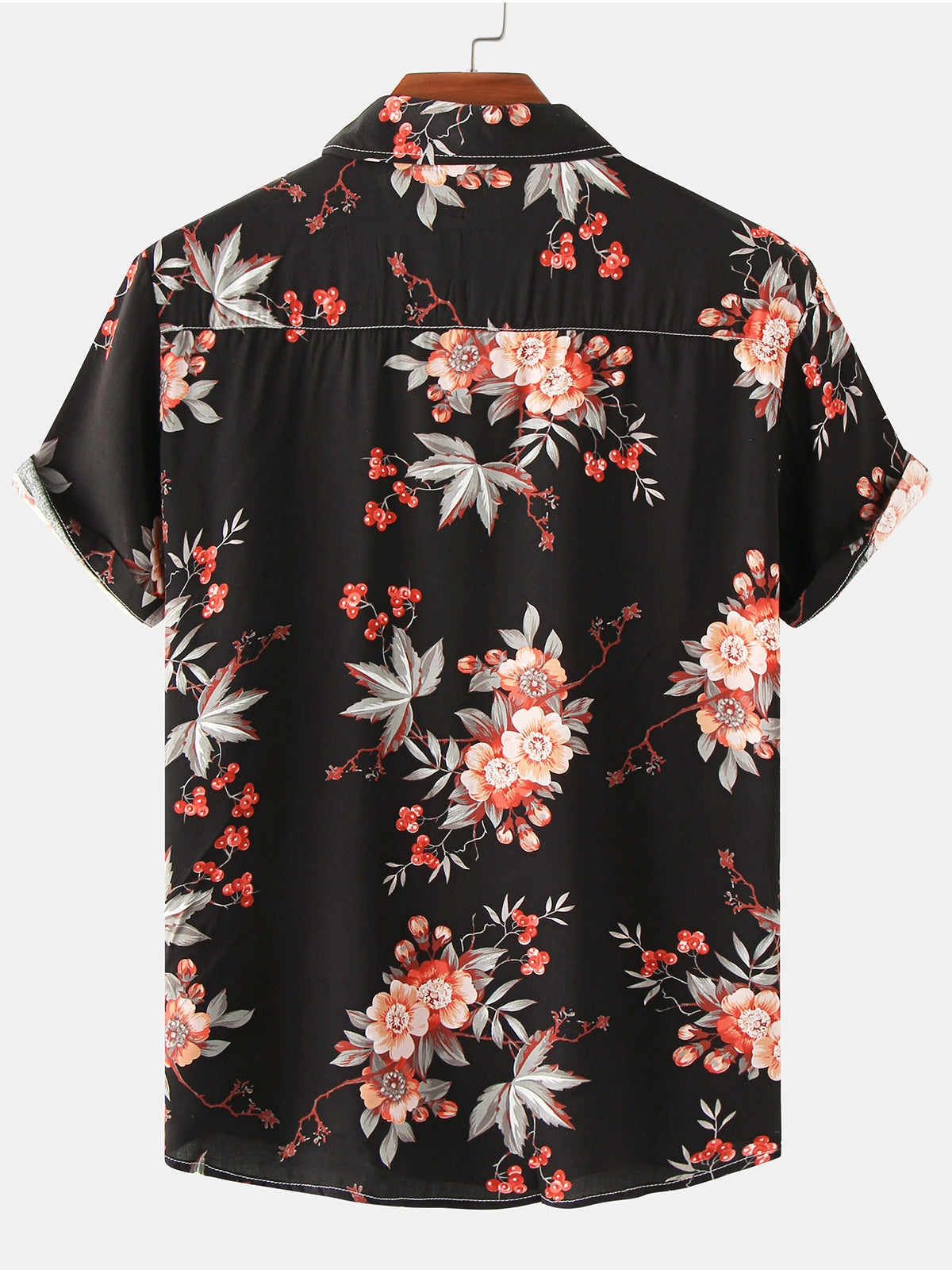 Chemise à manches courtes à manches courtes pour homme avec imprimé floral rétro