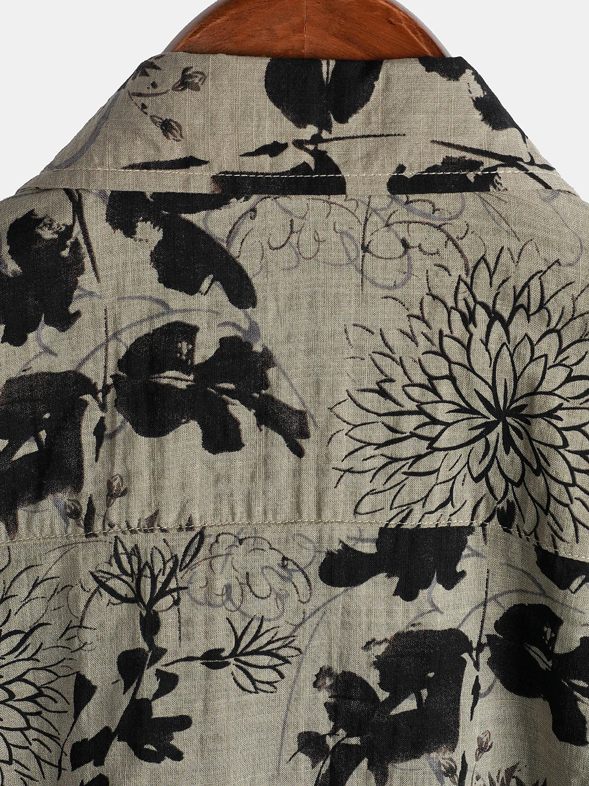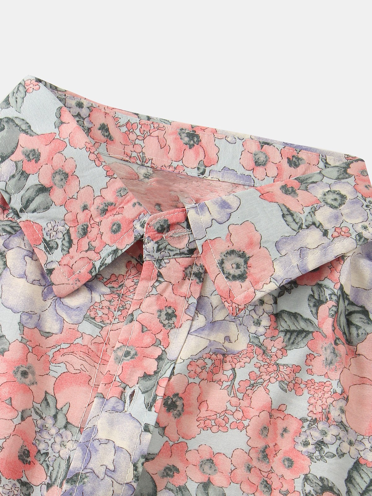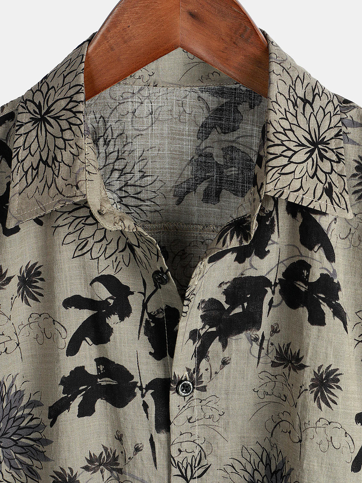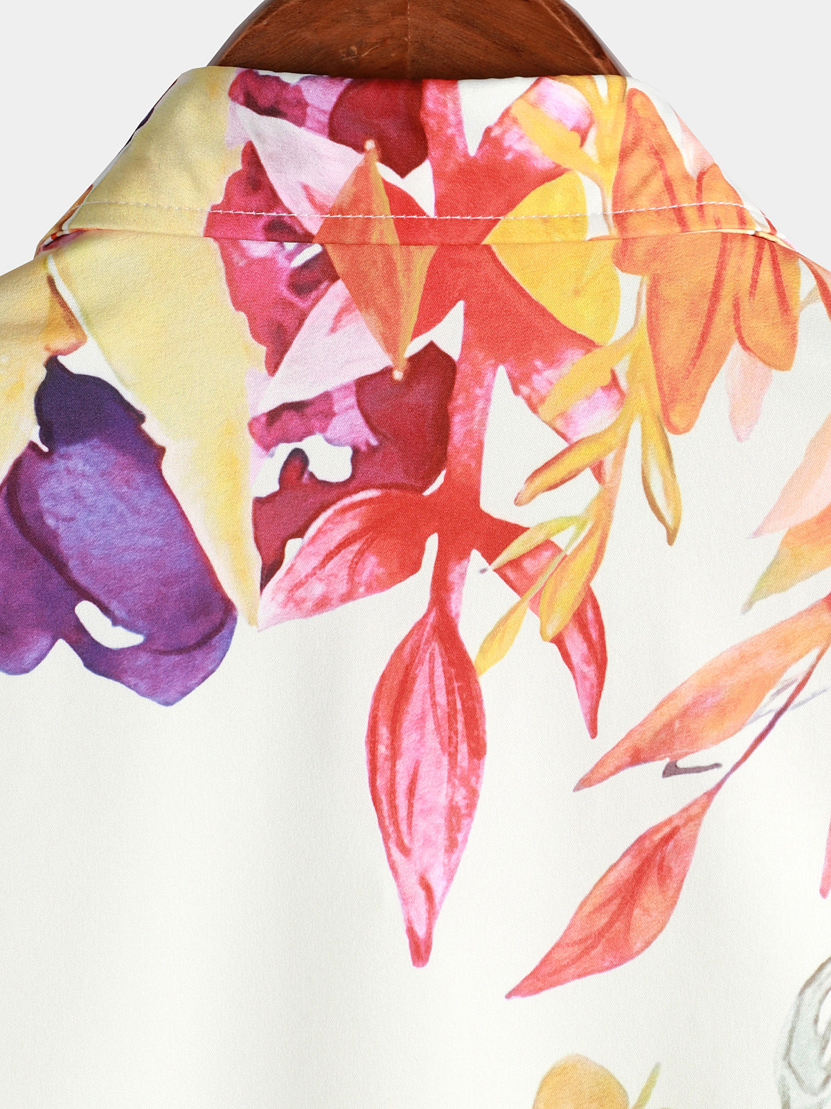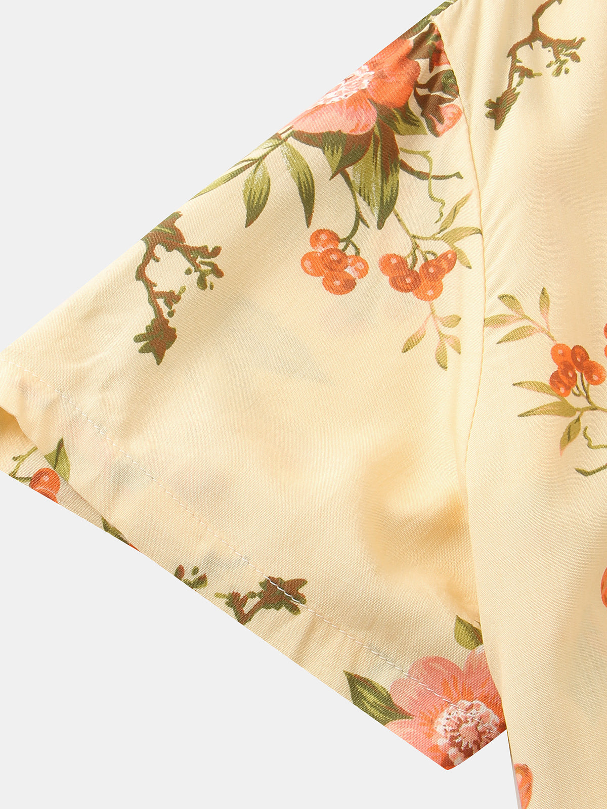 Chemise à manches courtes à manches courtes pour homme avec imprimé floral rétro