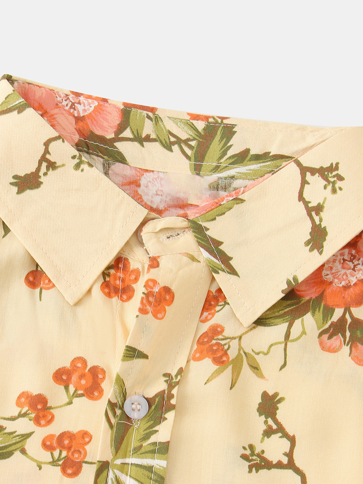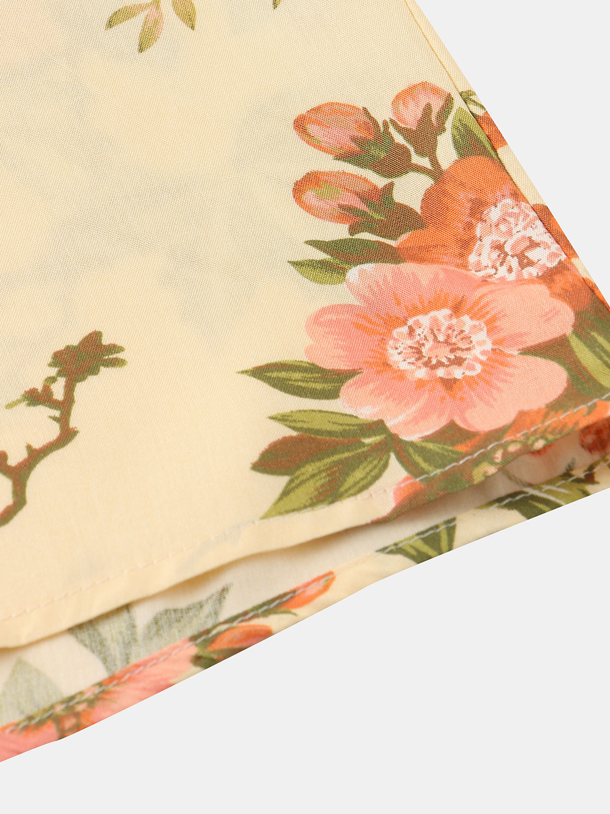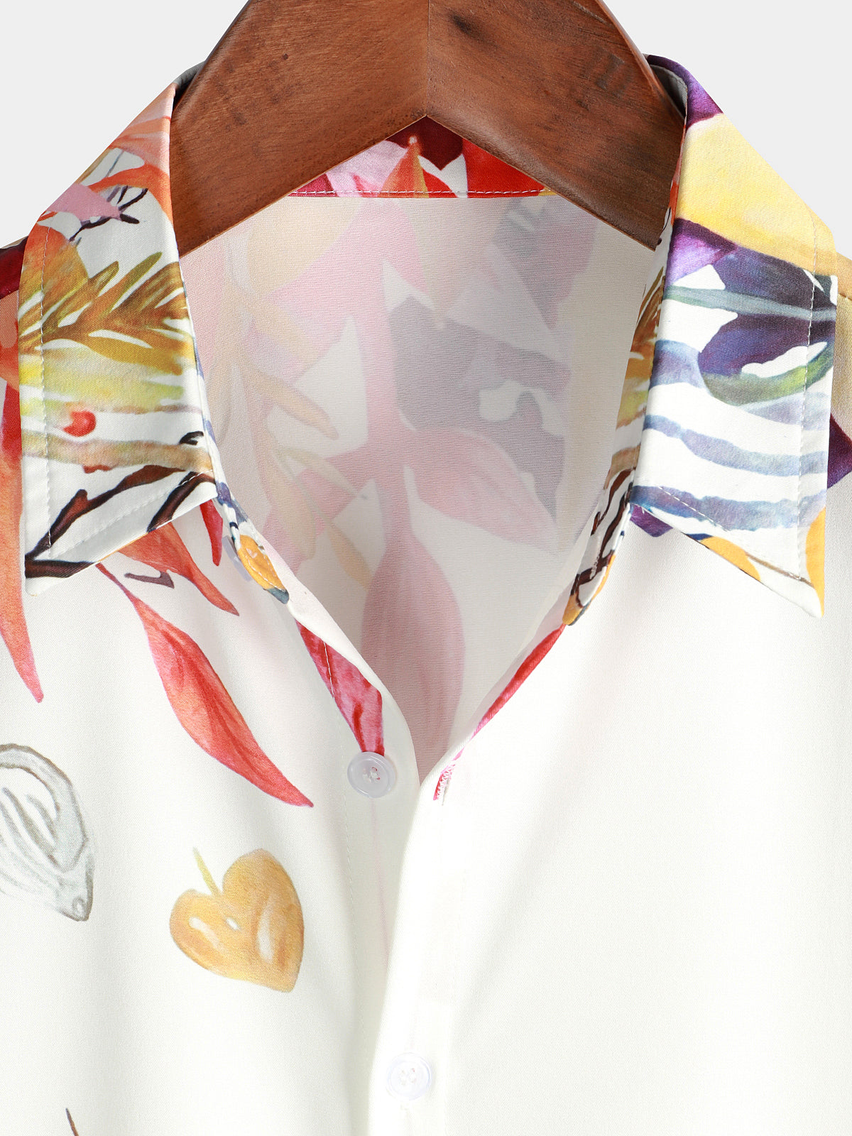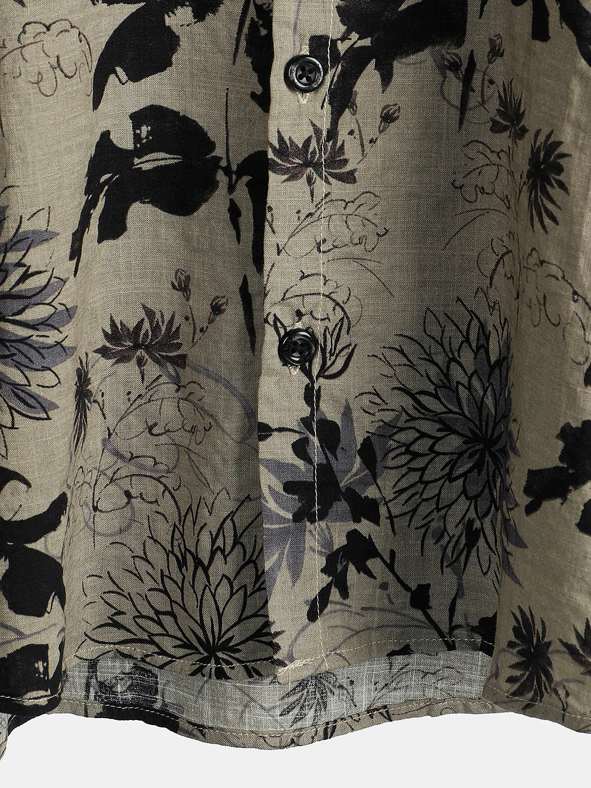 Chemise à manches courtes à manches courtes pour homme avec imprimé floral rétro
