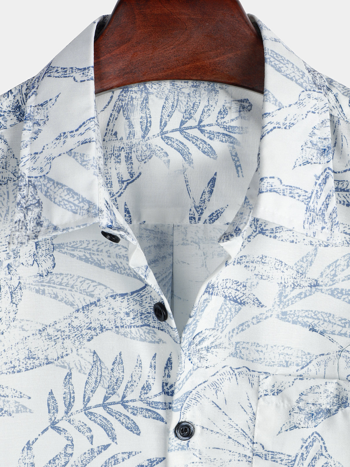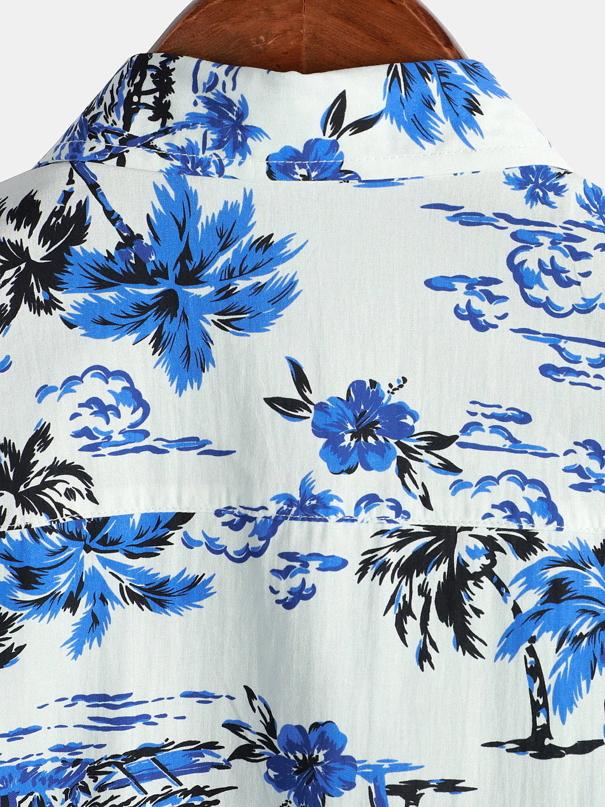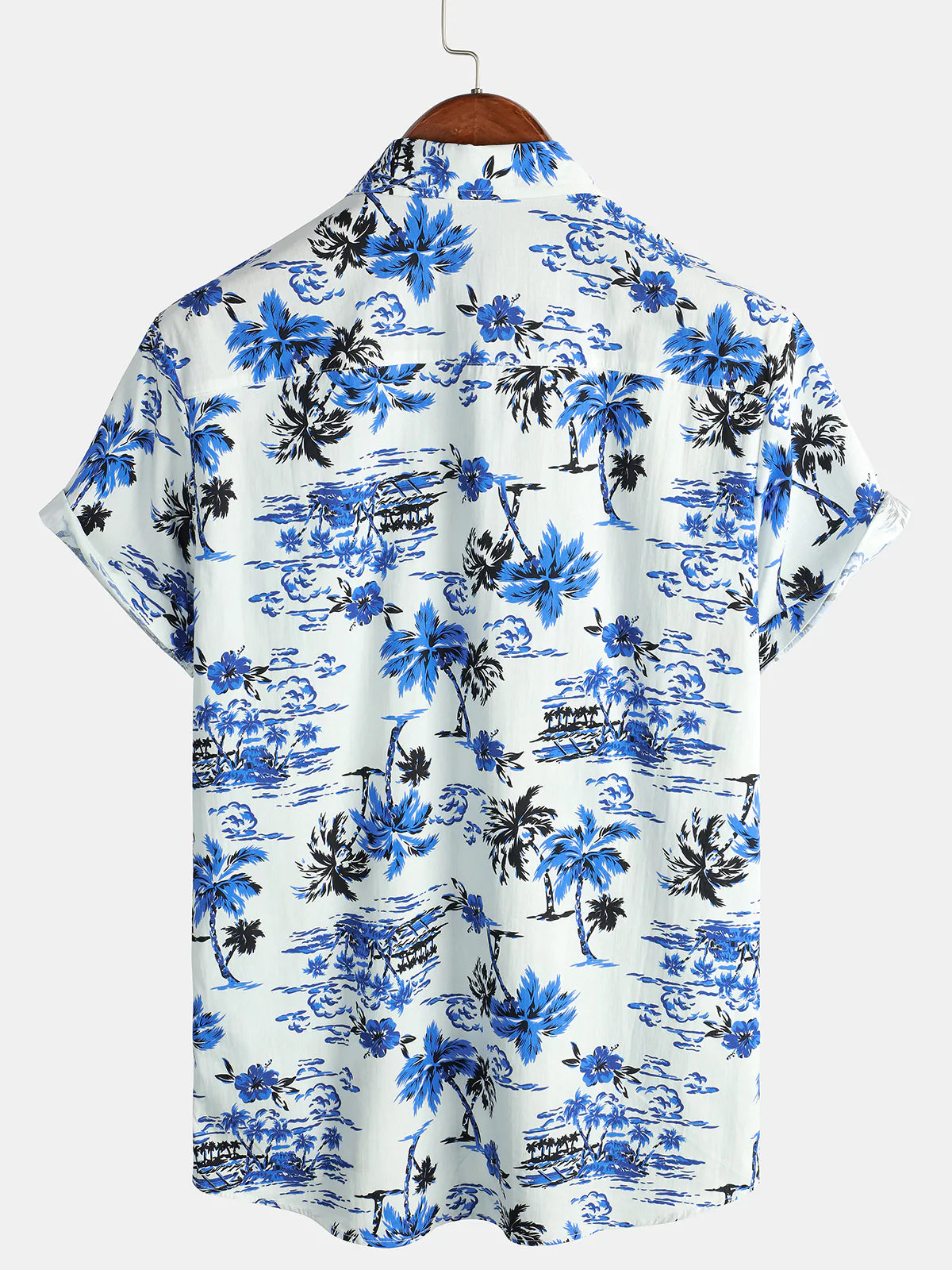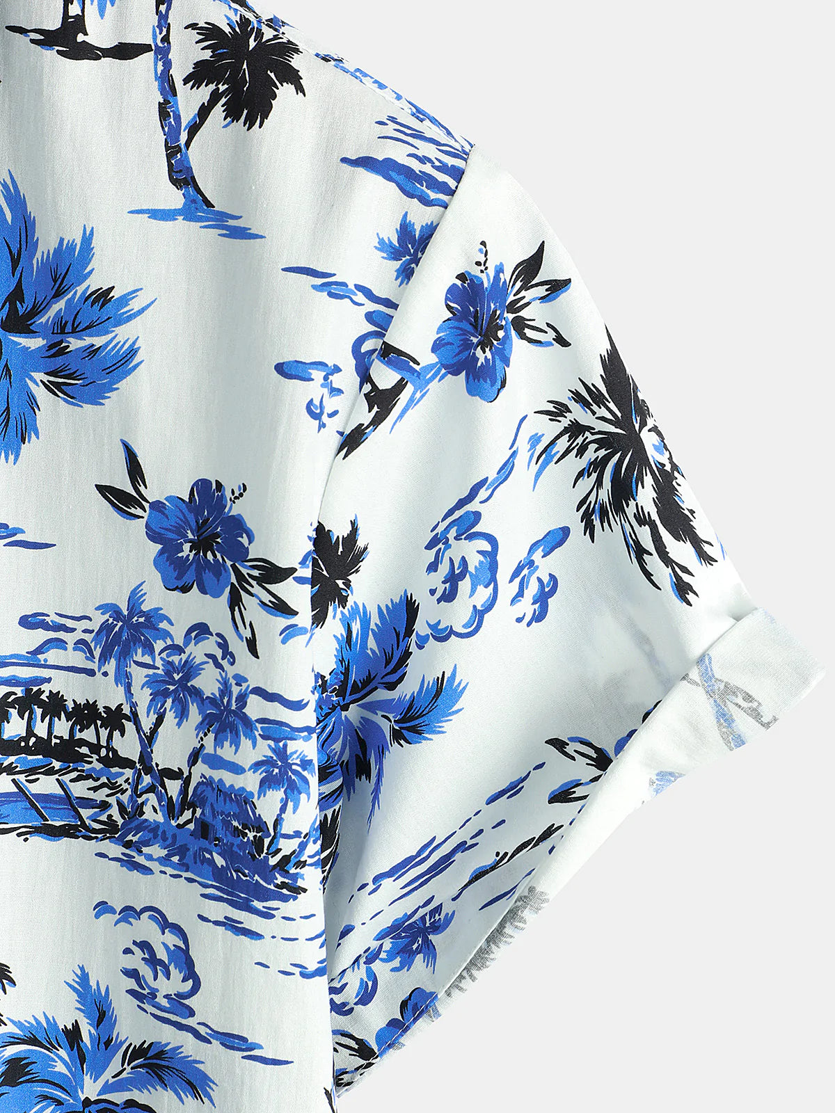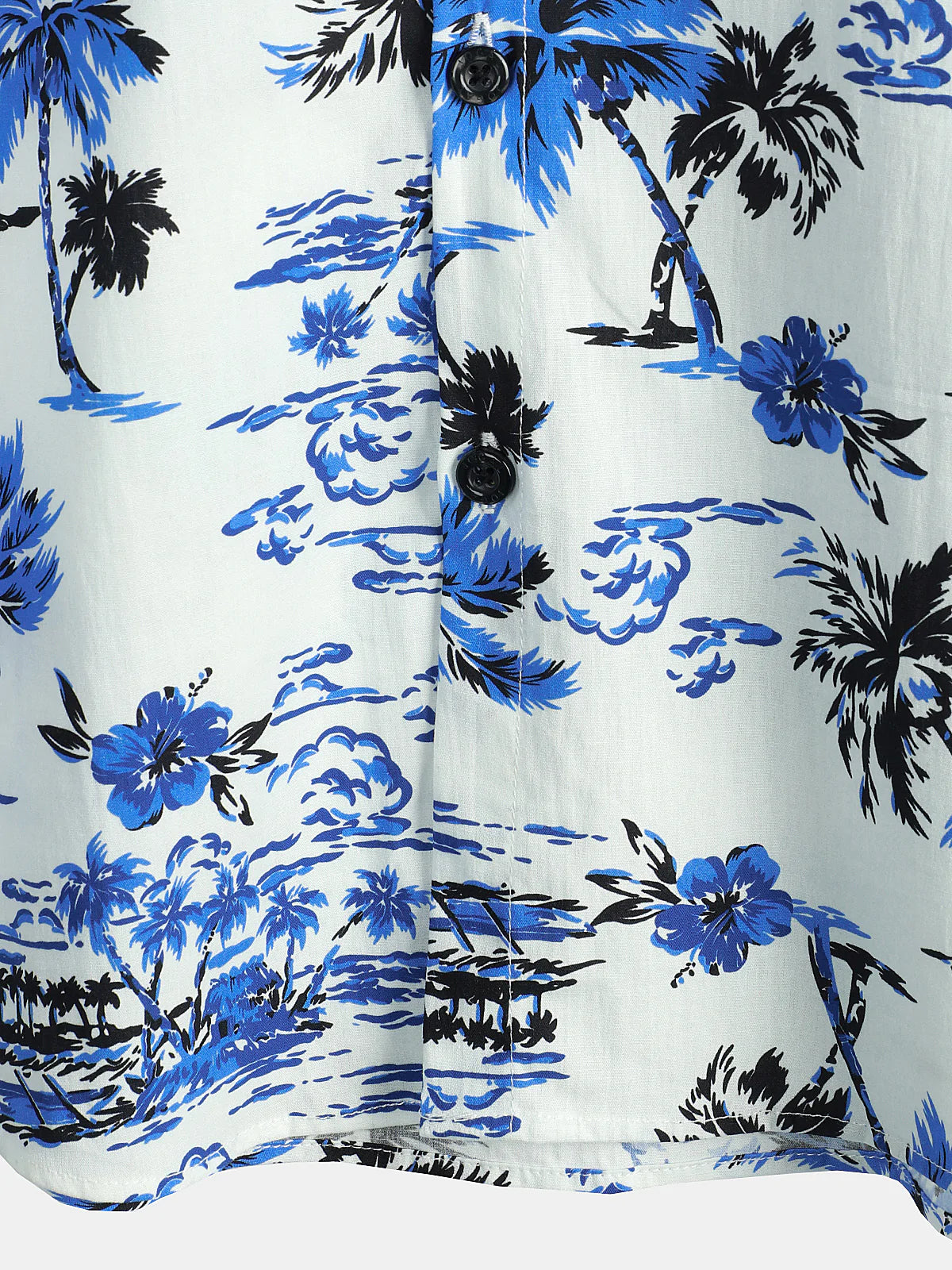chemise d'homme en pur coton à imprimé style de vacances hawaïennes