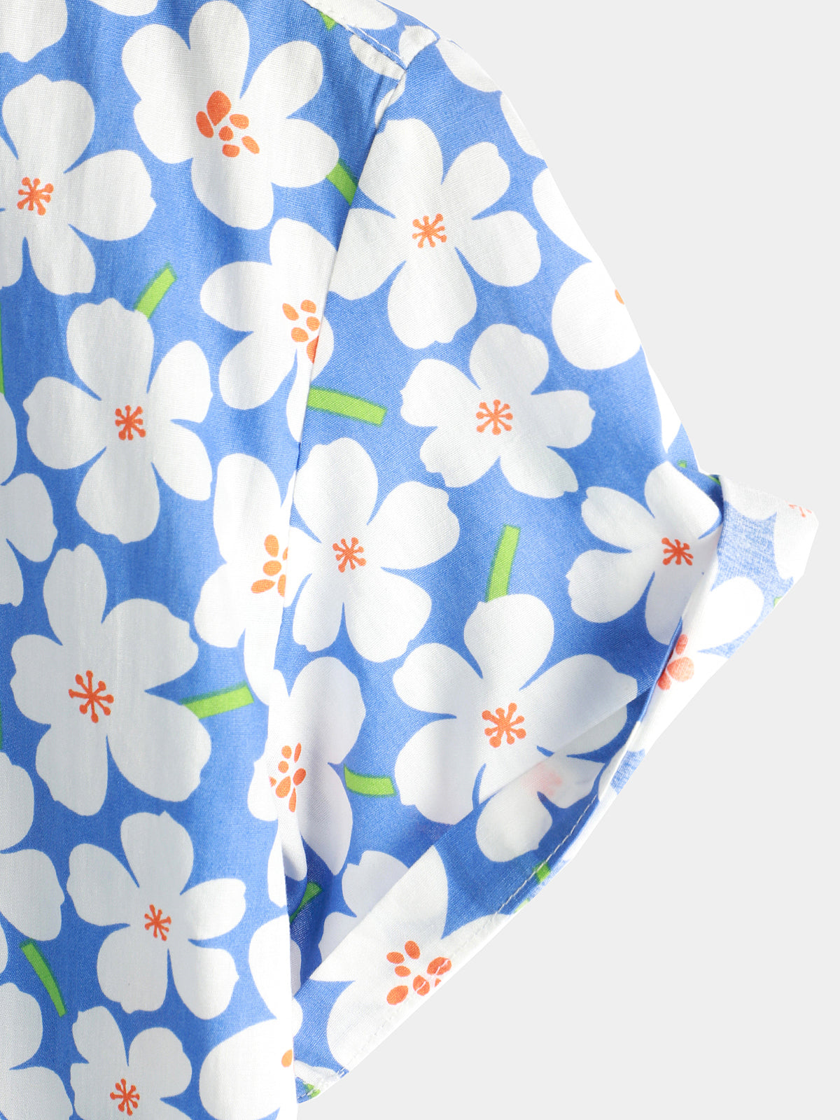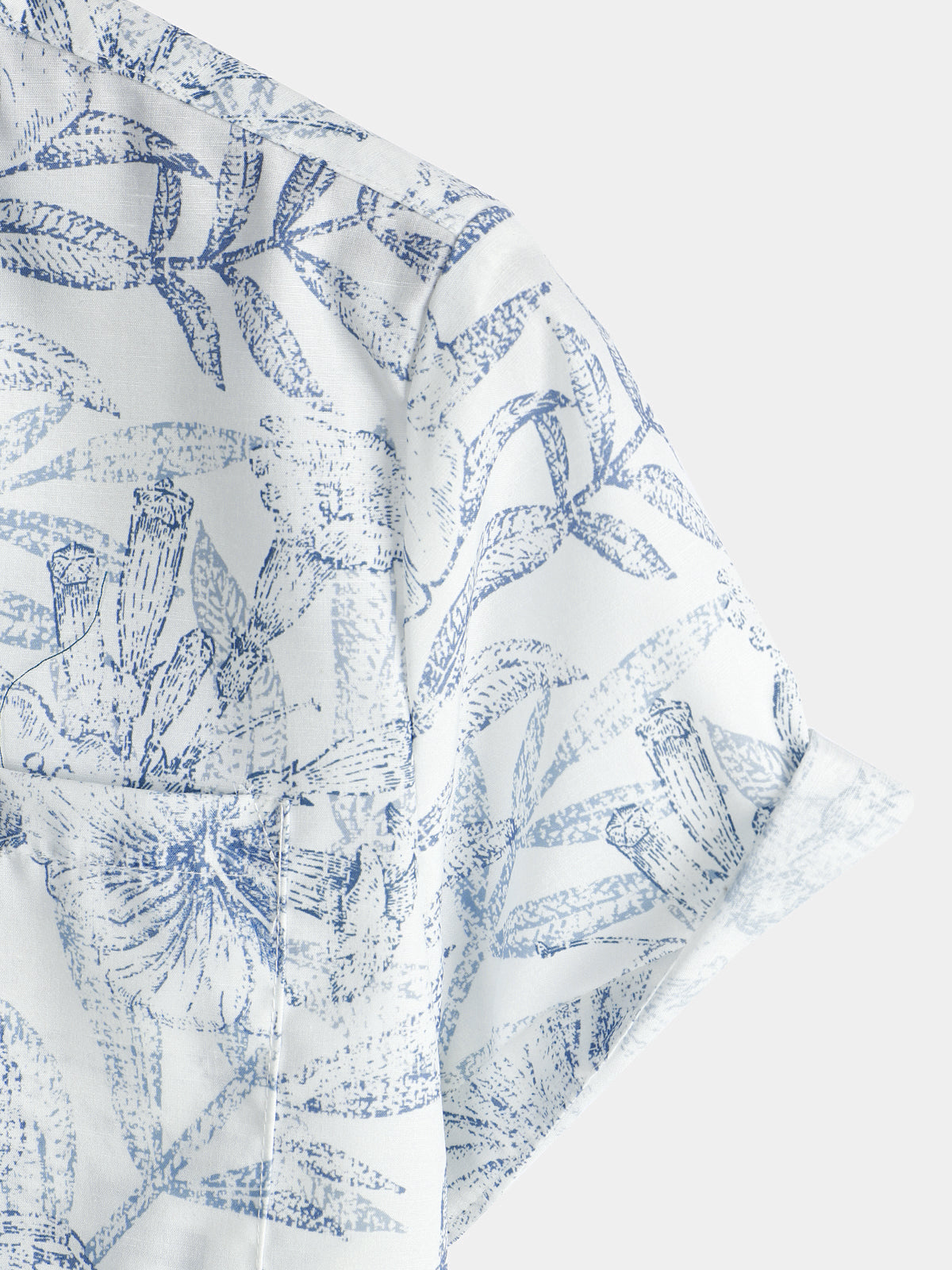Chemise à manches courtes bleu clair à imprimé floral pour hommes