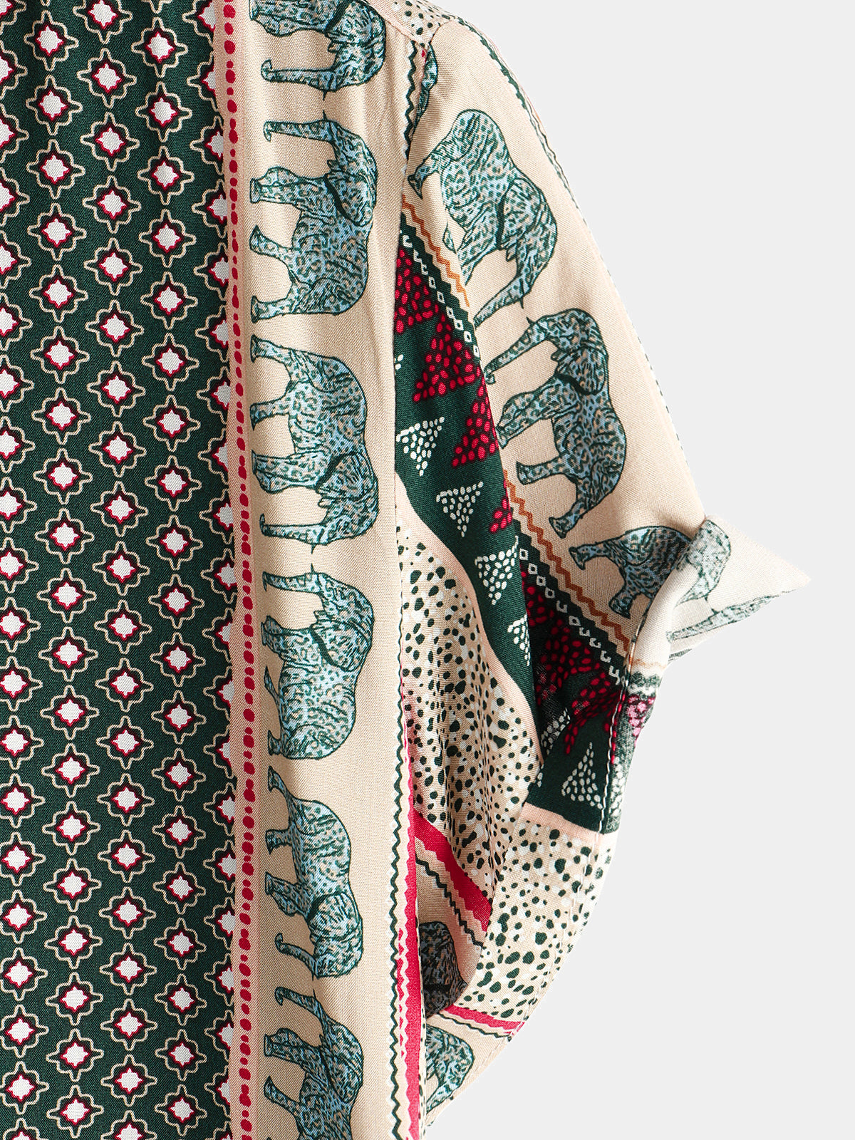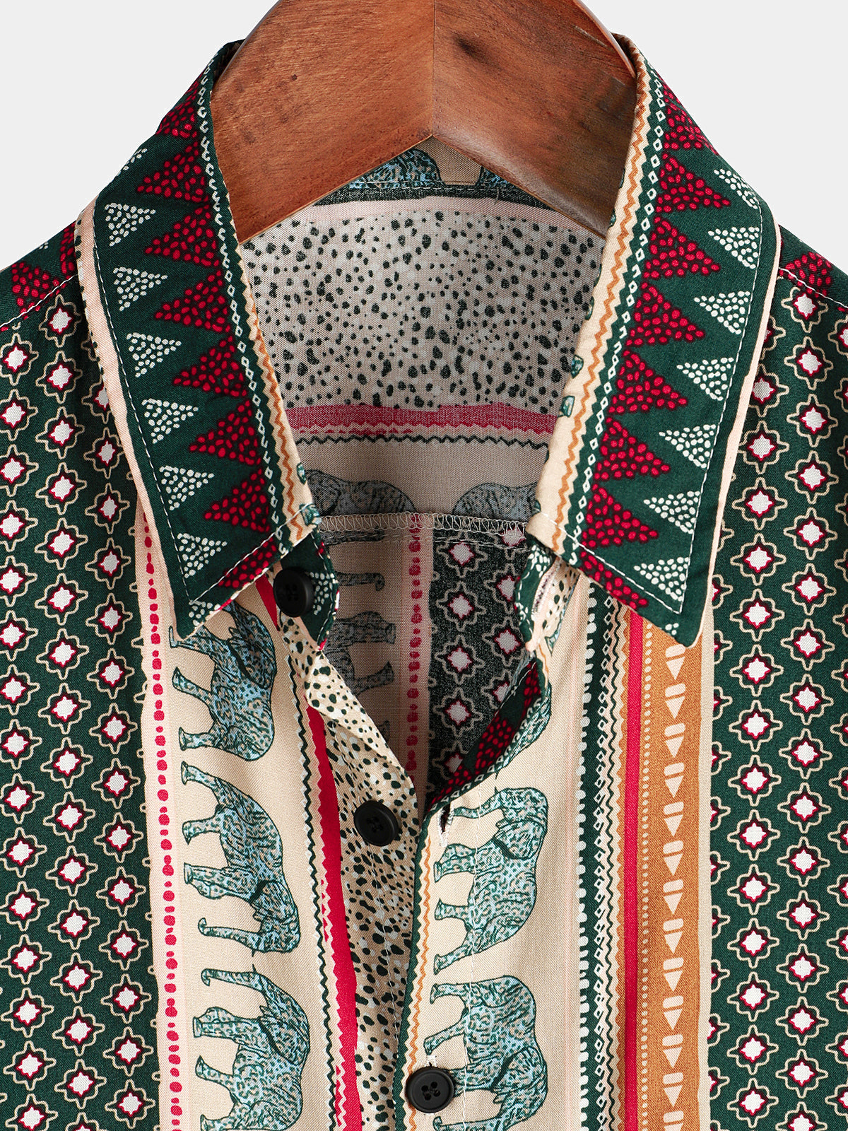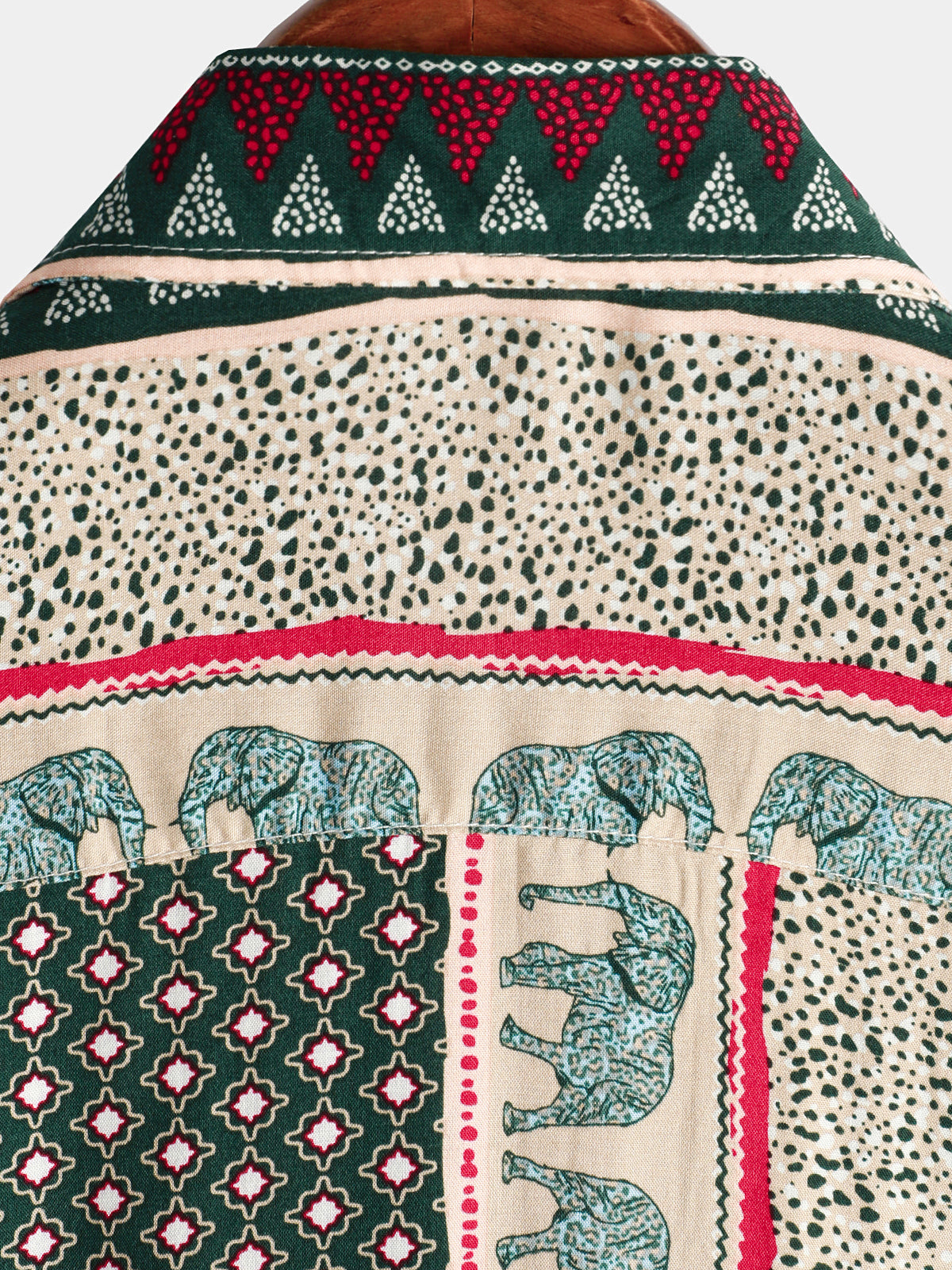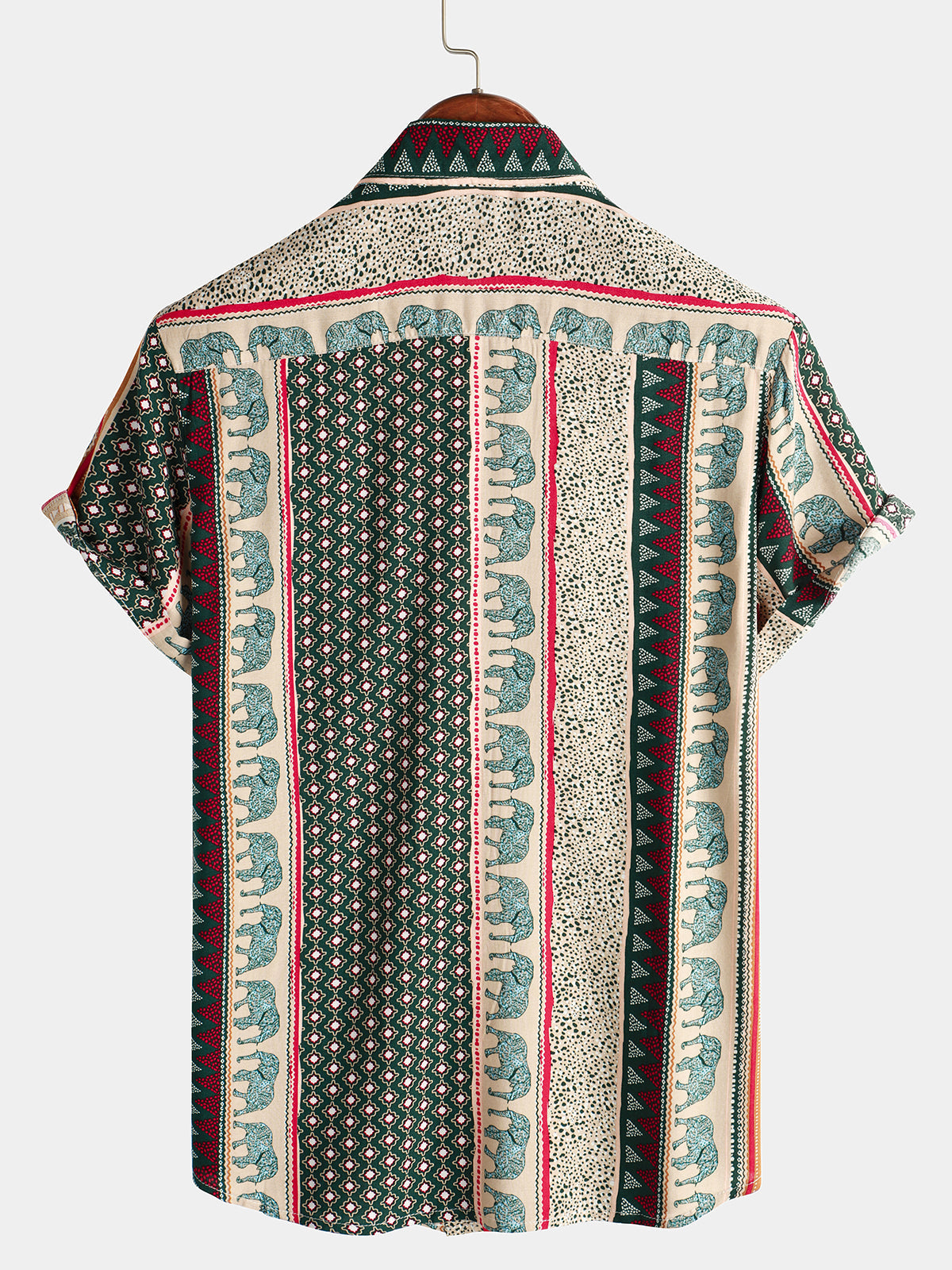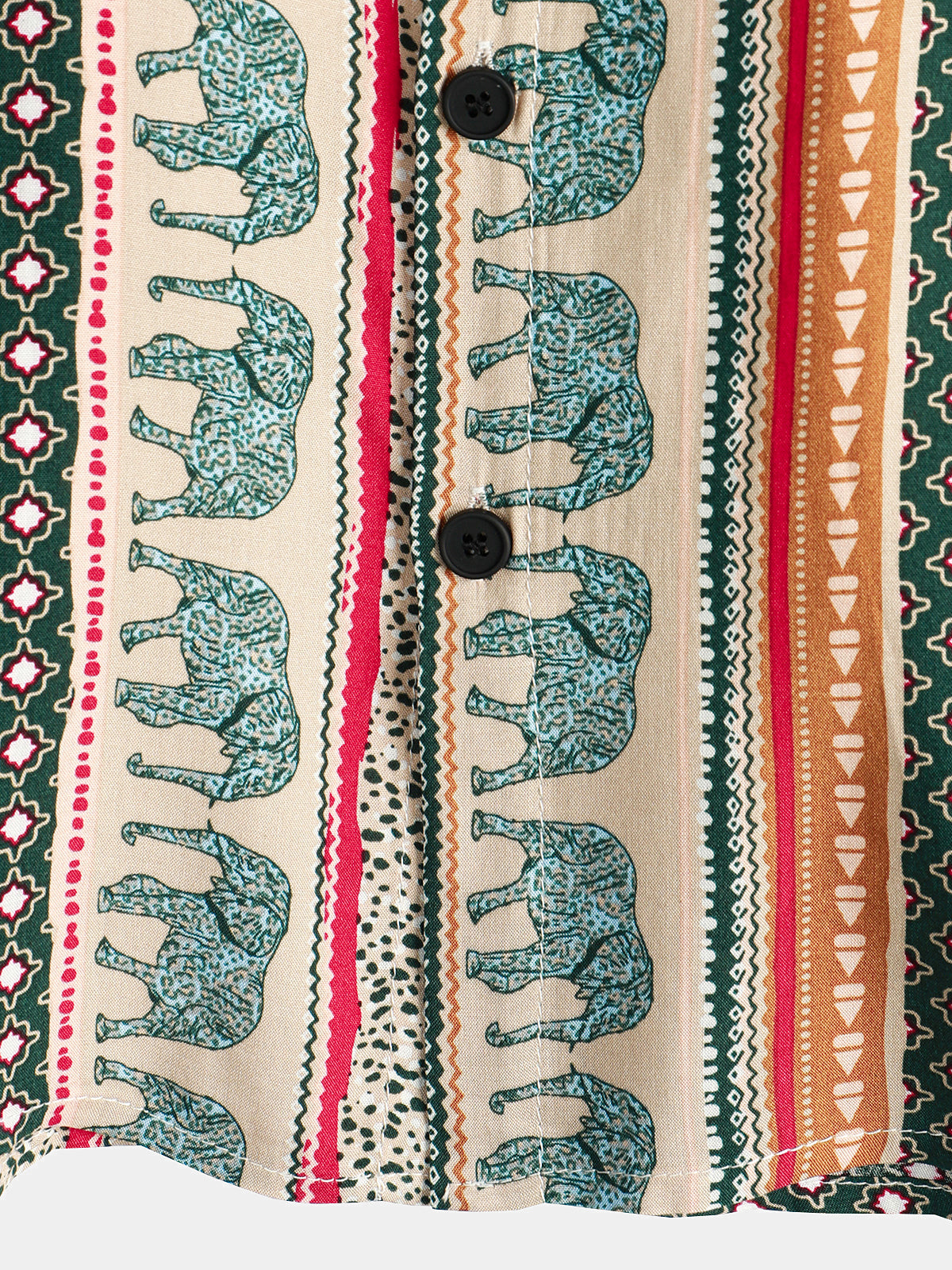 Chemise à manches courtes verte à imprimé éléphant rayé pour hommes