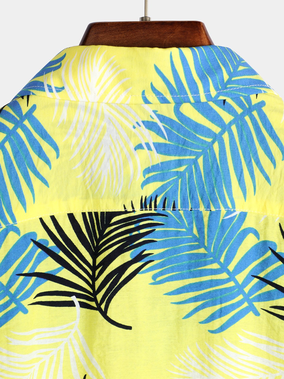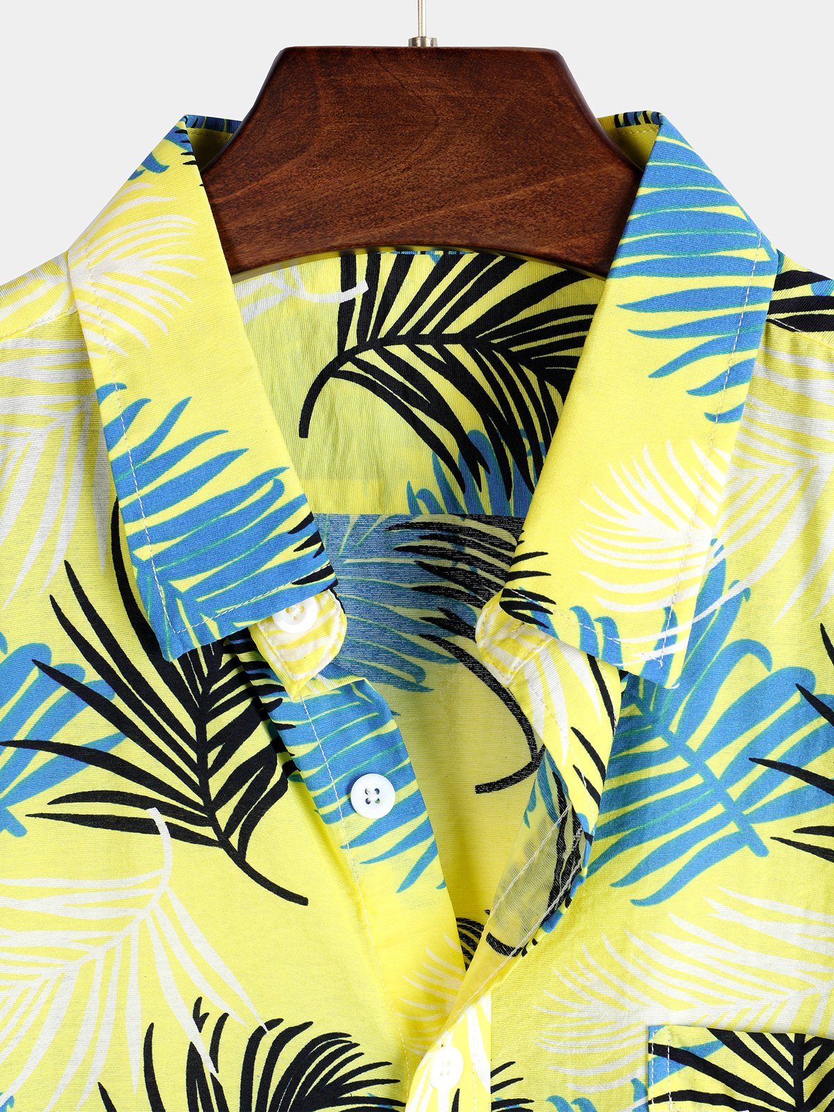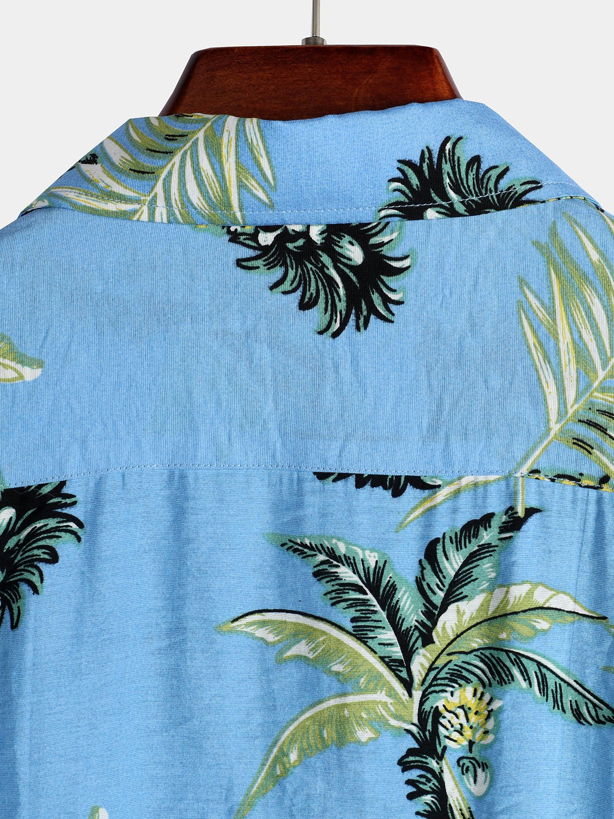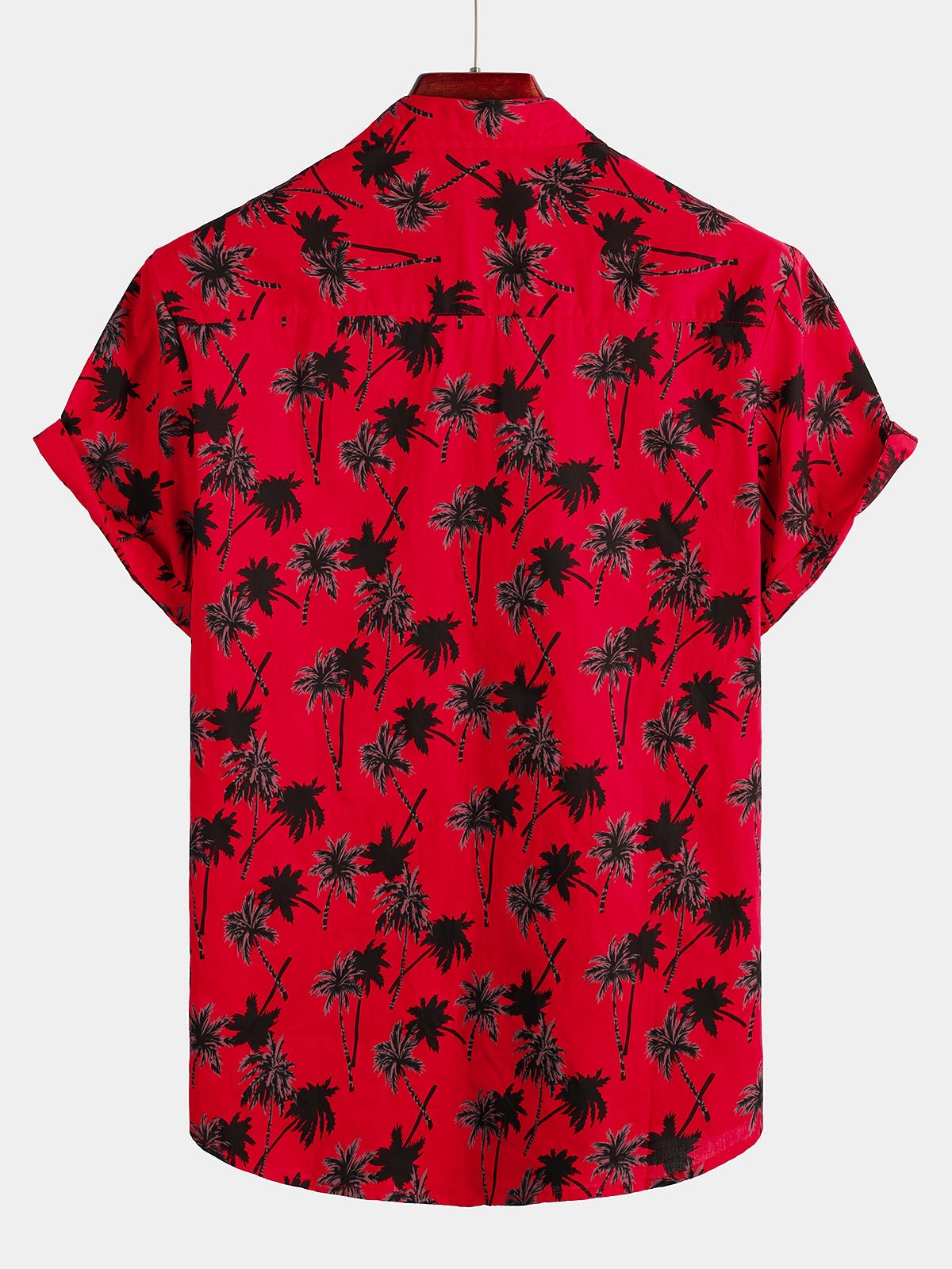 Chemise hawaïenne à manches courtes en coton Aloha à imprimé palmiers tropicaux pour hommes