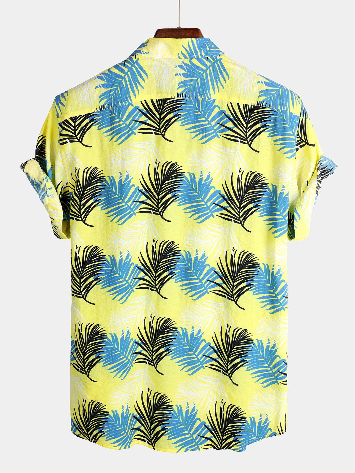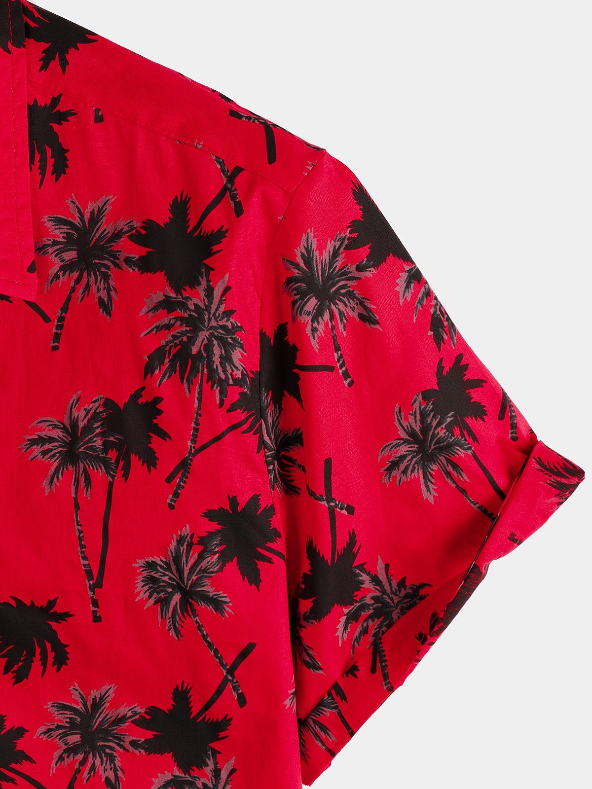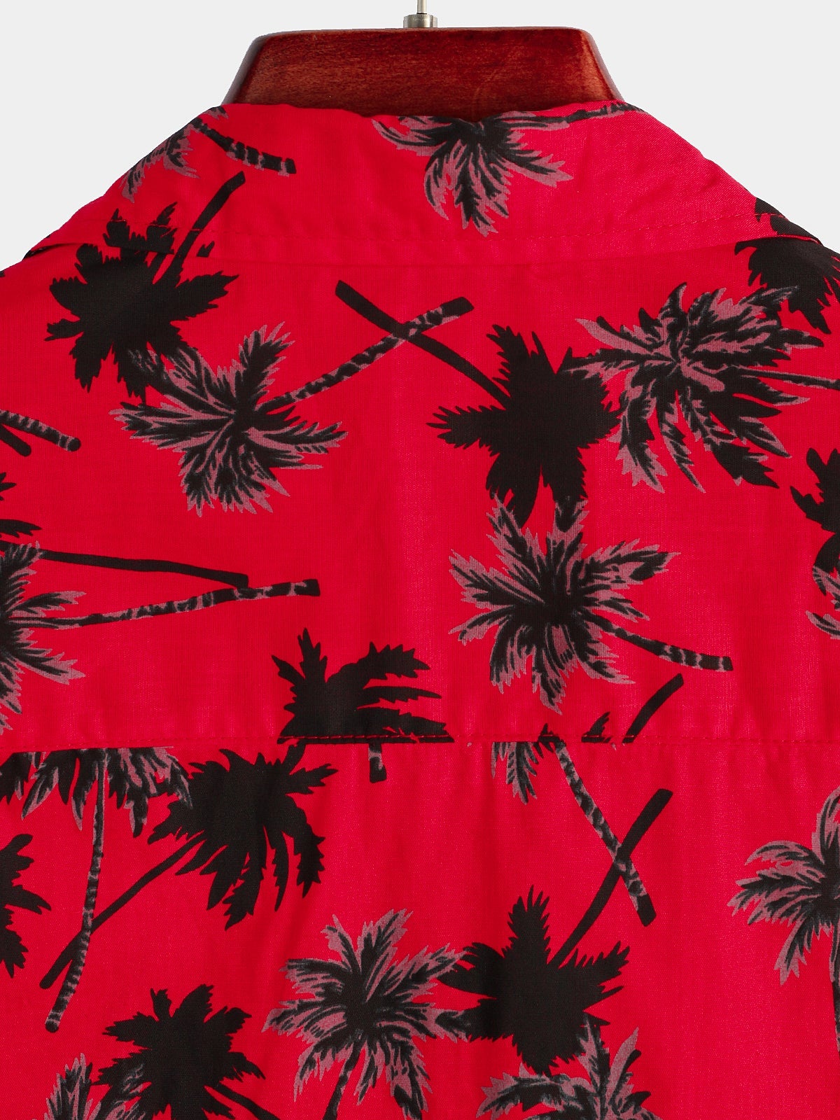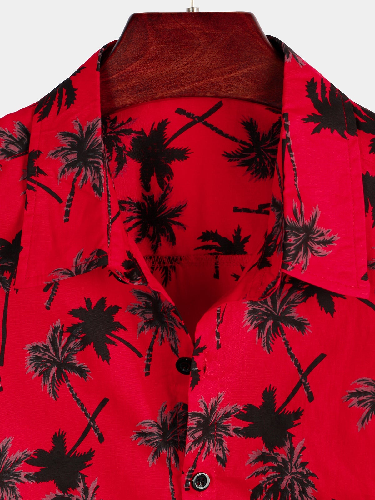 Chemise hawaïenne à manches courtes en coton Aloha à imprimé palmiers tropicaux pour hommes