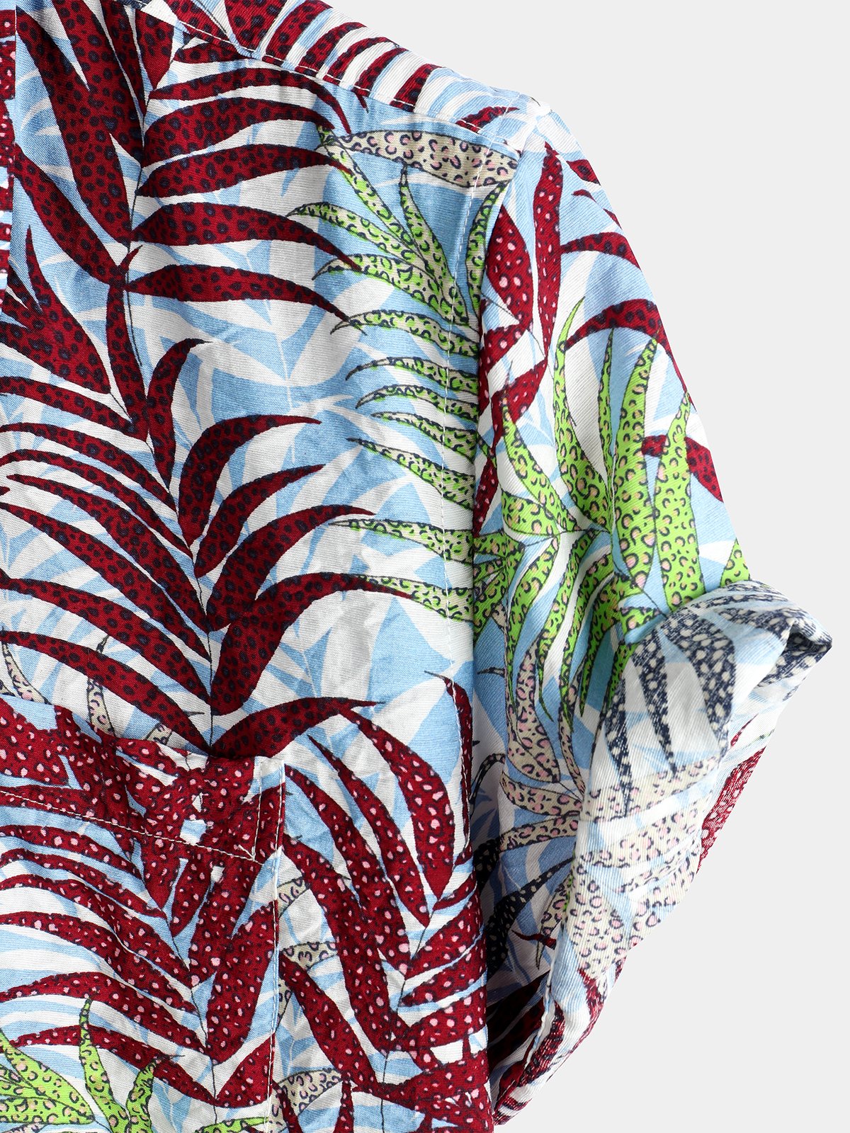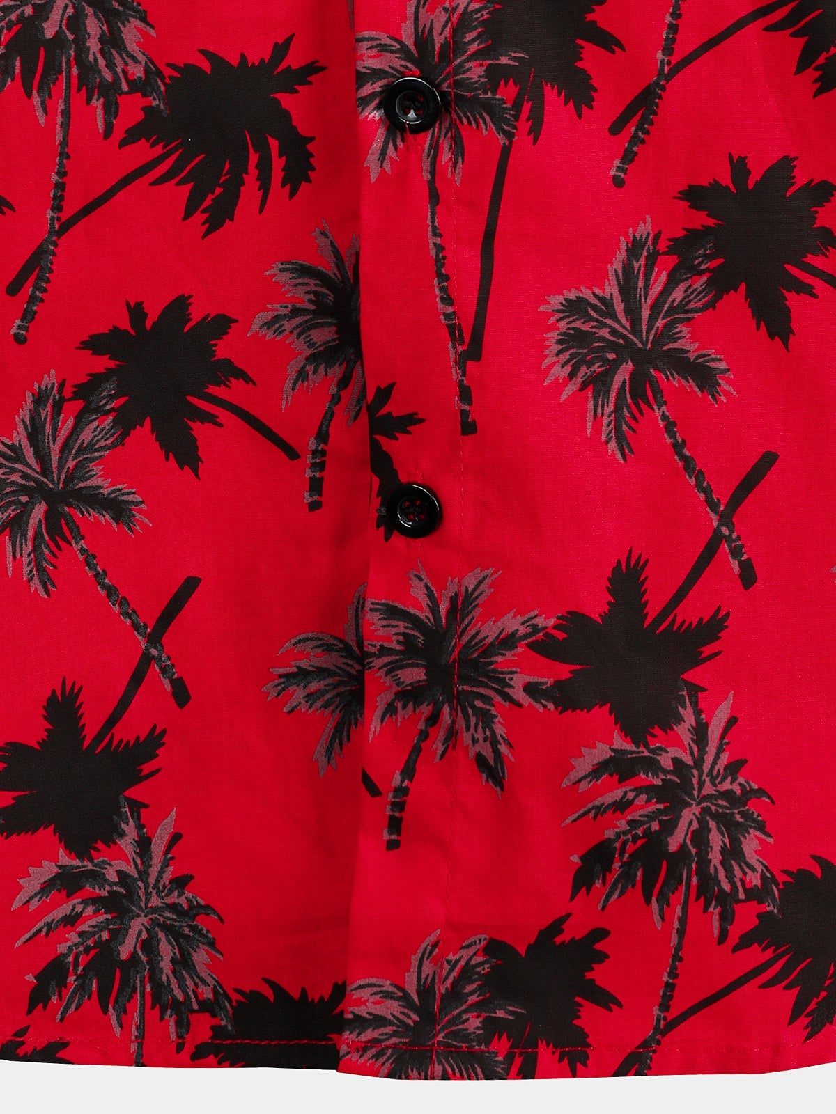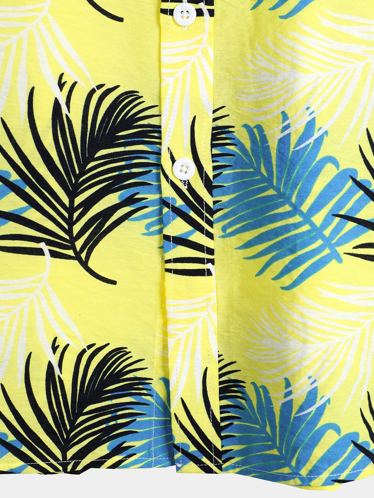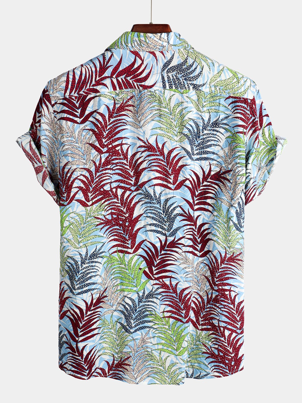 Chemise hawaïenne à manches courtes en coton Aloha à imprimé palmiers tropicaux pour hommes