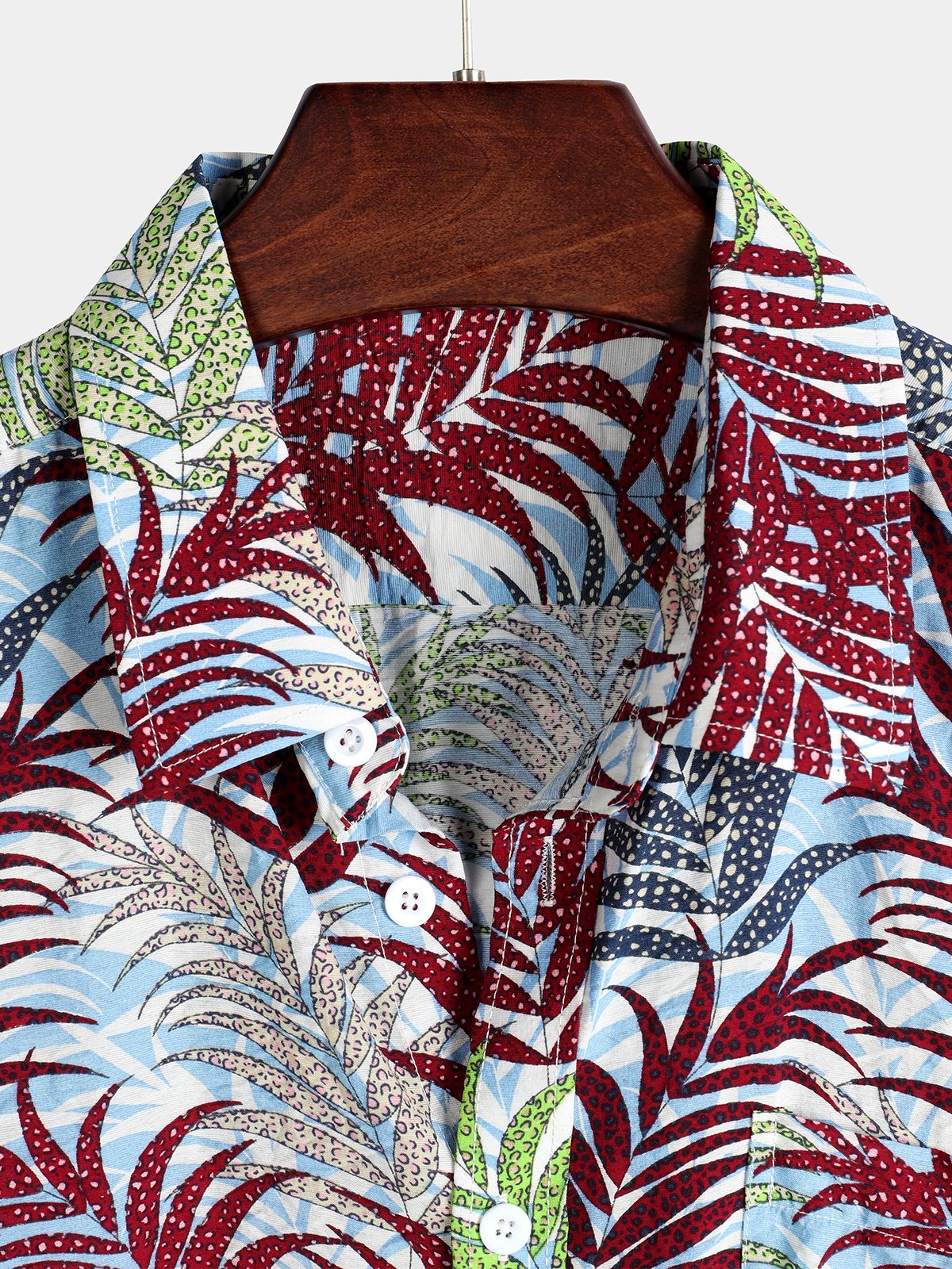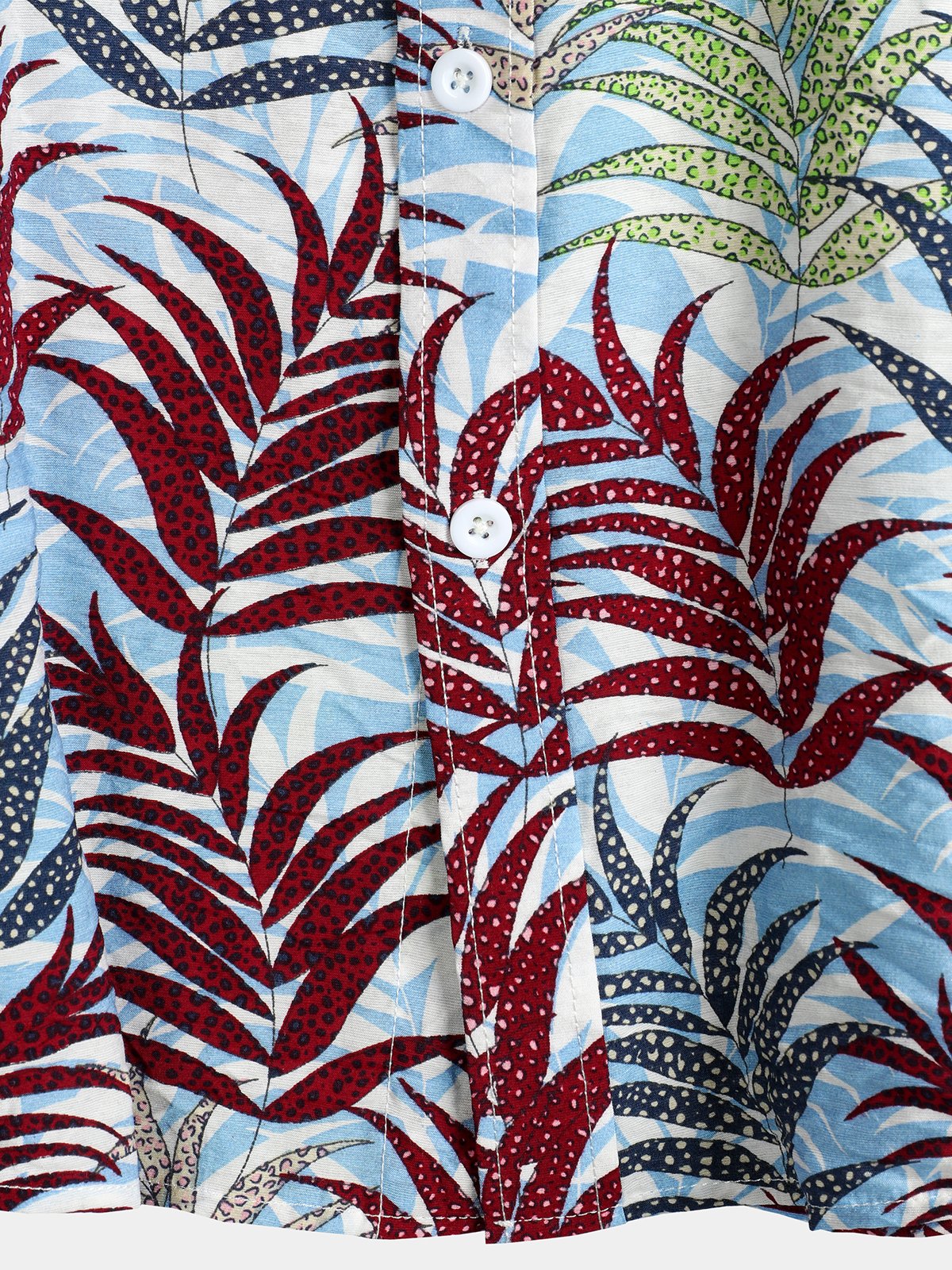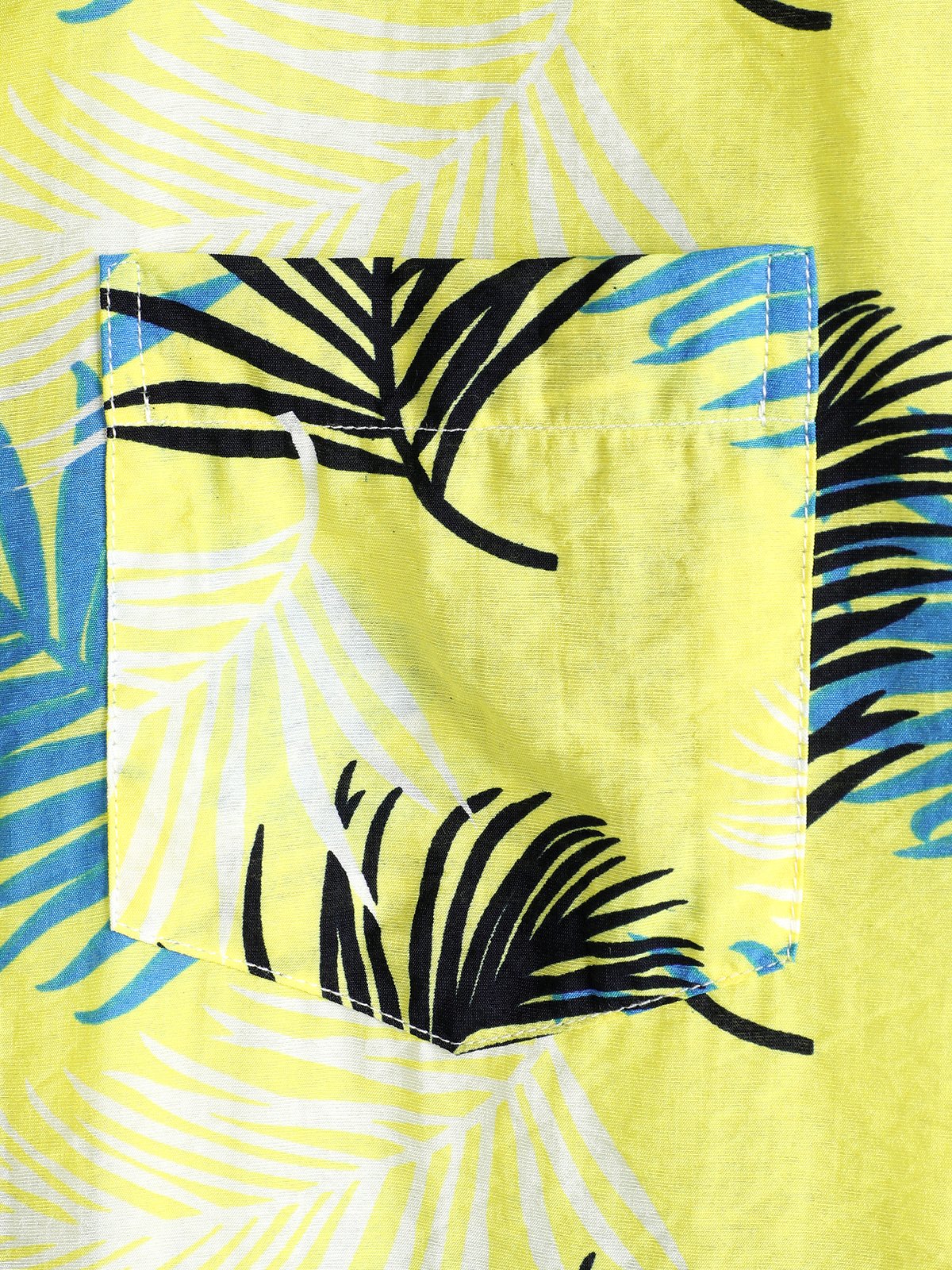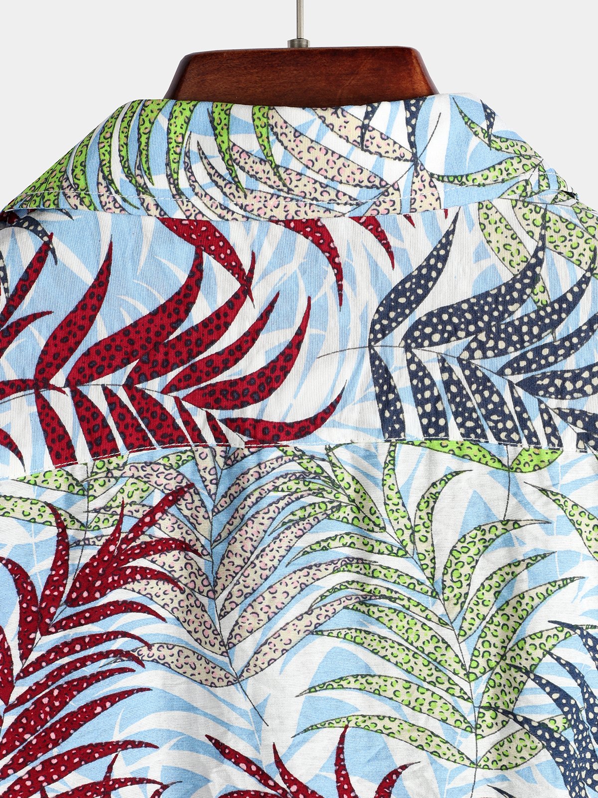 Chemise hawaïenne à manches courtes en coton Aloha à imprimé palmiers tropicaux pour hommes