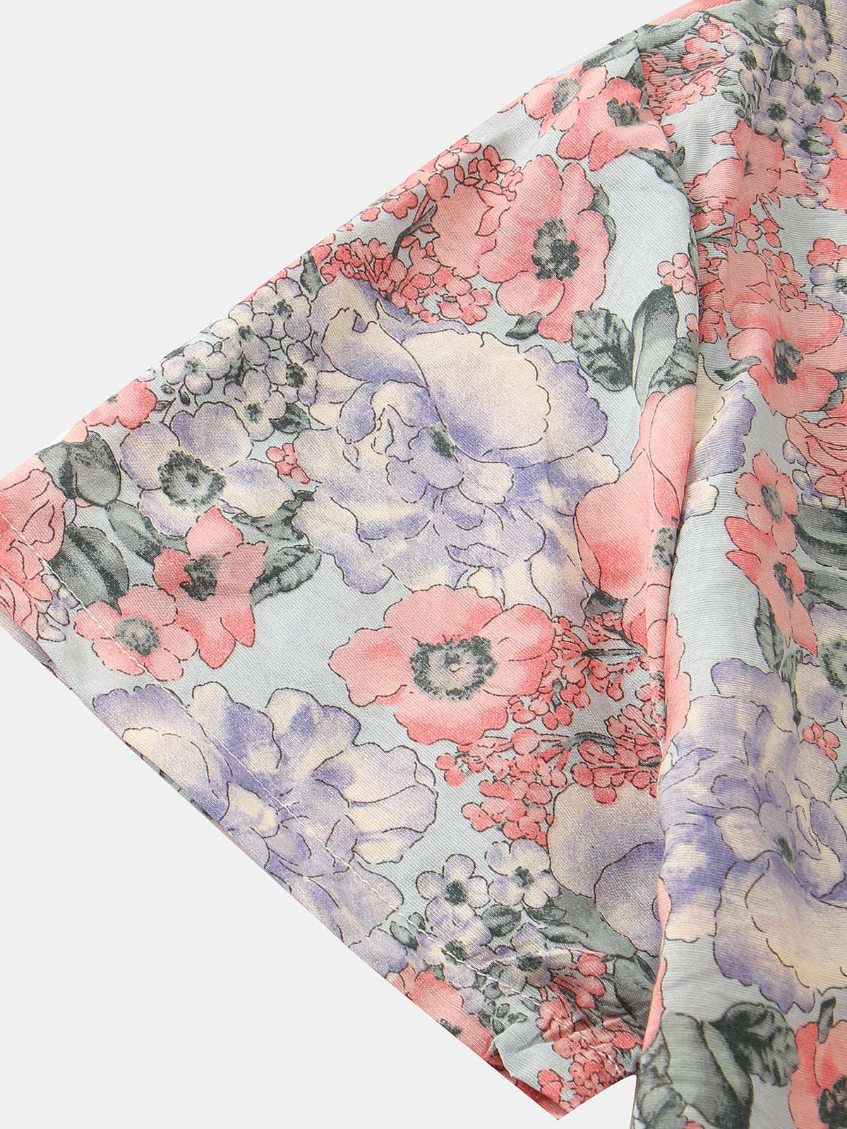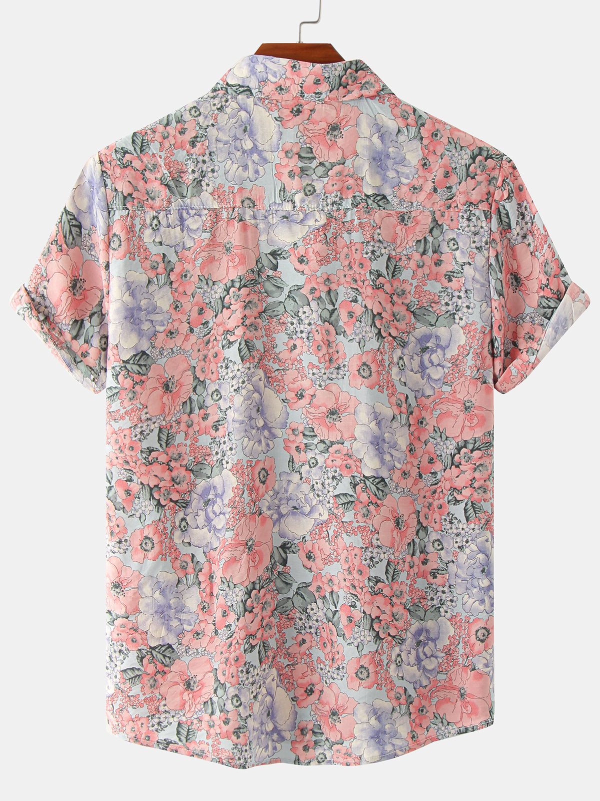 Chemise à manches courtes rose décontractée à imprimé floral vintage pour hommes