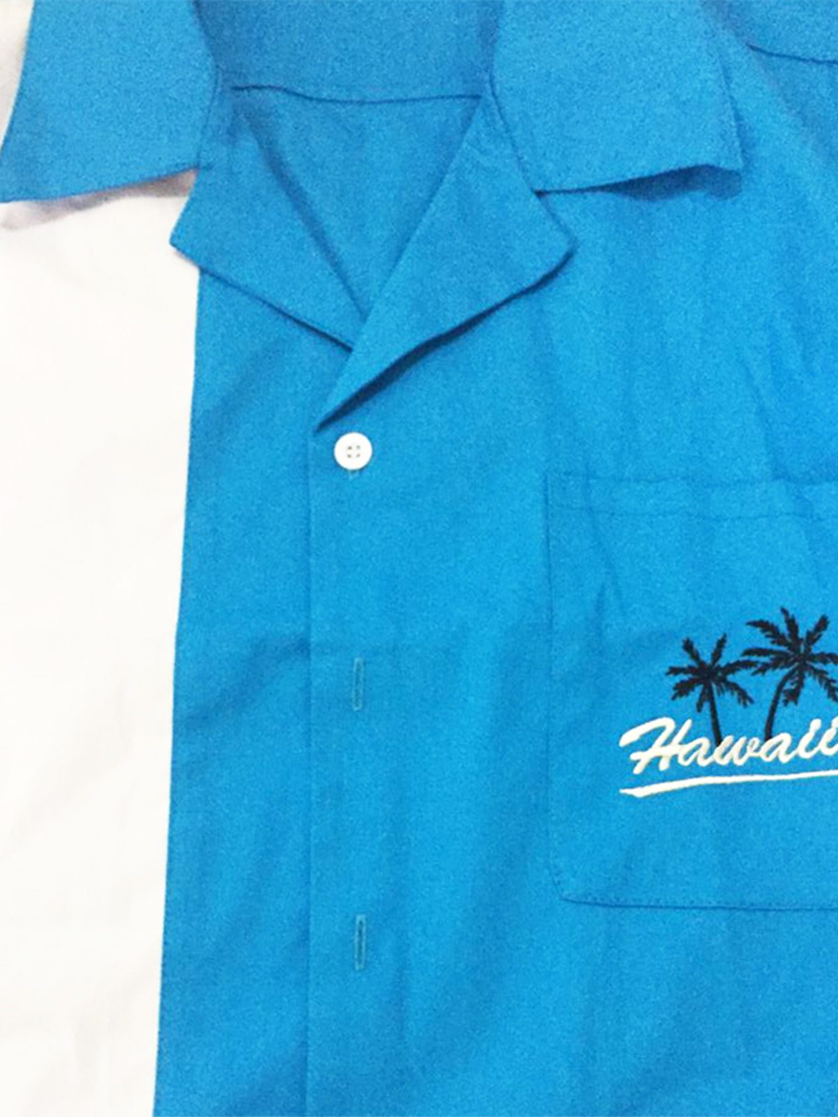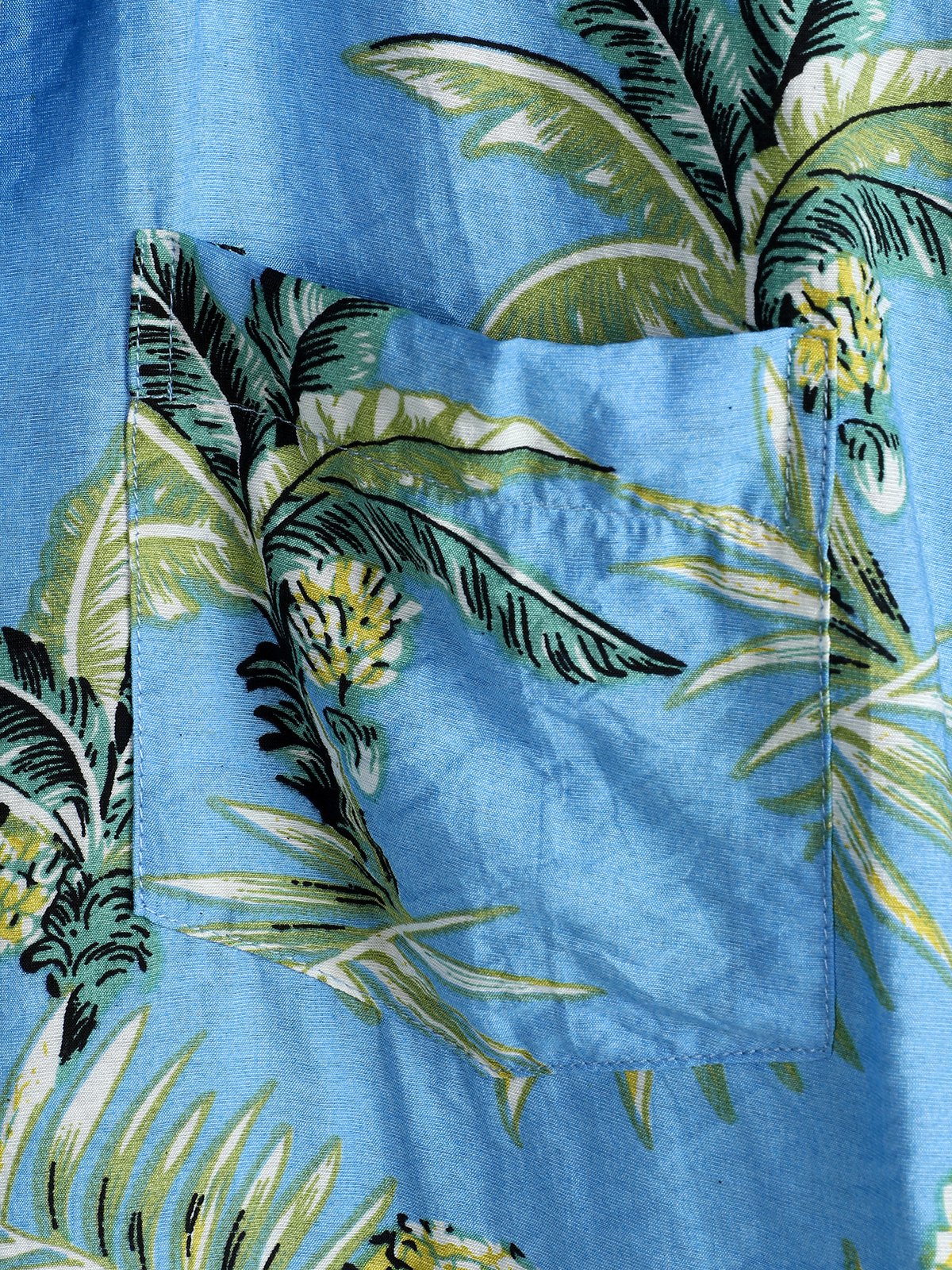 Chemise à manches courtes bleue pour homme 50's Vintage Camp Cotton Pocket Bowling Hawaii Coconut Tree