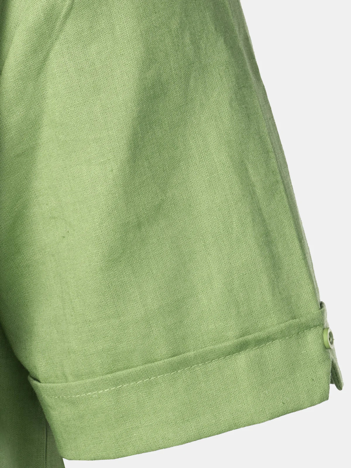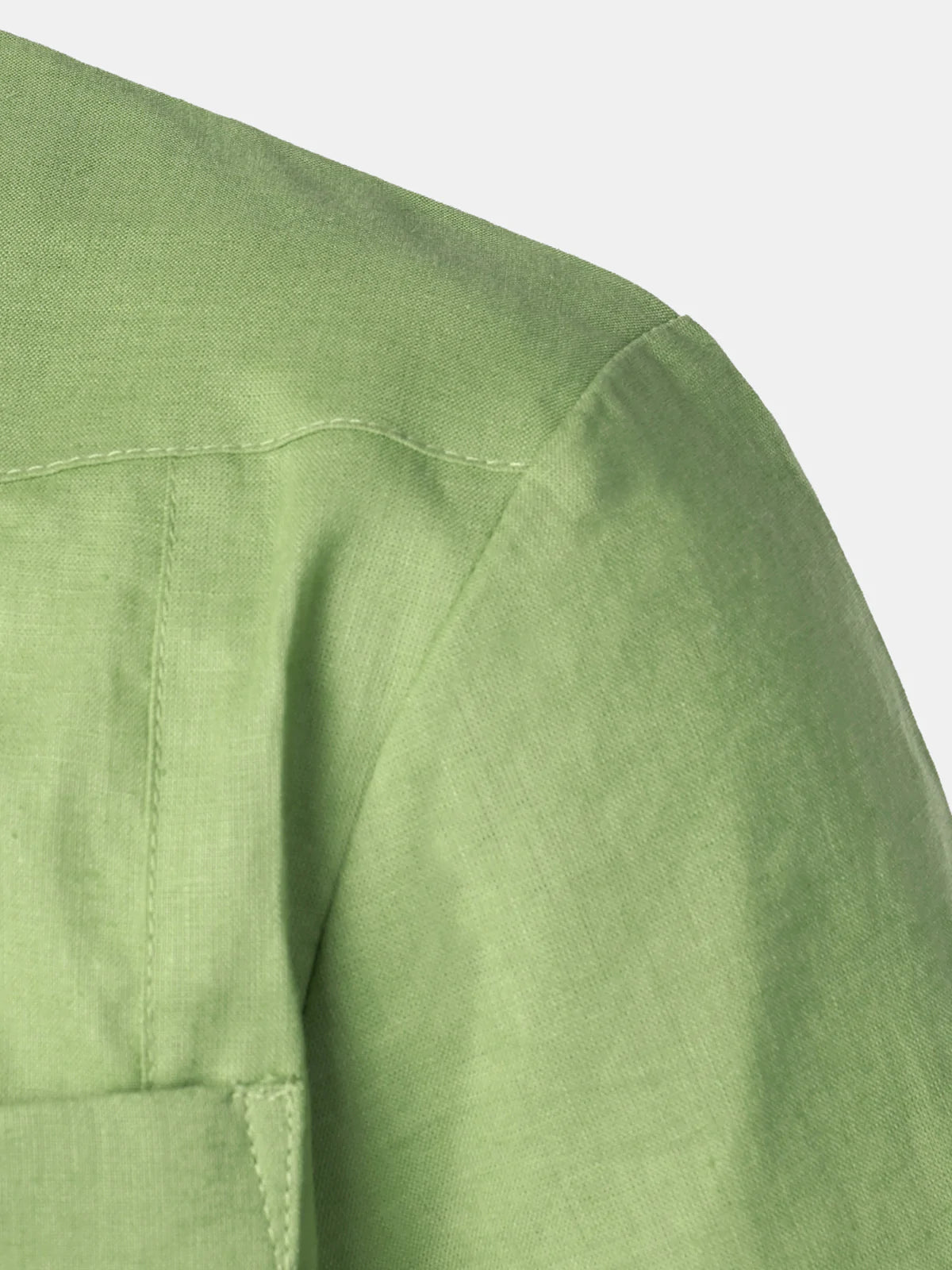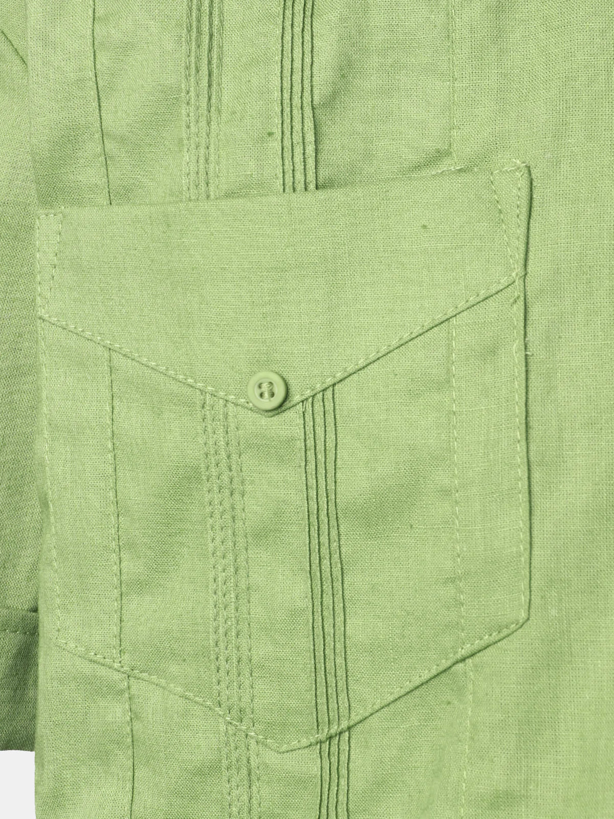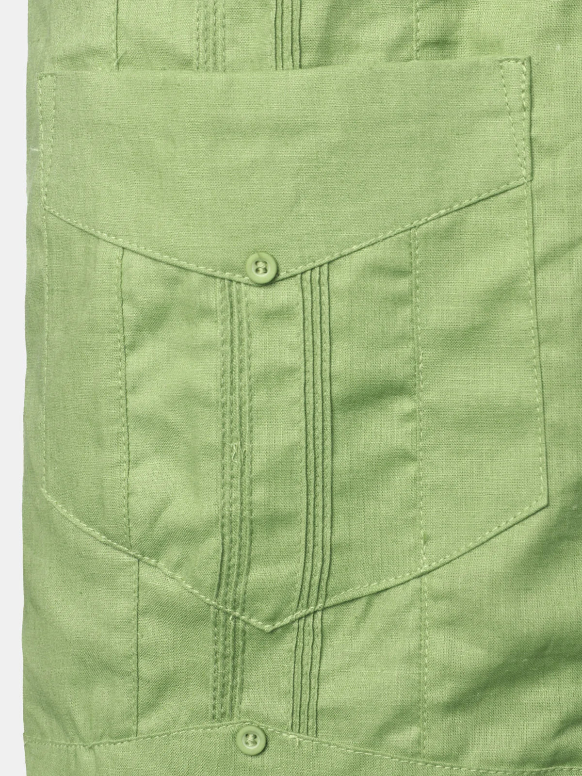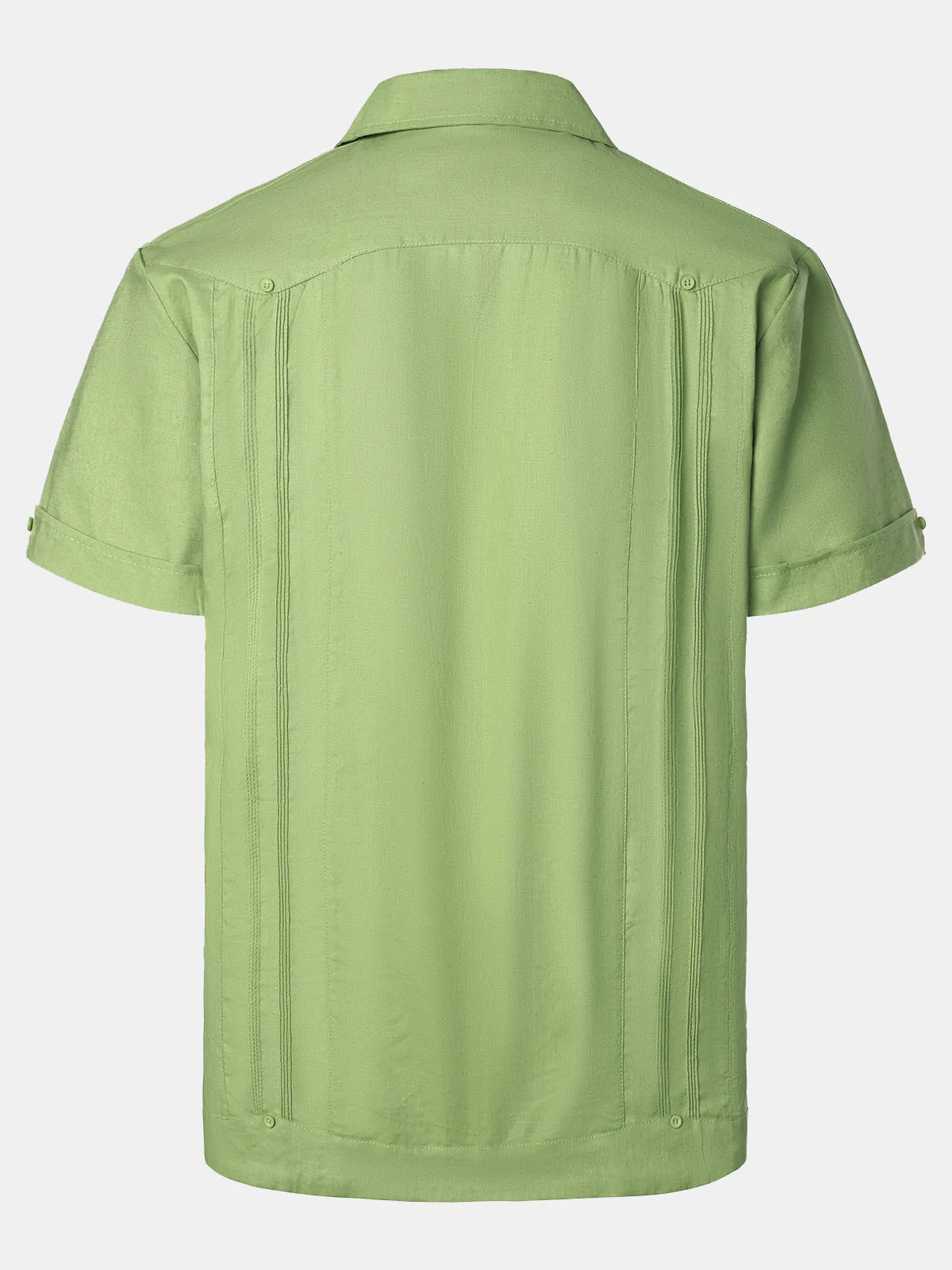 Chemise décontractée à manches courtes pour homme avec poche en lin cubain Guayabera Summer Camp