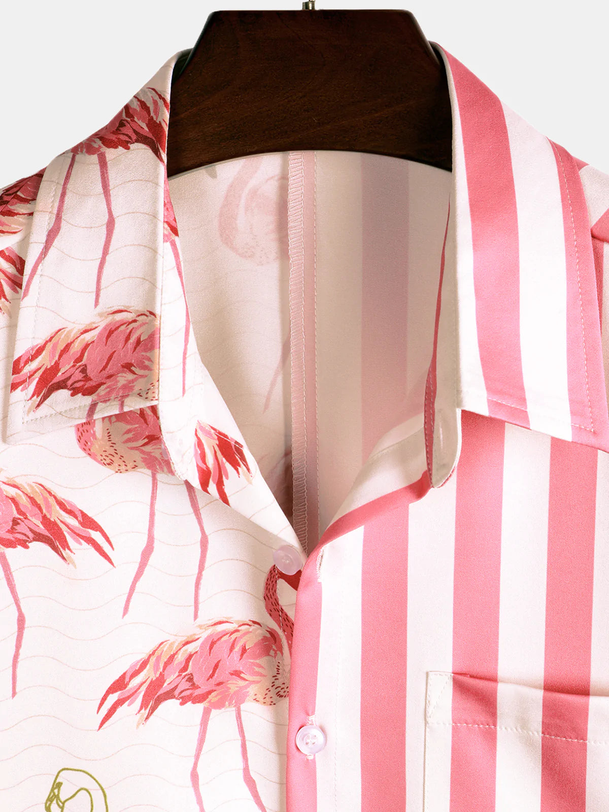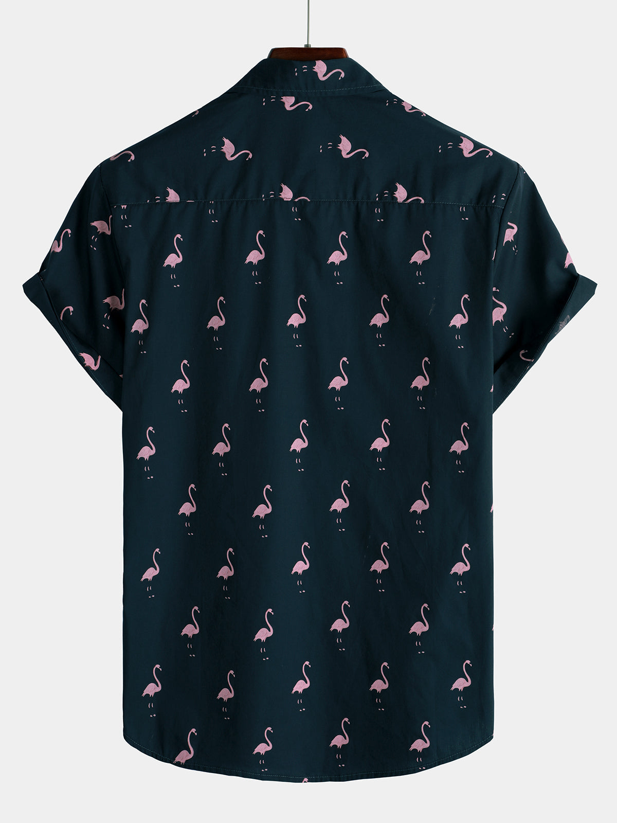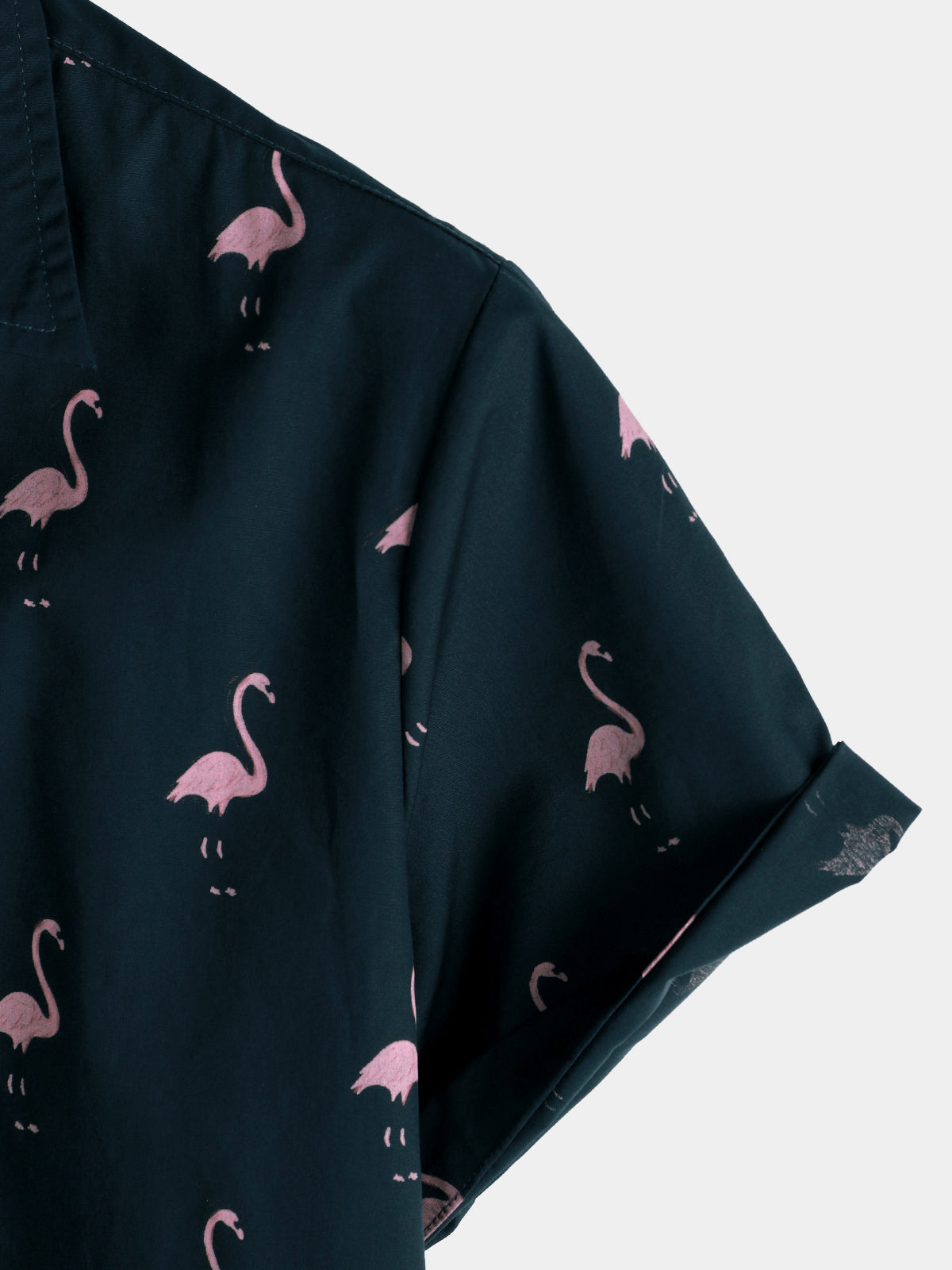 Chemise à manches courtes décontractée hawaïenne pour homme avec motif animal flamant rose