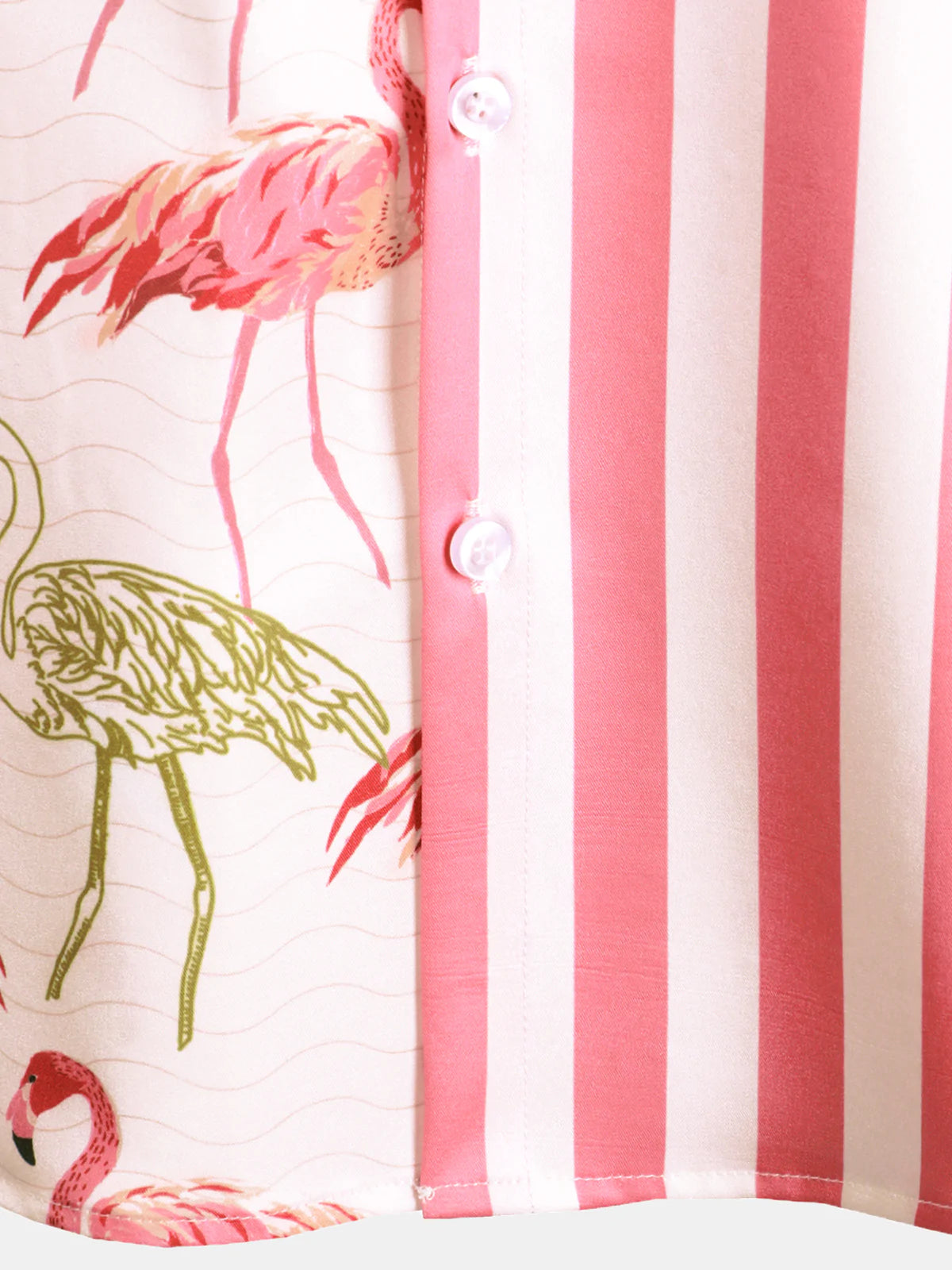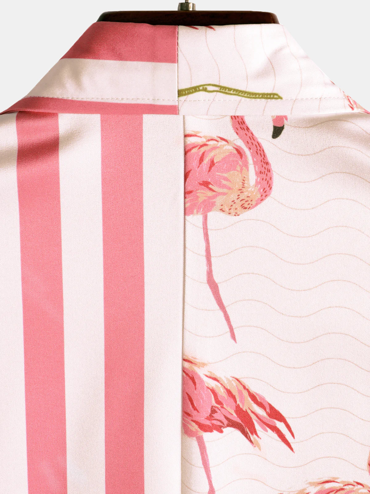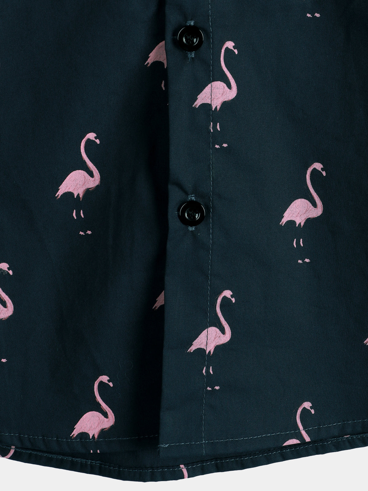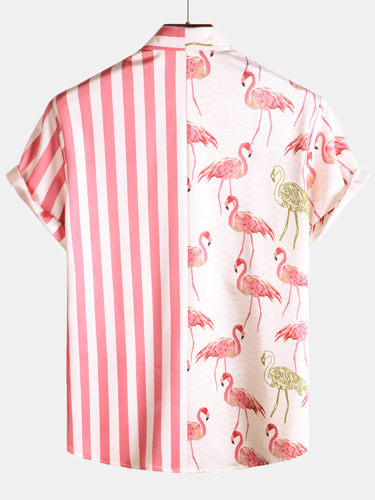 Chemise à manches courtes décontractée hawaïenne pour homme avec motif animal flamant rose