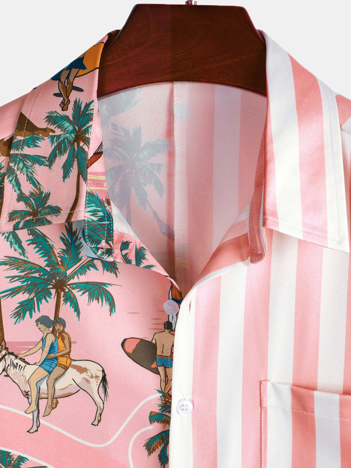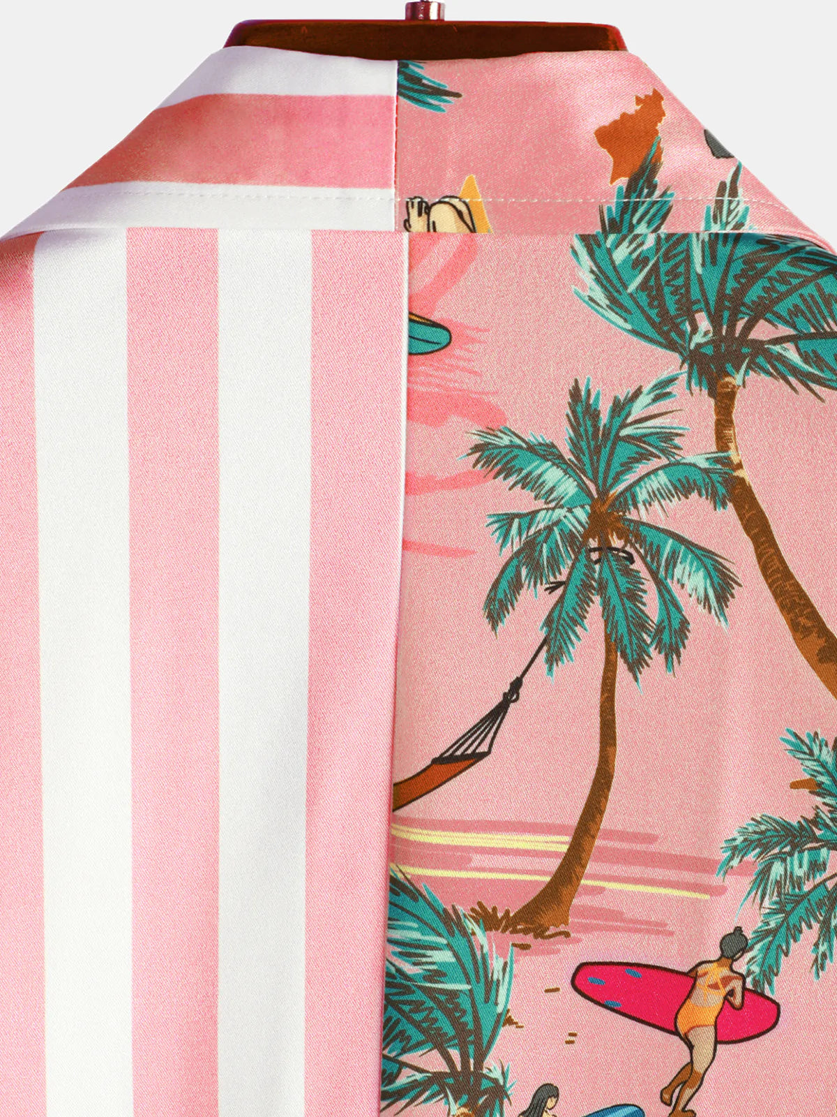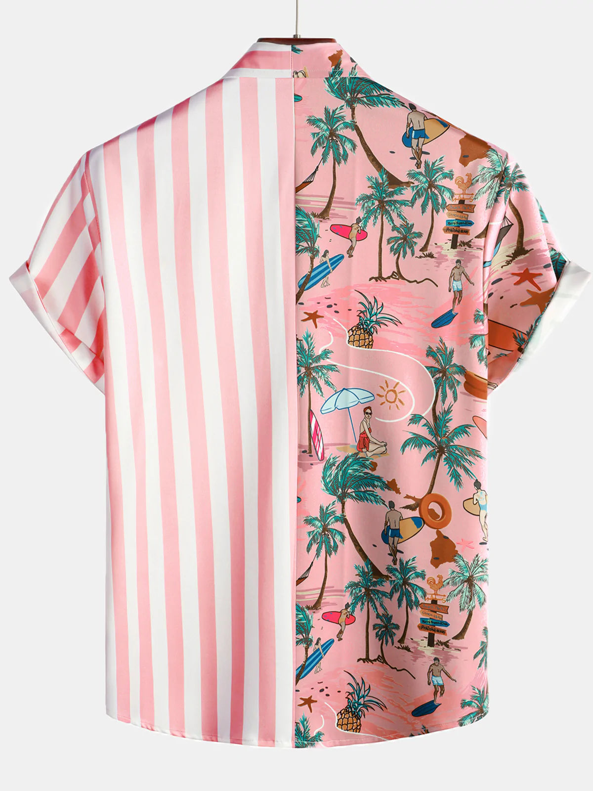 Chemise hawaïenne à manches courtes Aloha à imprimé palmier rose et blanc pour homme