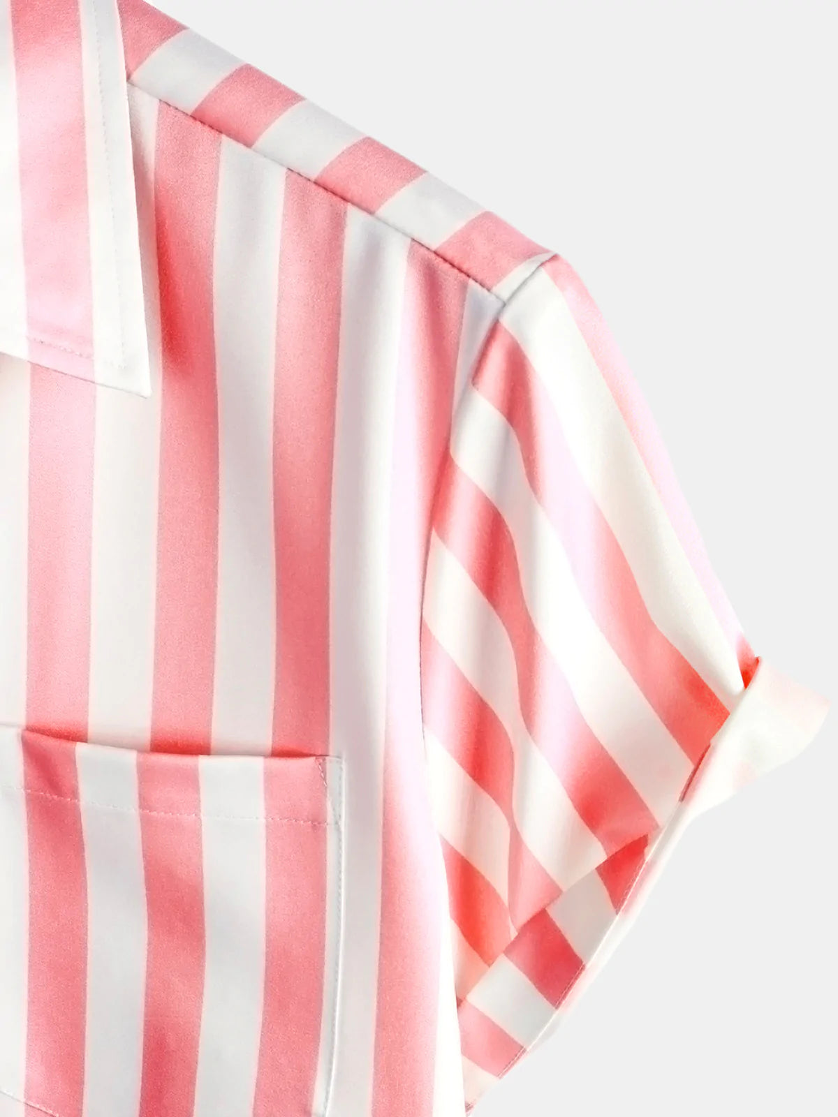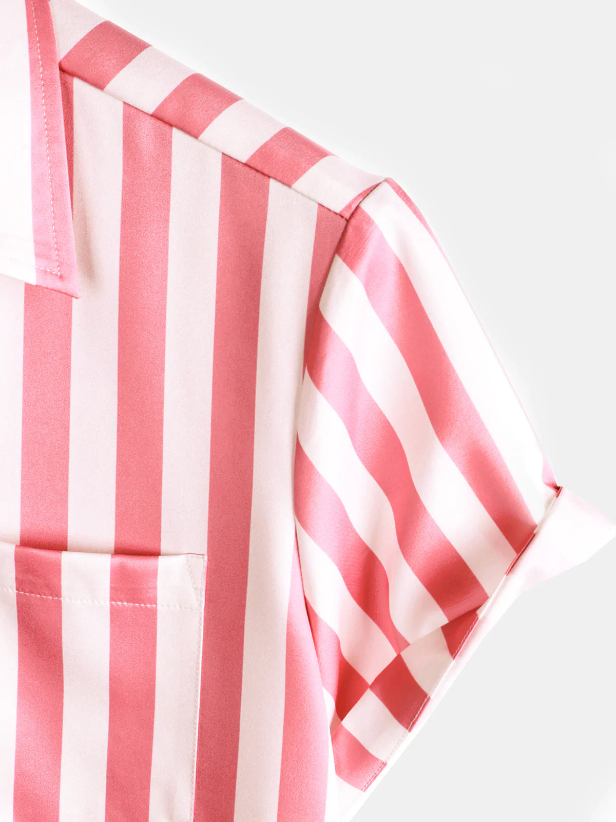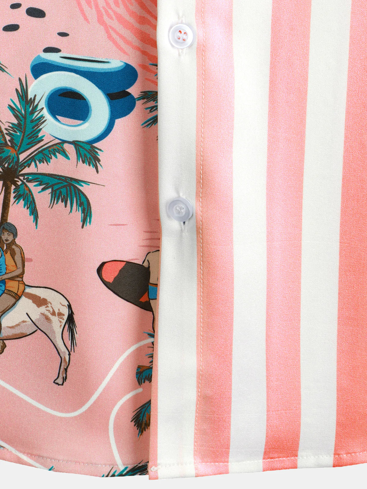 Chemise hawaïenne à manches courtes Aloha à imprimé palmier rose et blanc pour homme