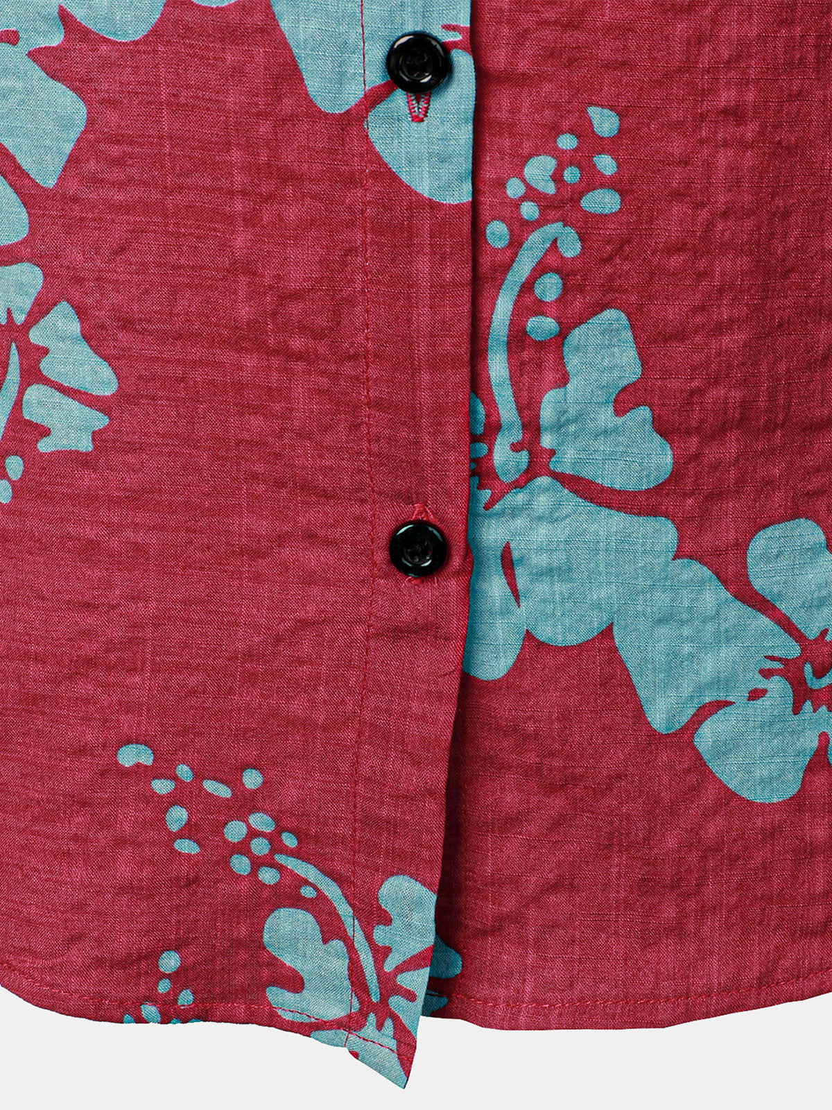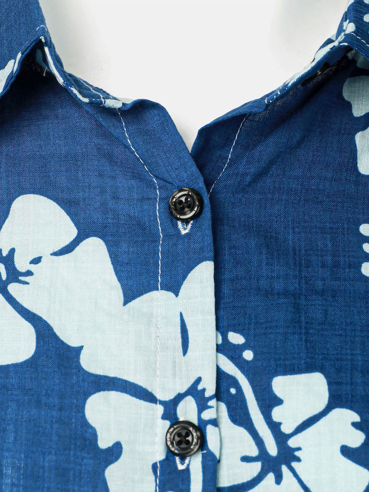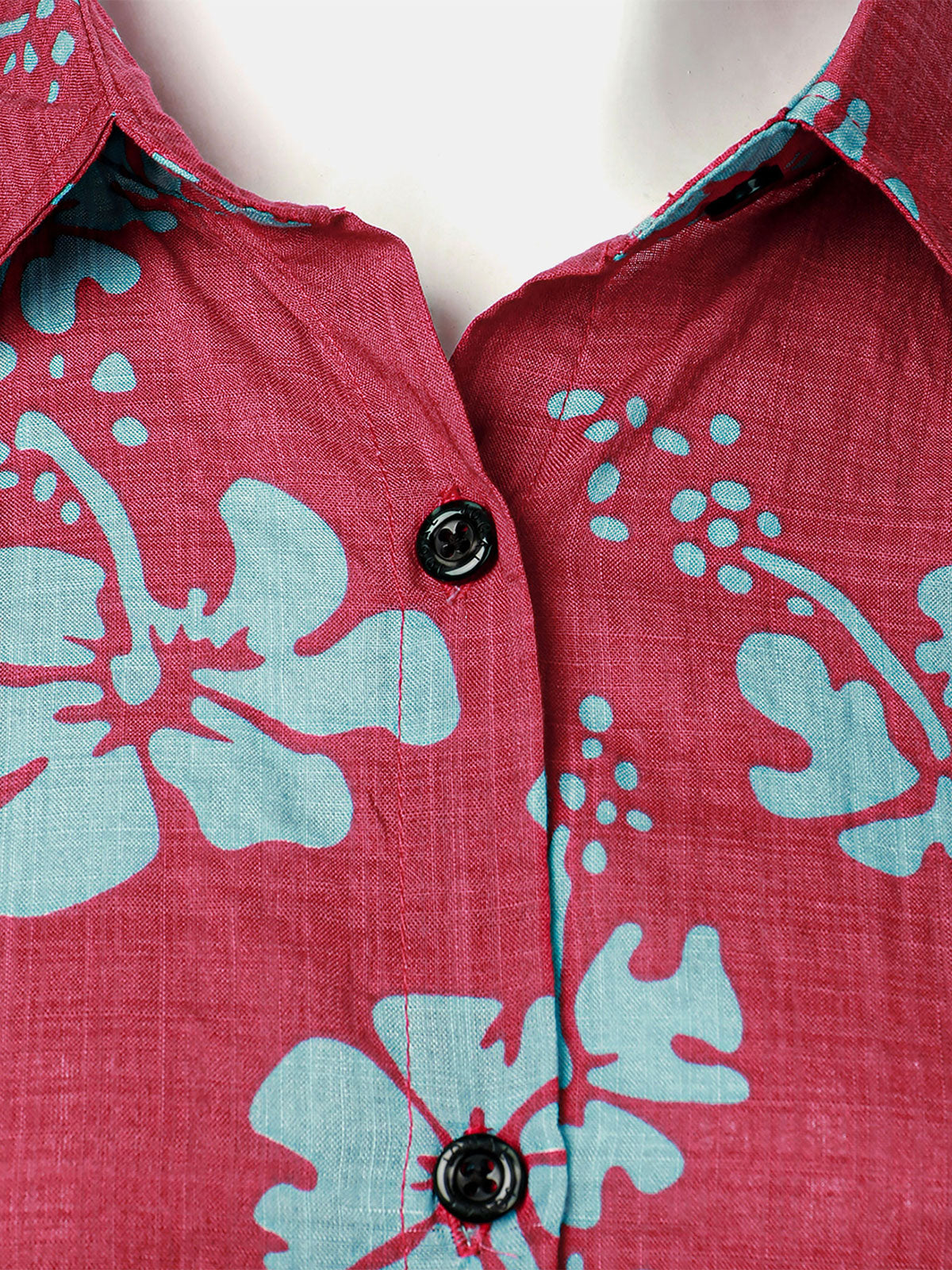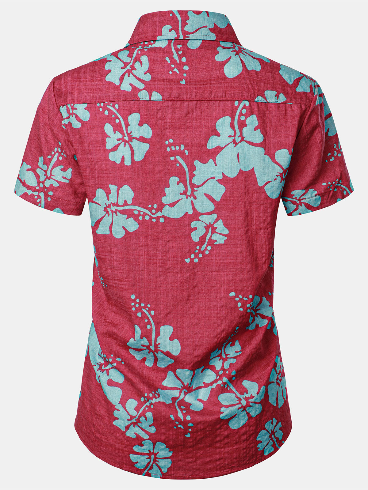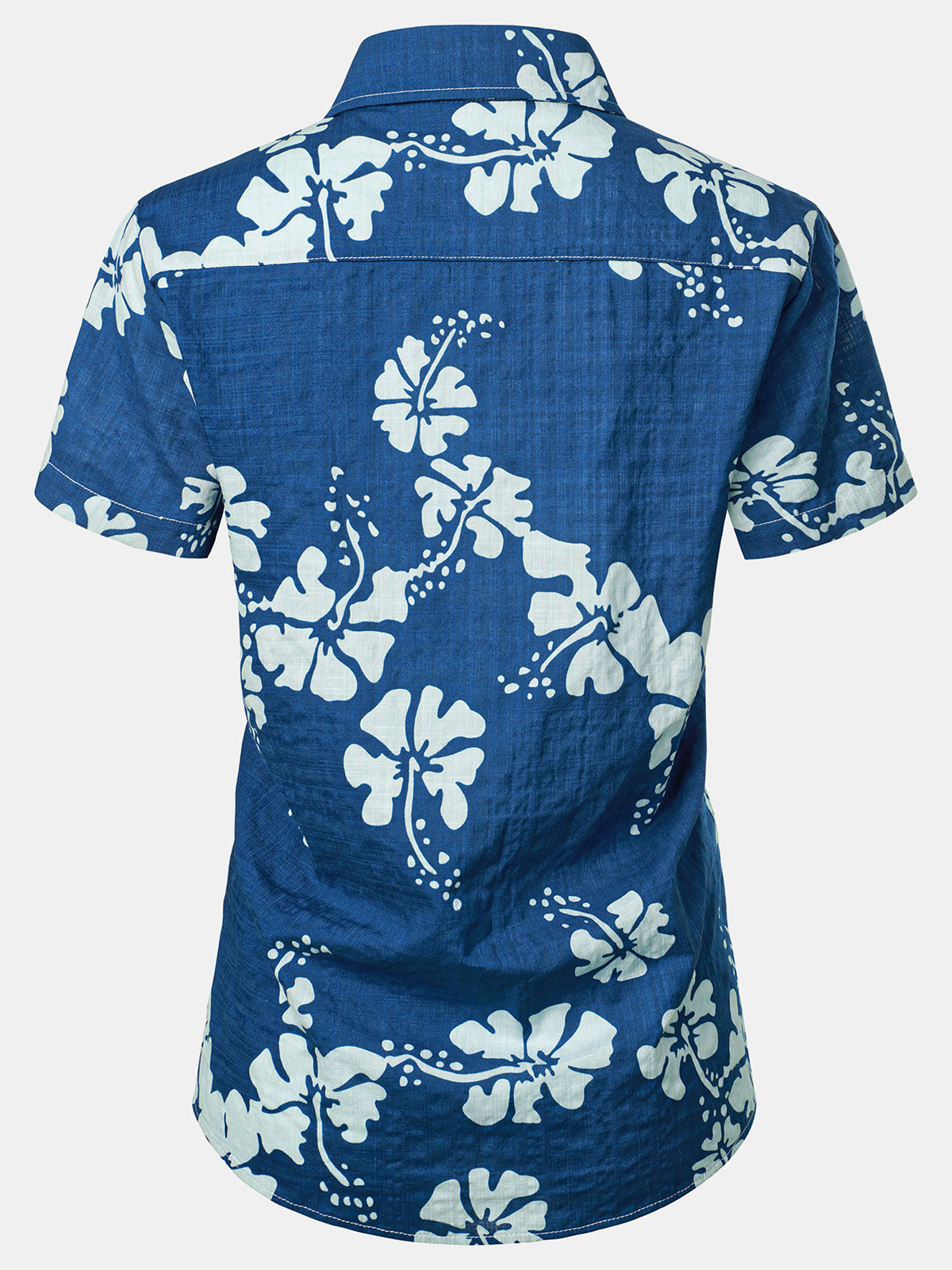 Chemisier à imprimé floral pour femme Chemise hawaïenne à manches courtes en coton pour l'été